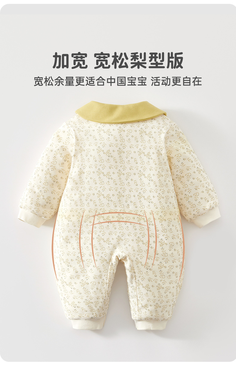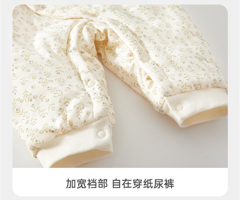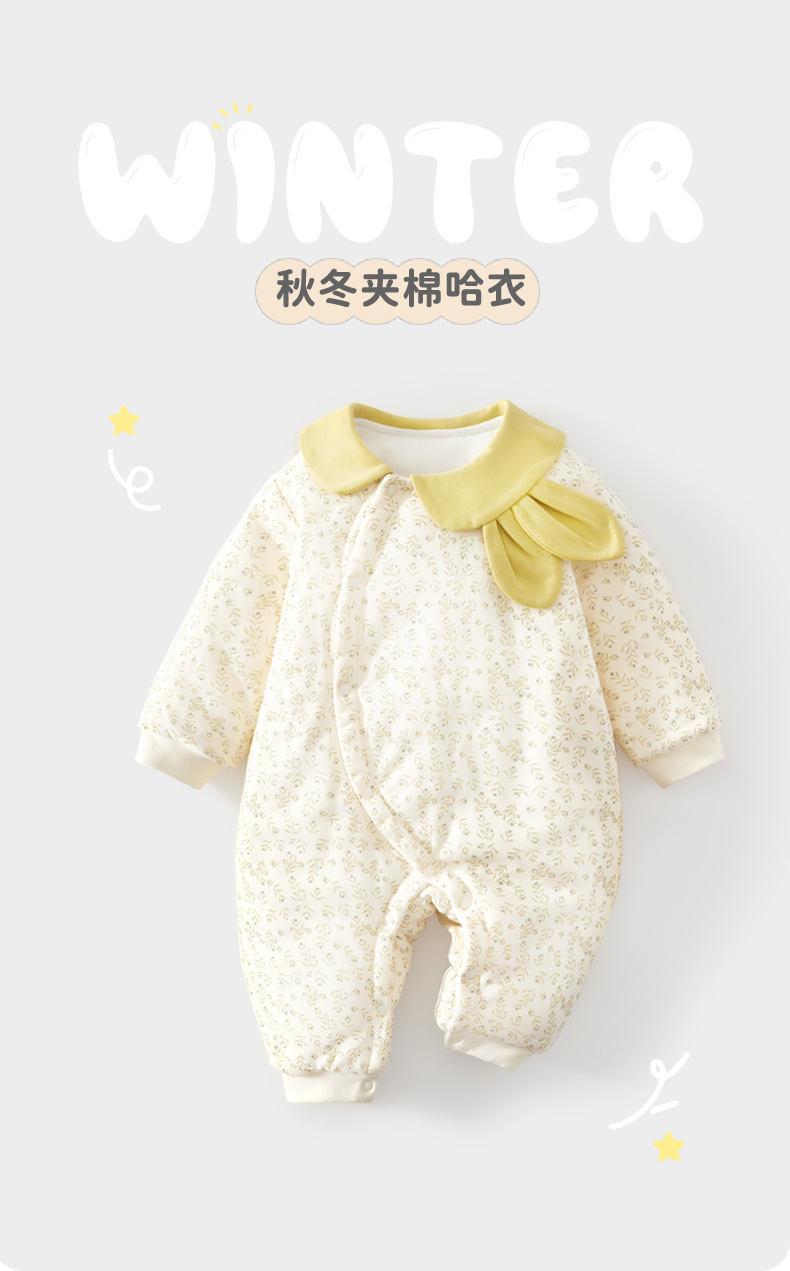 婴儿夹棉连体衣薄款宝宝秋冬季a类加棉爬爬服哈衣外出新生儿棉服