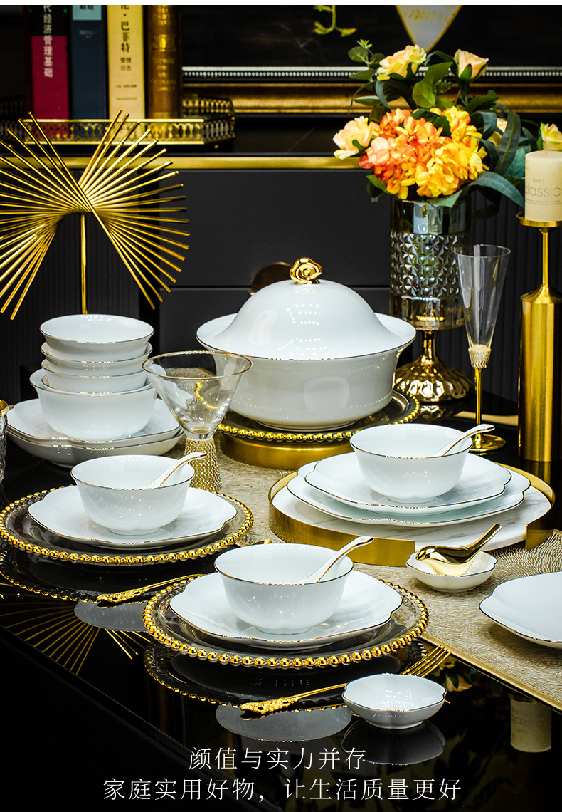 景德镇餐具套装高级高档乔迁送礼礼盒装碗碟鱼盘筷子高温釉下彩