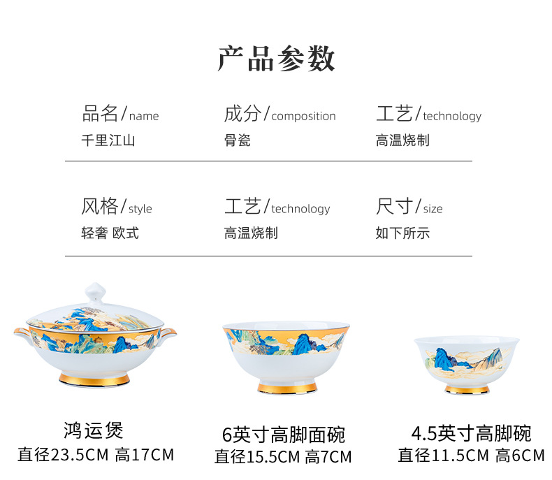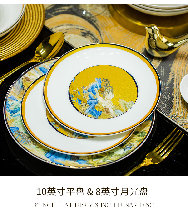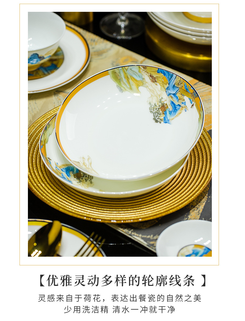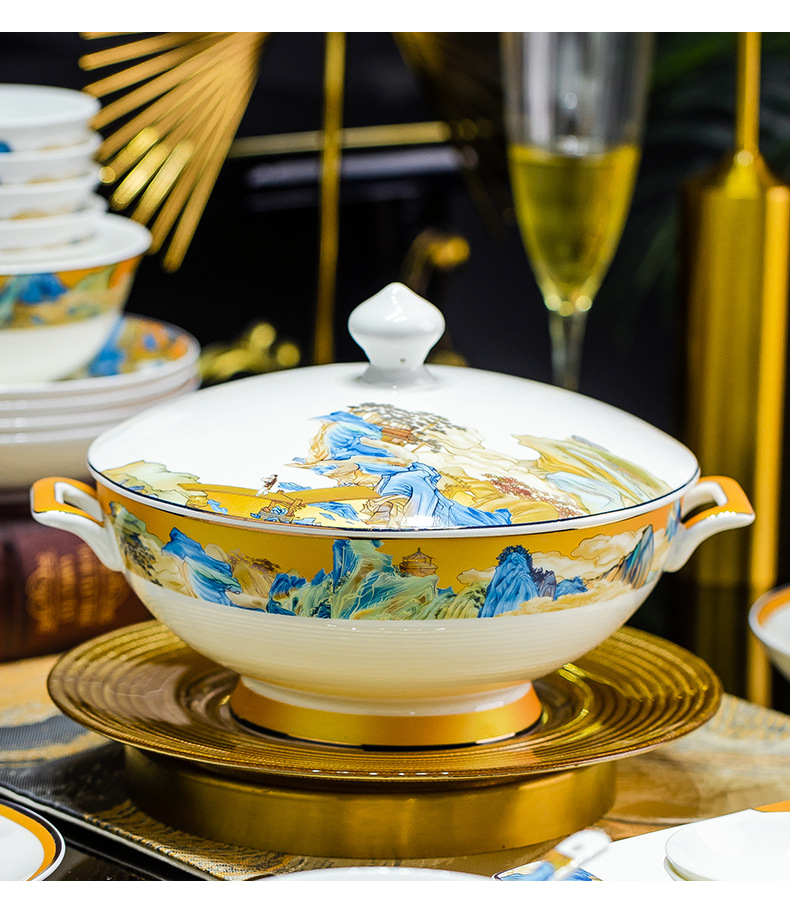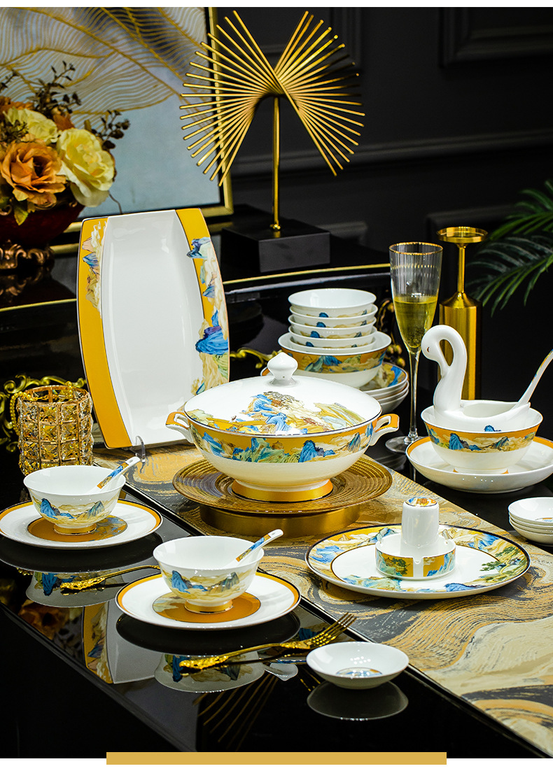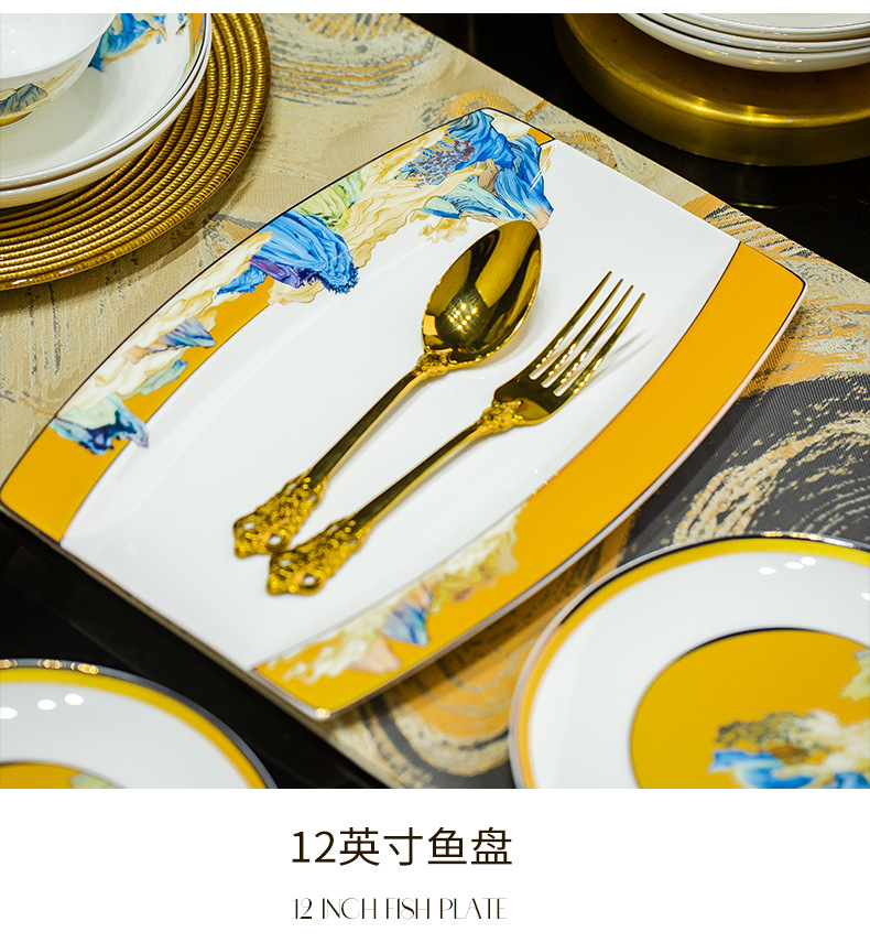 景德镇碗碟餐具套装鱼盘高脚米饭碗骨瓷高端高档礼盒乔迁结婚送礼