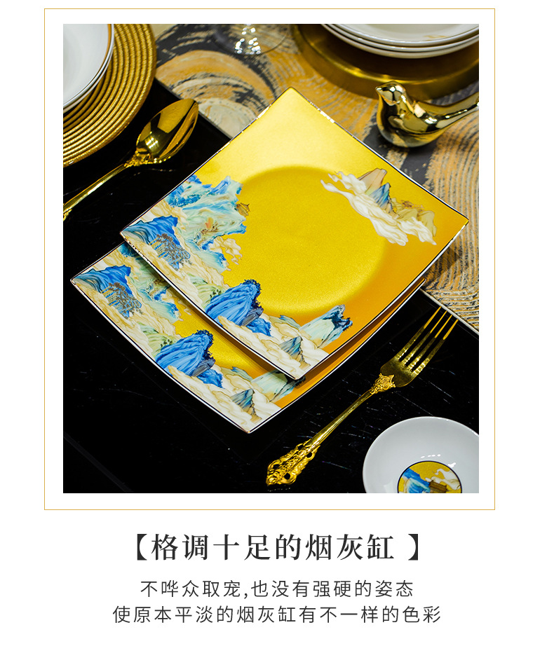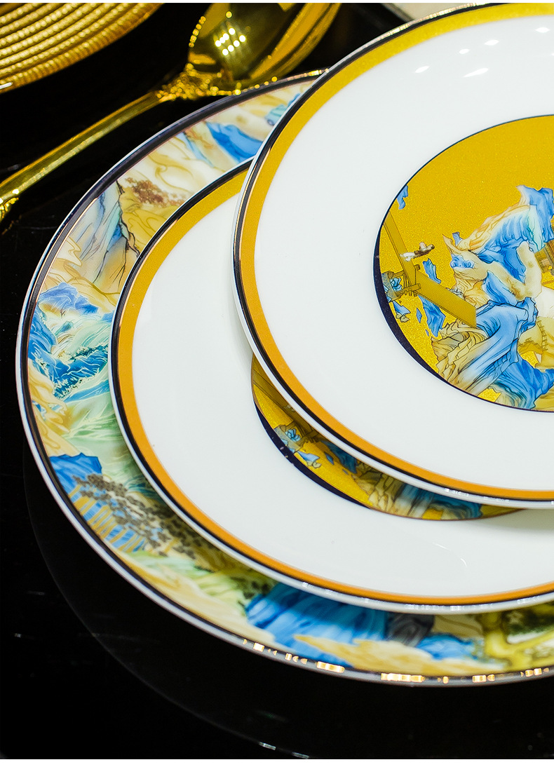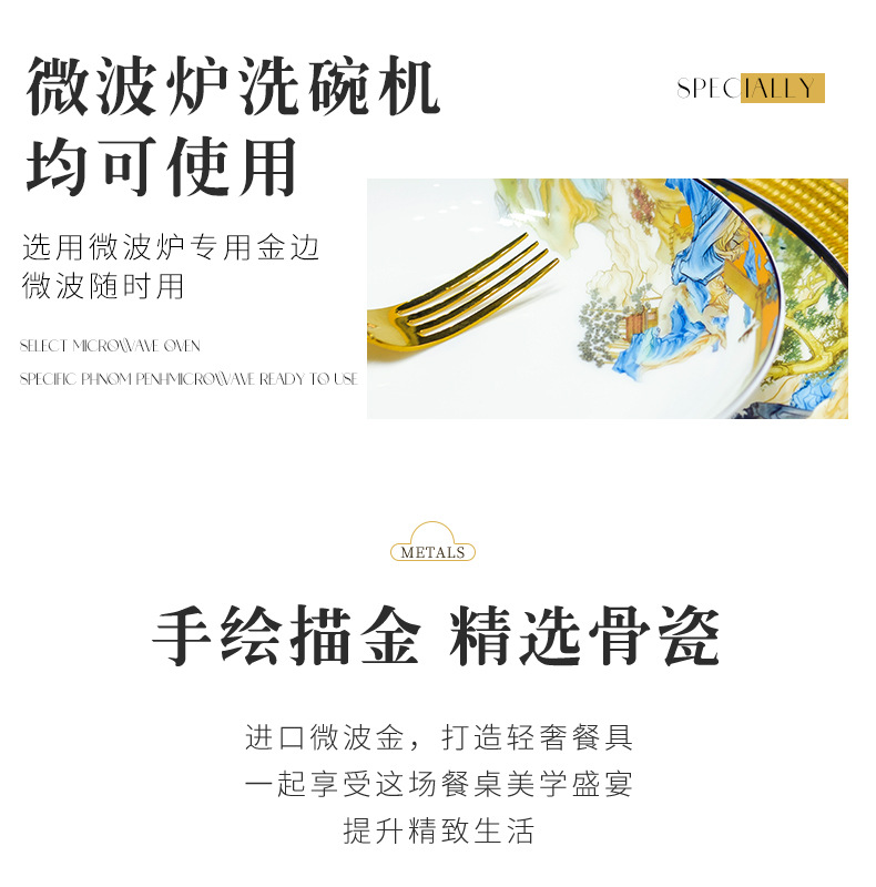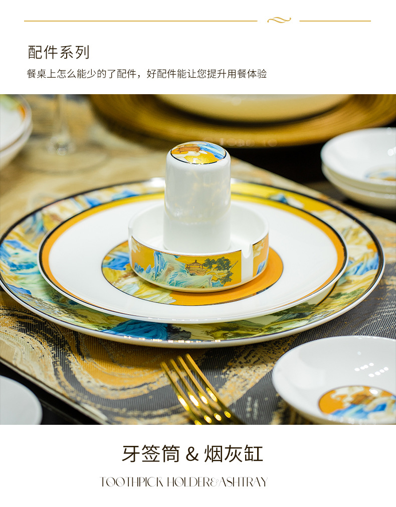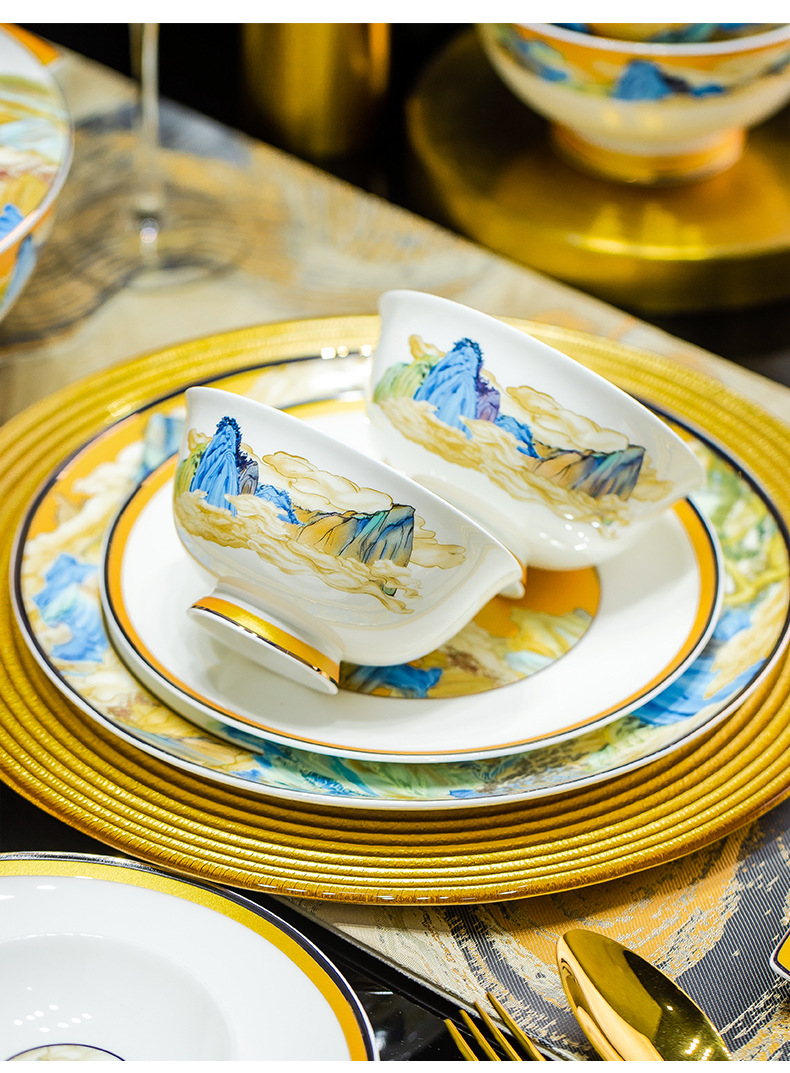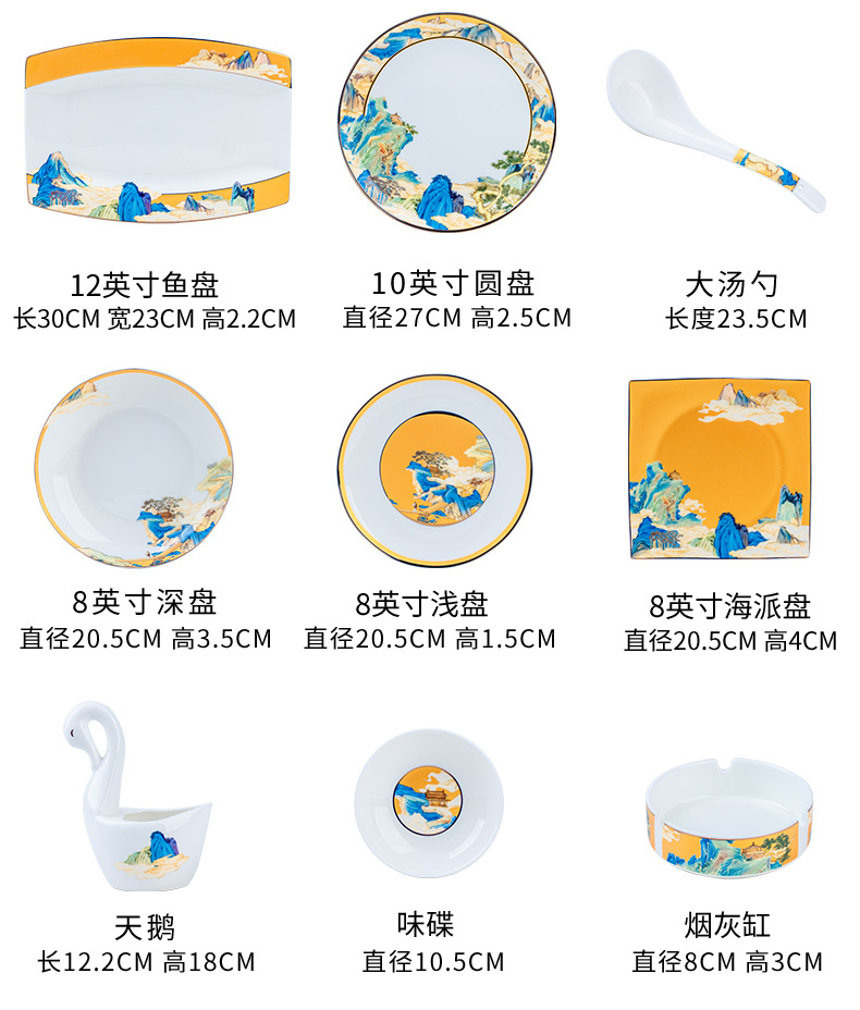 景德镇碗碟餐具套装鱼盘高脚米饭碗骨瓷高端高档礼盒乔迁结婚送礼