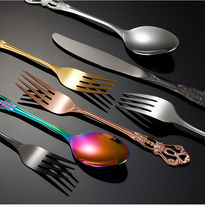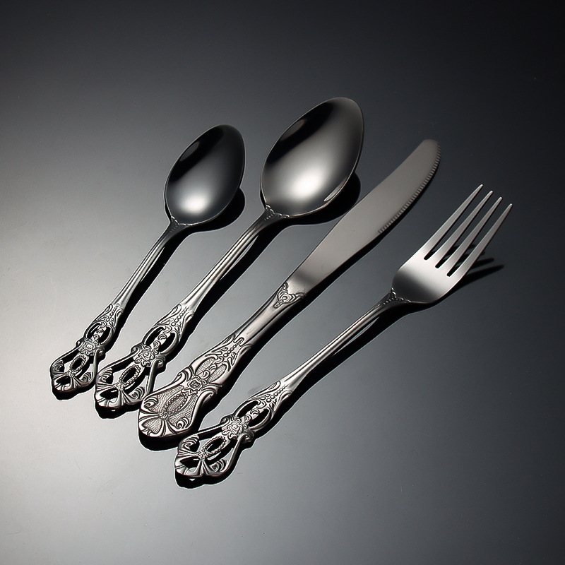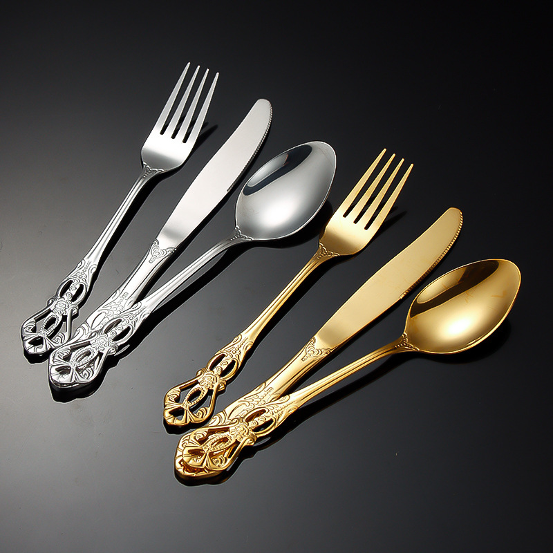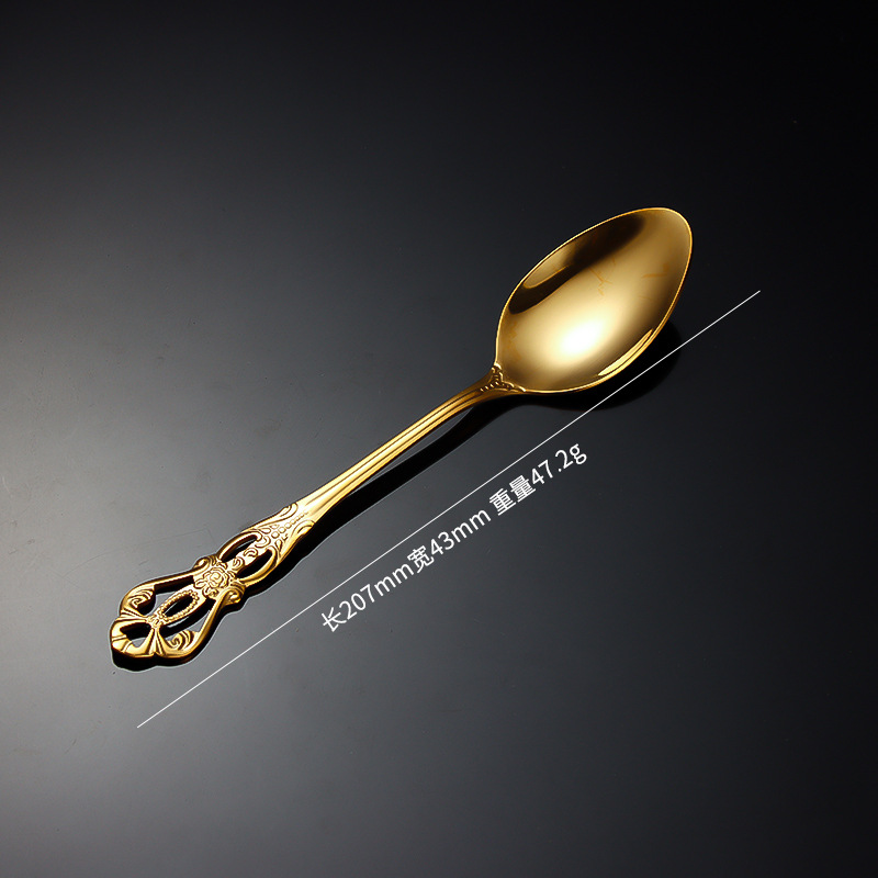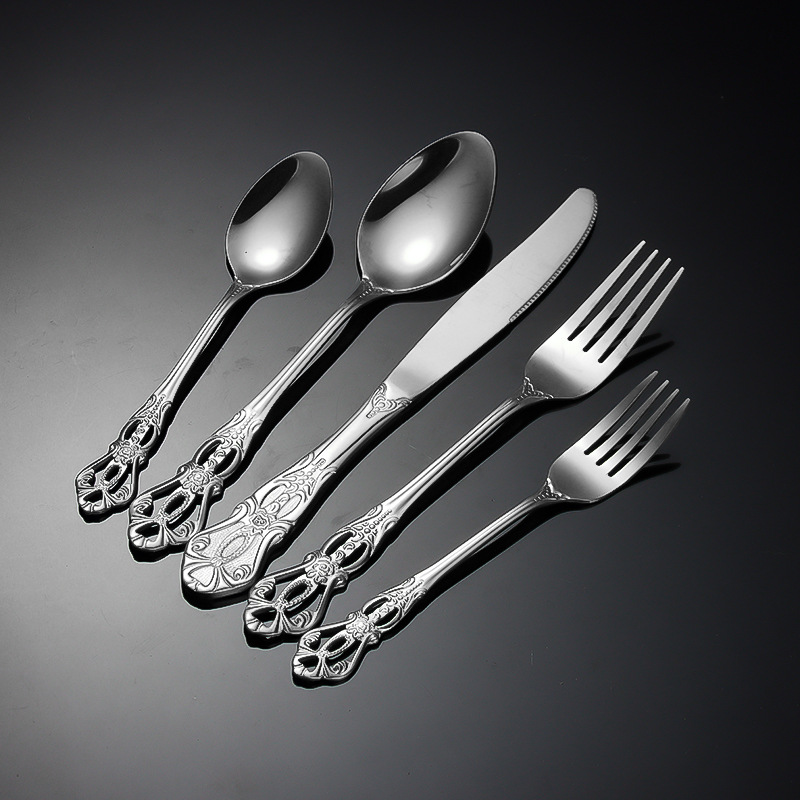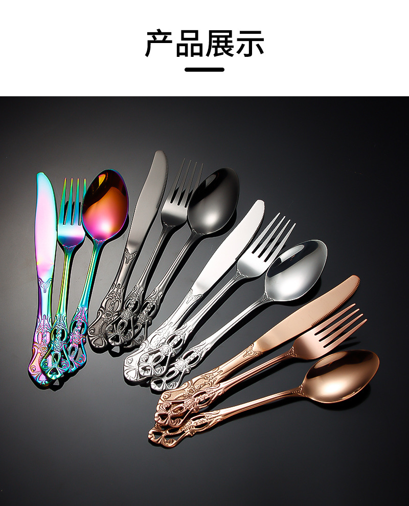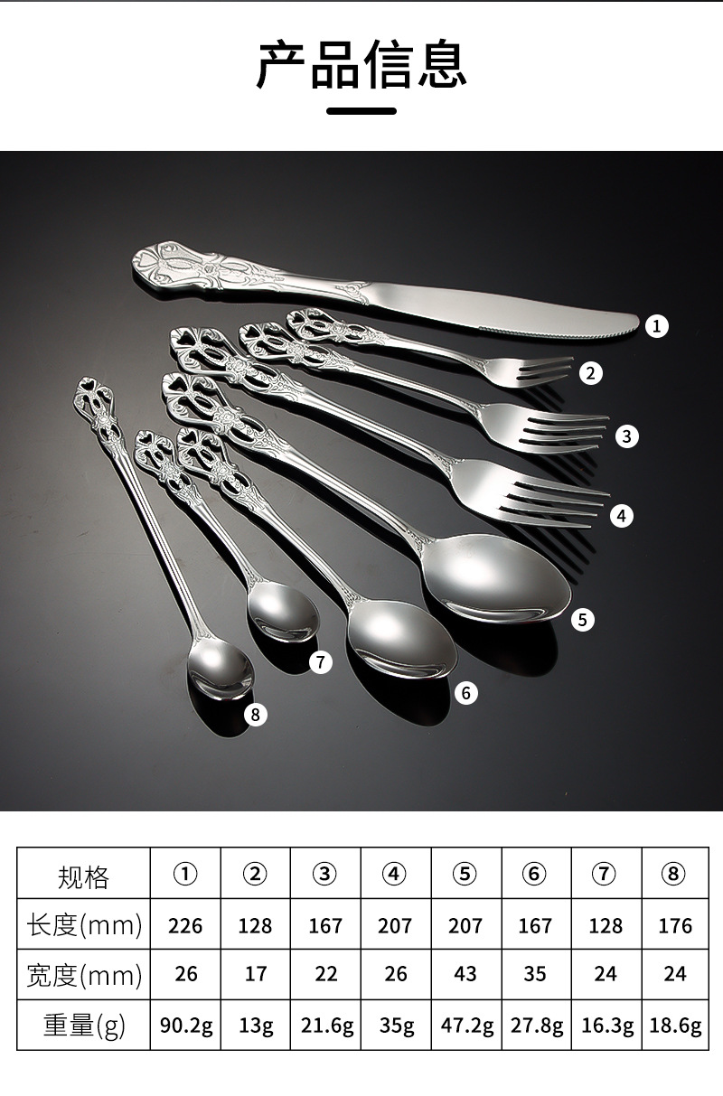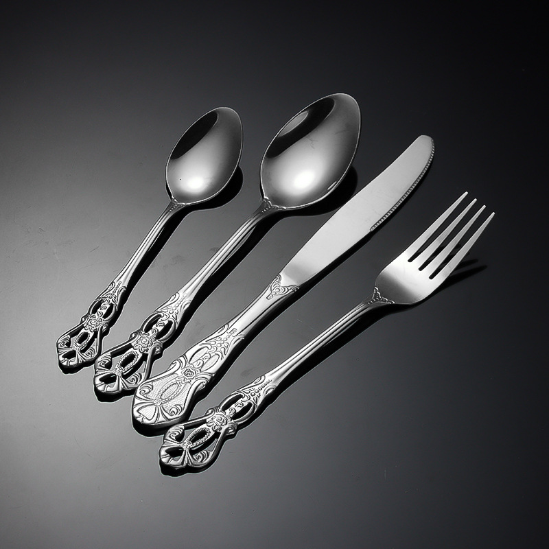 跨境不锈钢刀叉勺 皇庭牛排刀甜品勺沙拉叉冰勺 酒店浮雕西餐刀叉