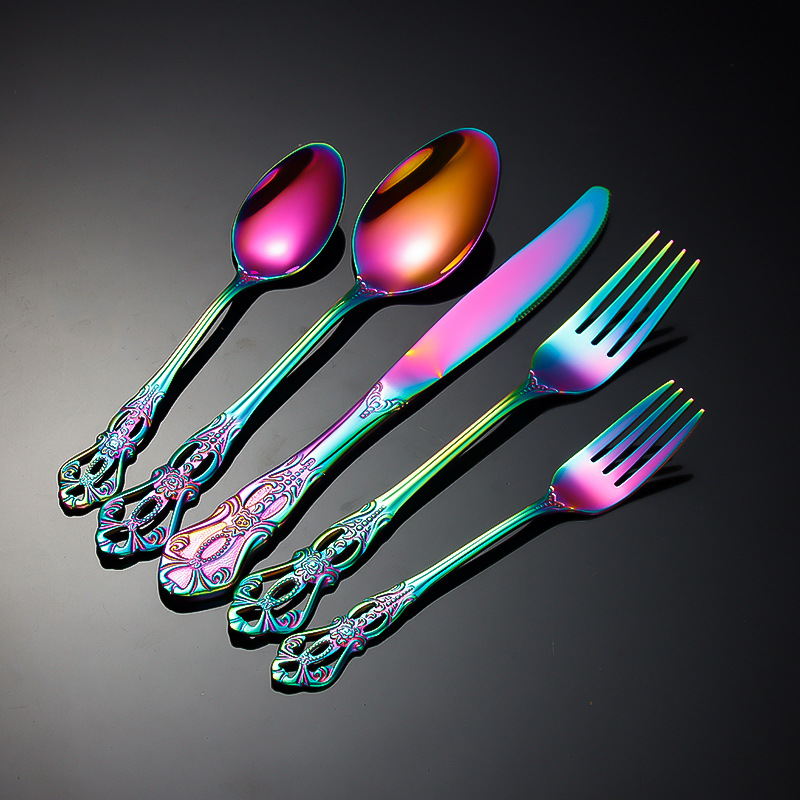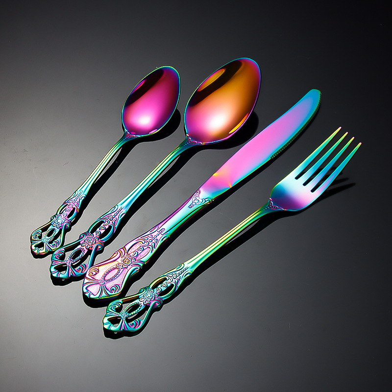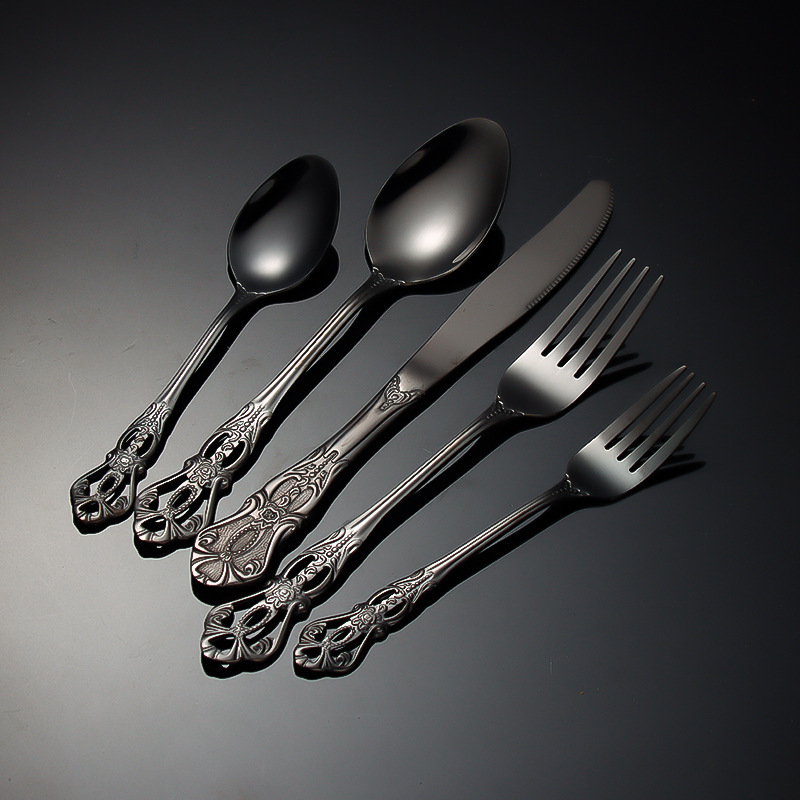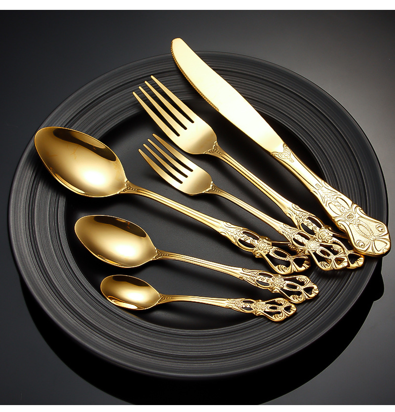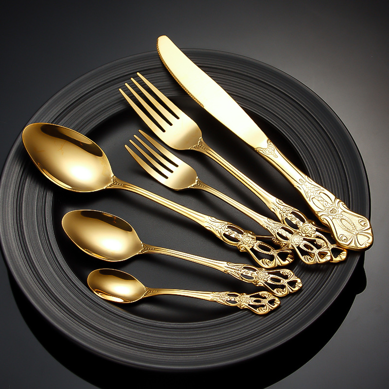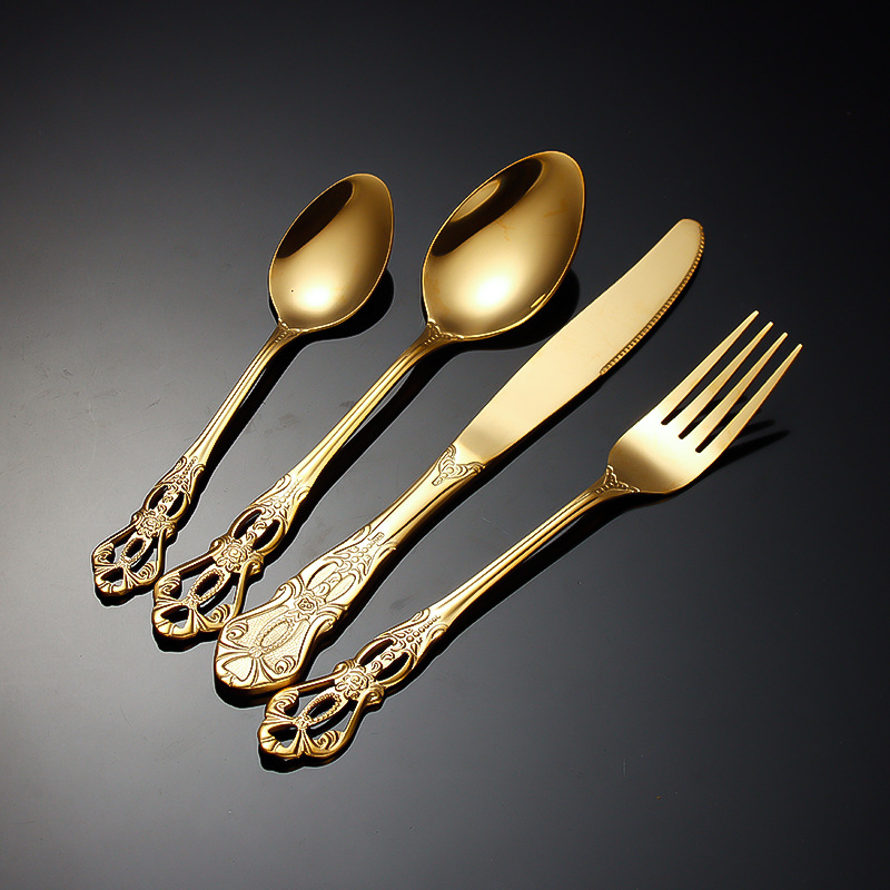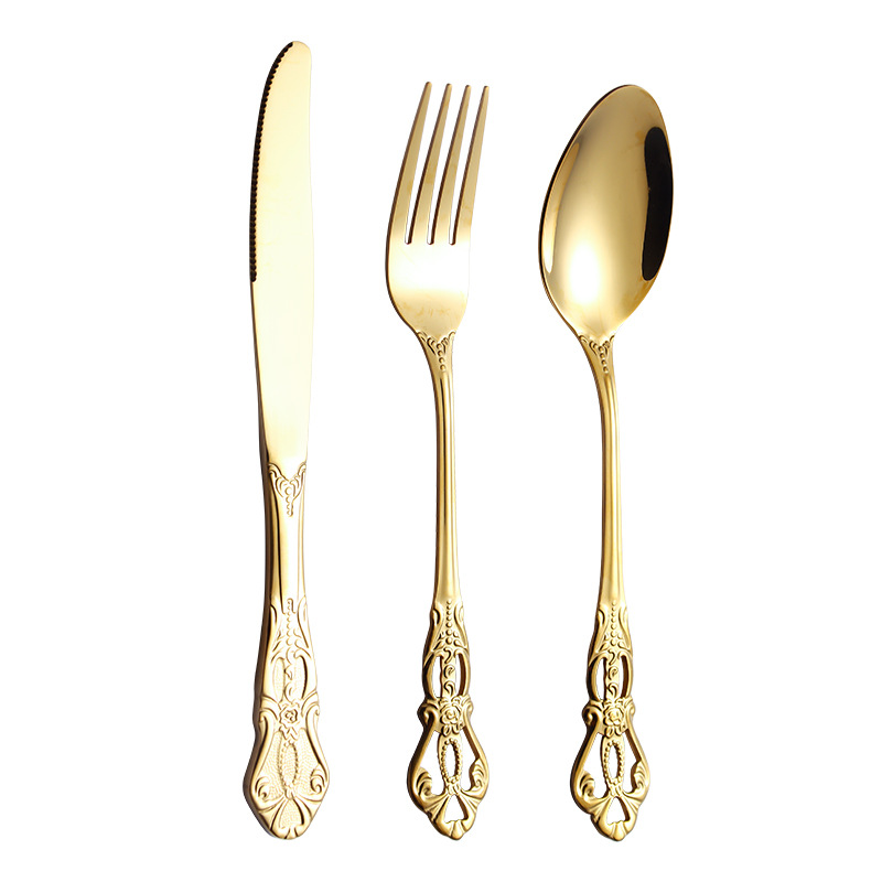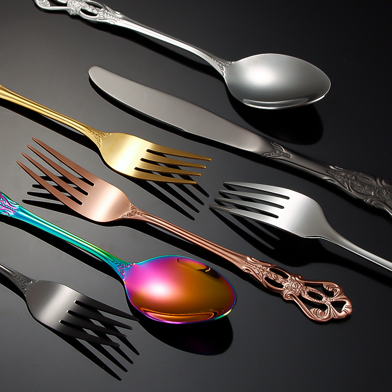 跨境不锈钢刀叉勺 皇庭牛排刀甜品勺沙拉叉冰勺 酒店浮雕西餐刀叉