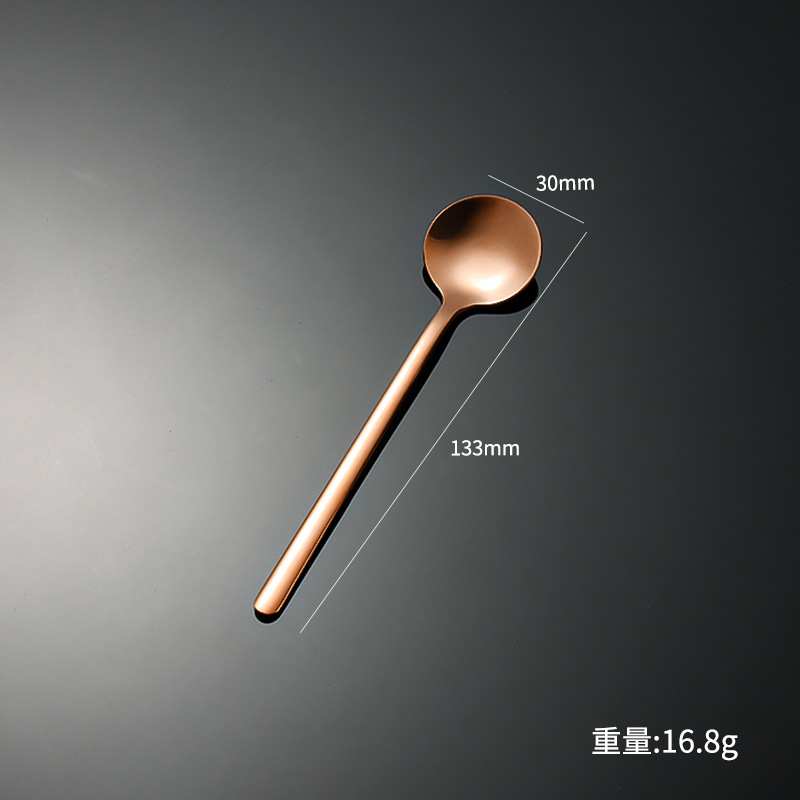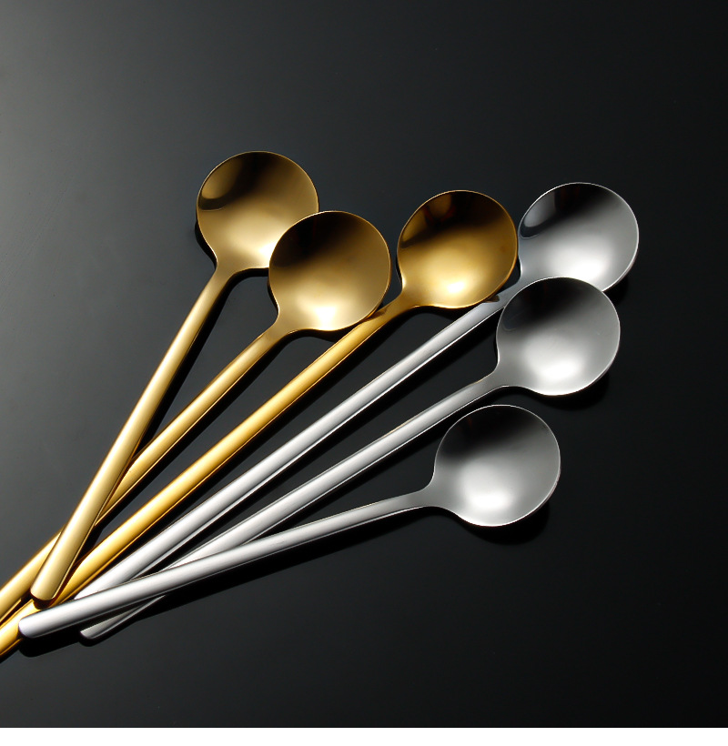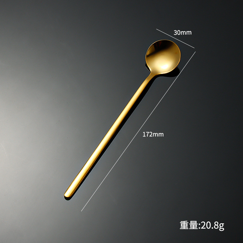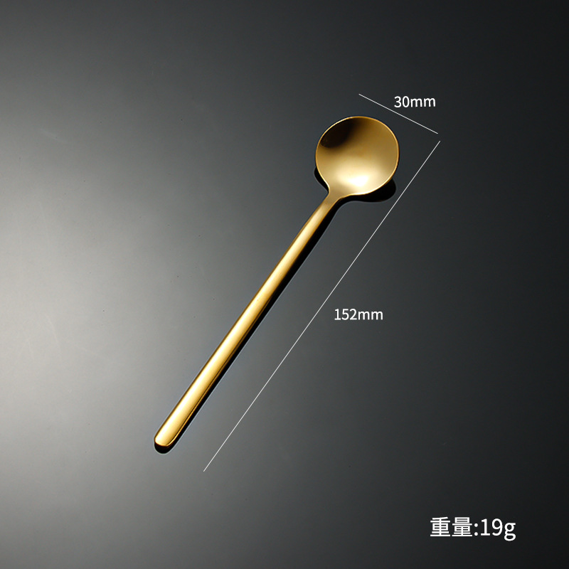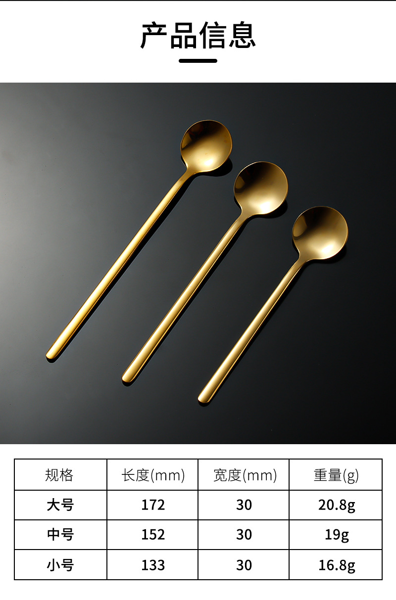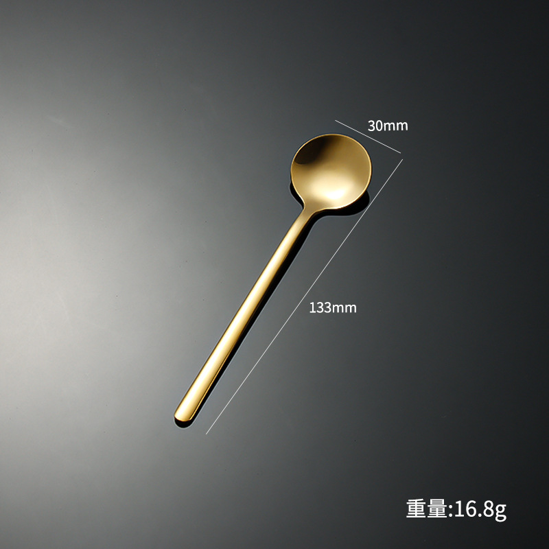 304不锈钢勺子 咖啡勺 金色小圆勺蜂蜜调羹甜品勺 咖啡长柄搅拌勺