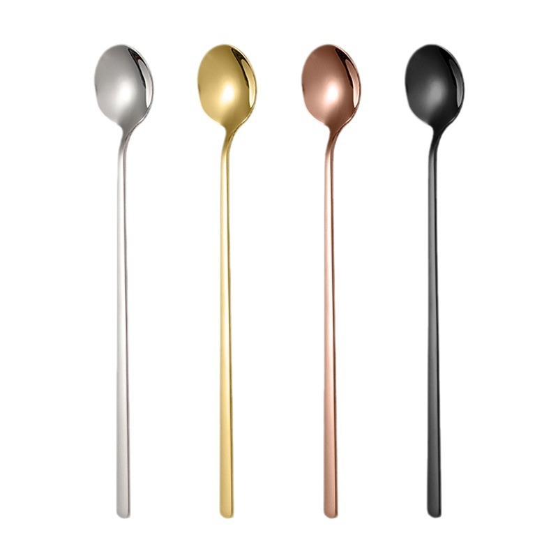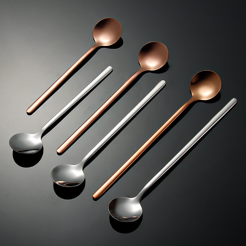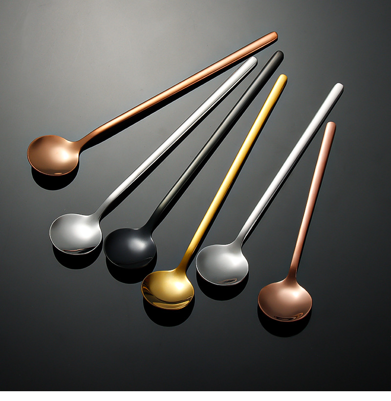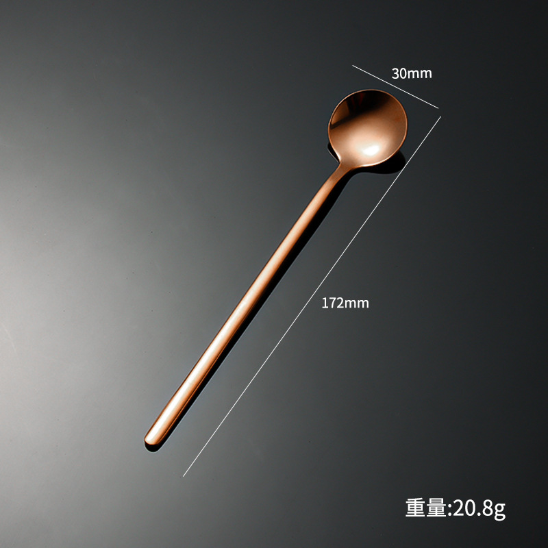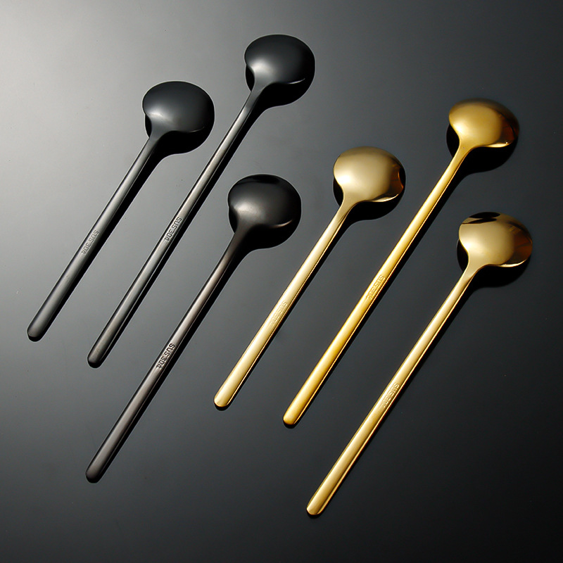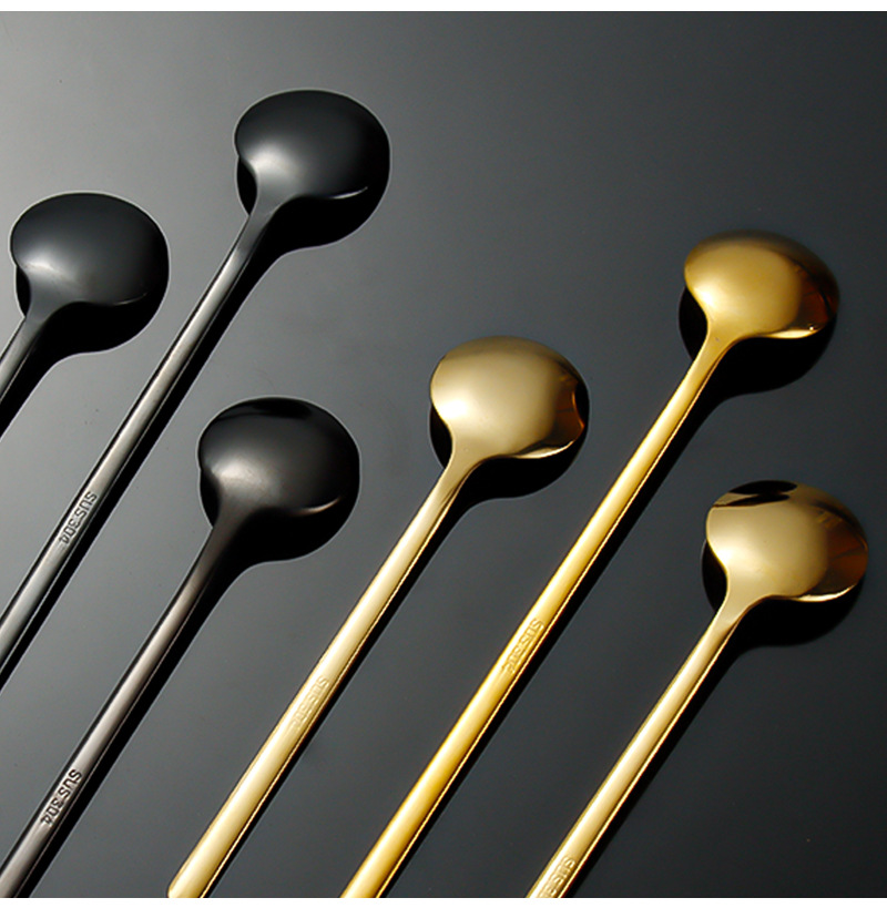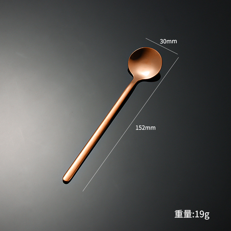 304不锈钢勺子 咖啡勺 金色小圆勺蜂蜜调羹甜品勺 咖啡长柄搅拌勺
