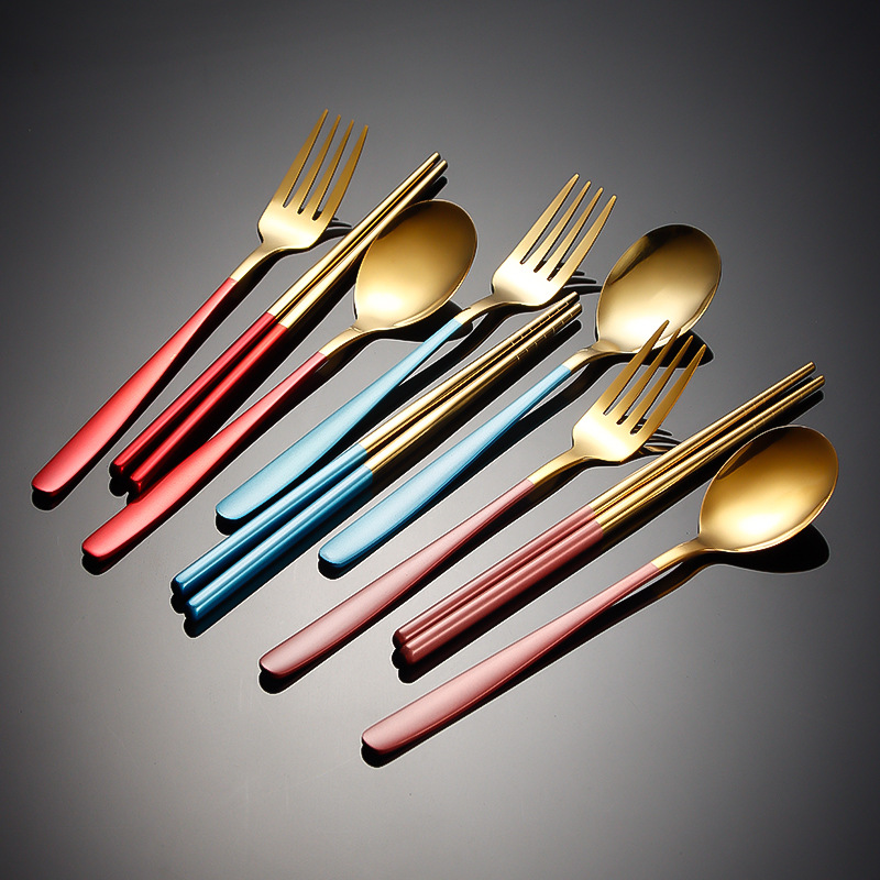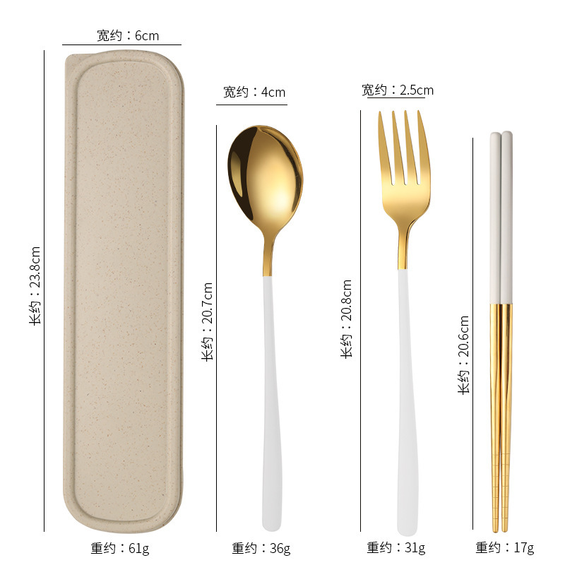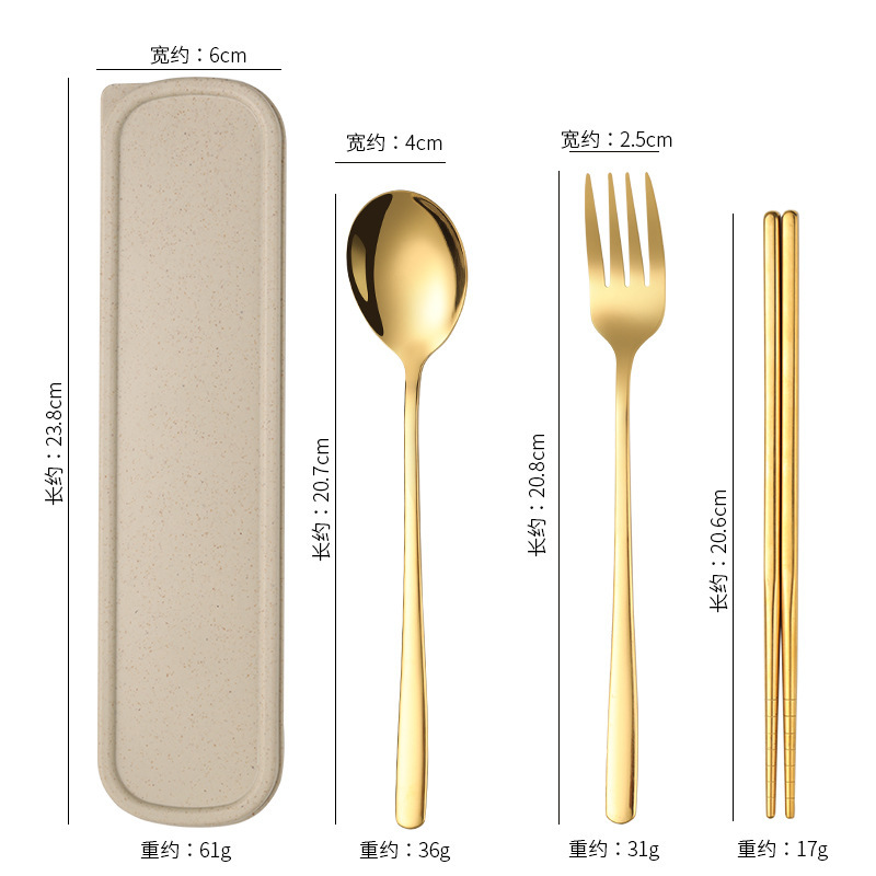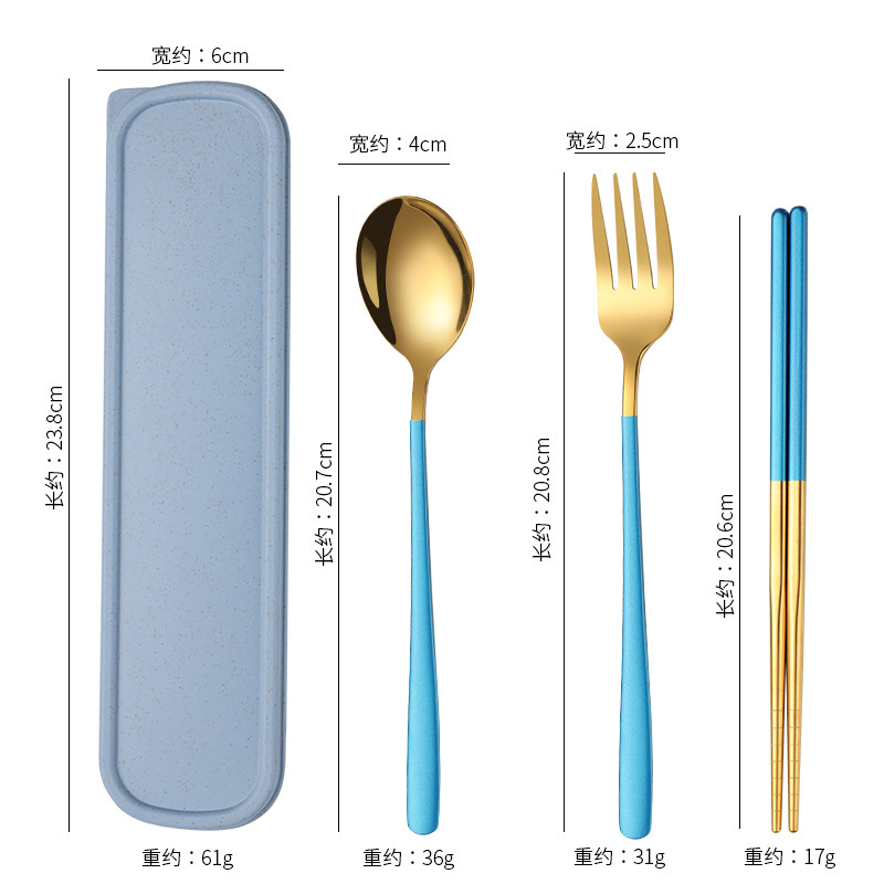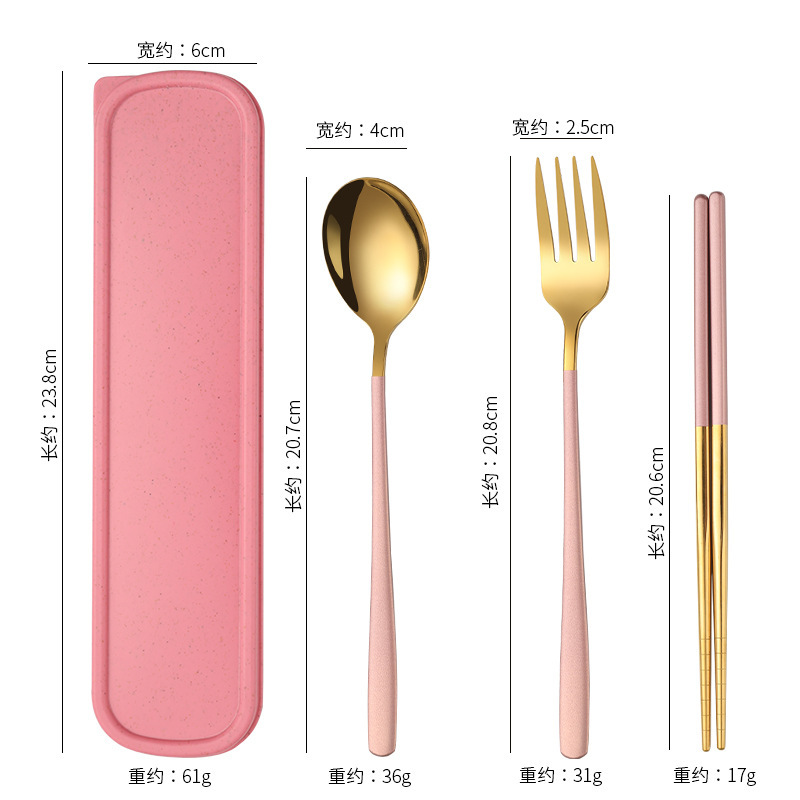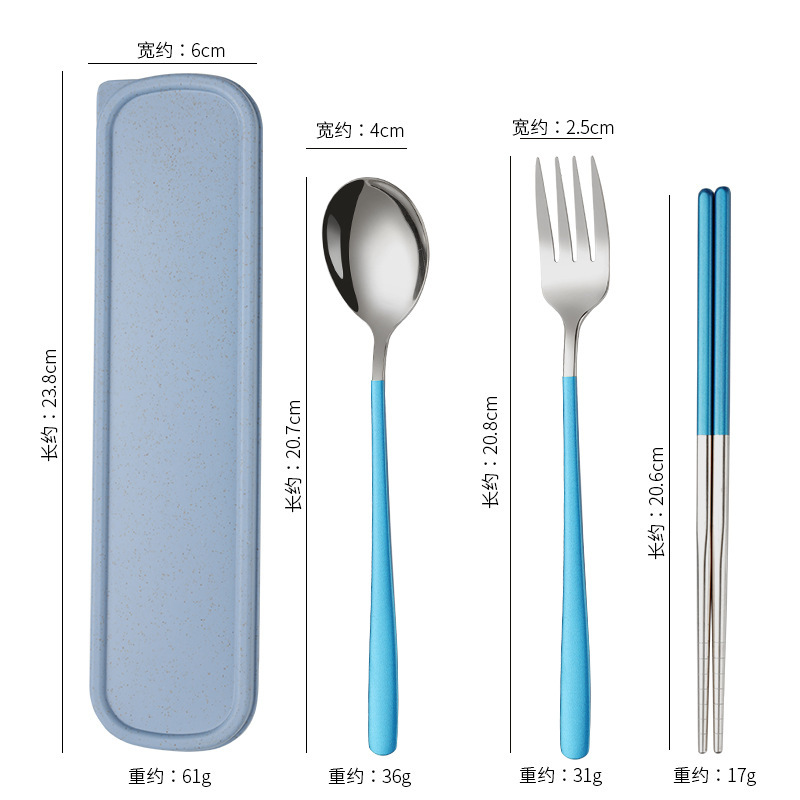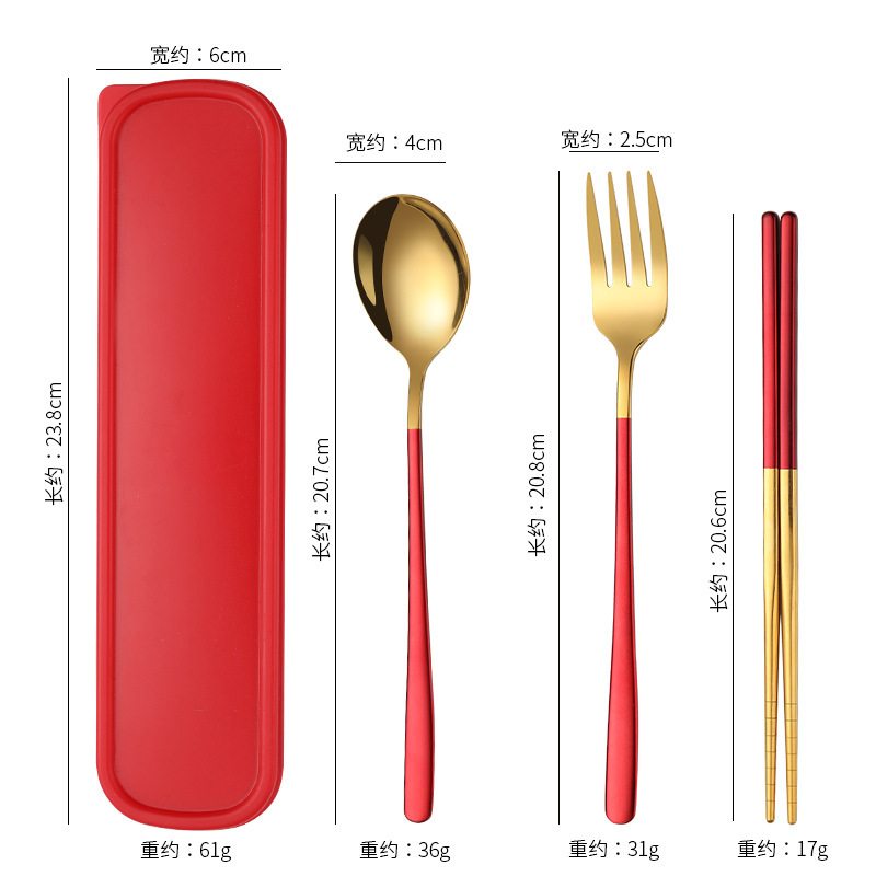 不锈钢便携餐具韩式三件套叉子勺子筷子套装户外礼品学生餐具套装