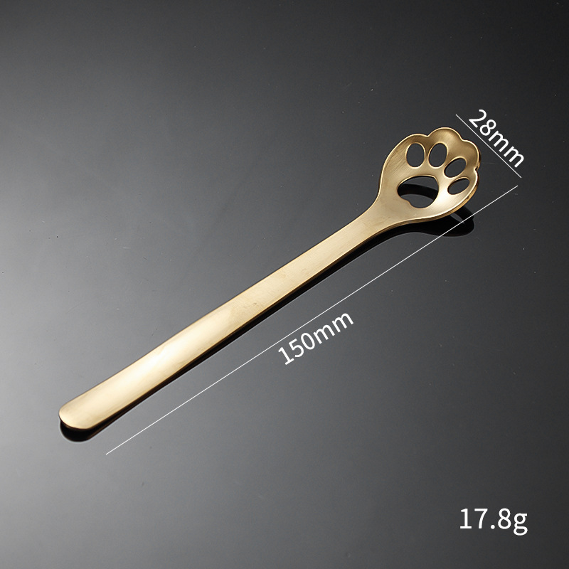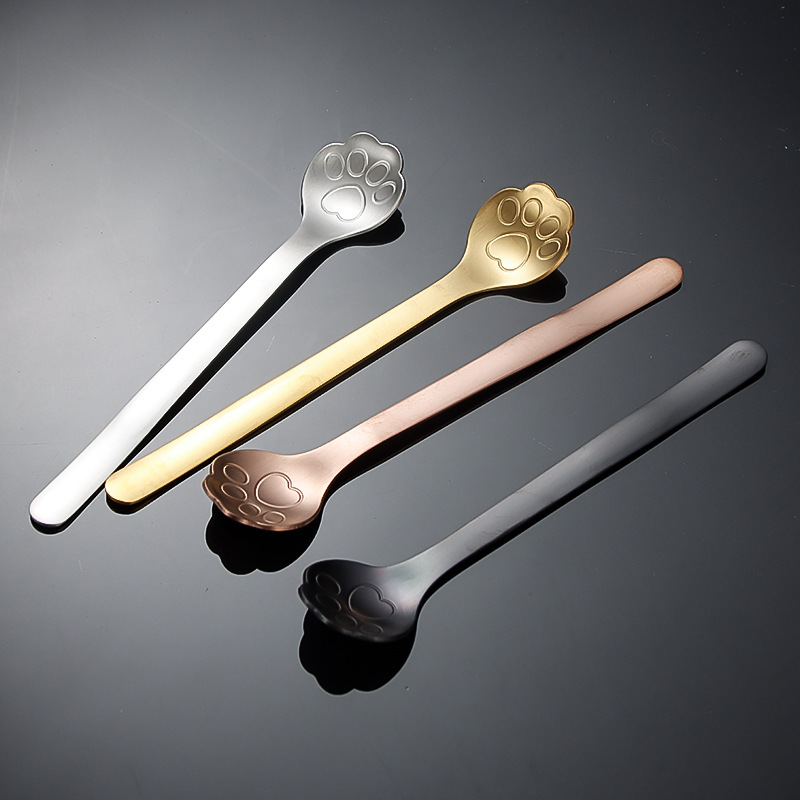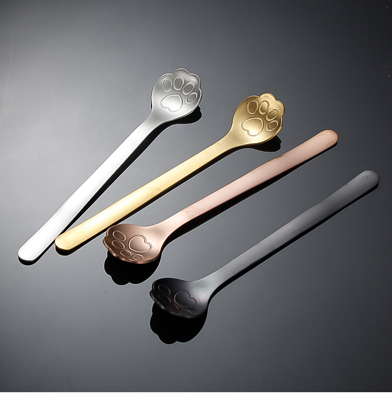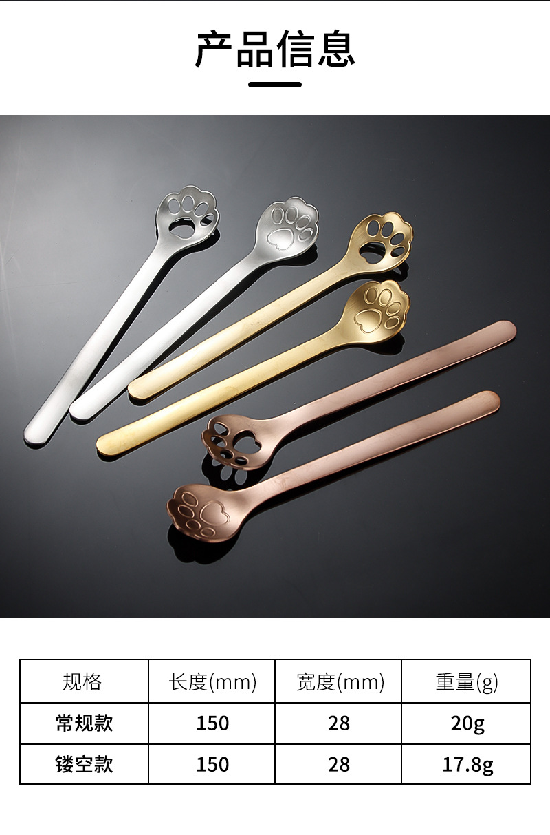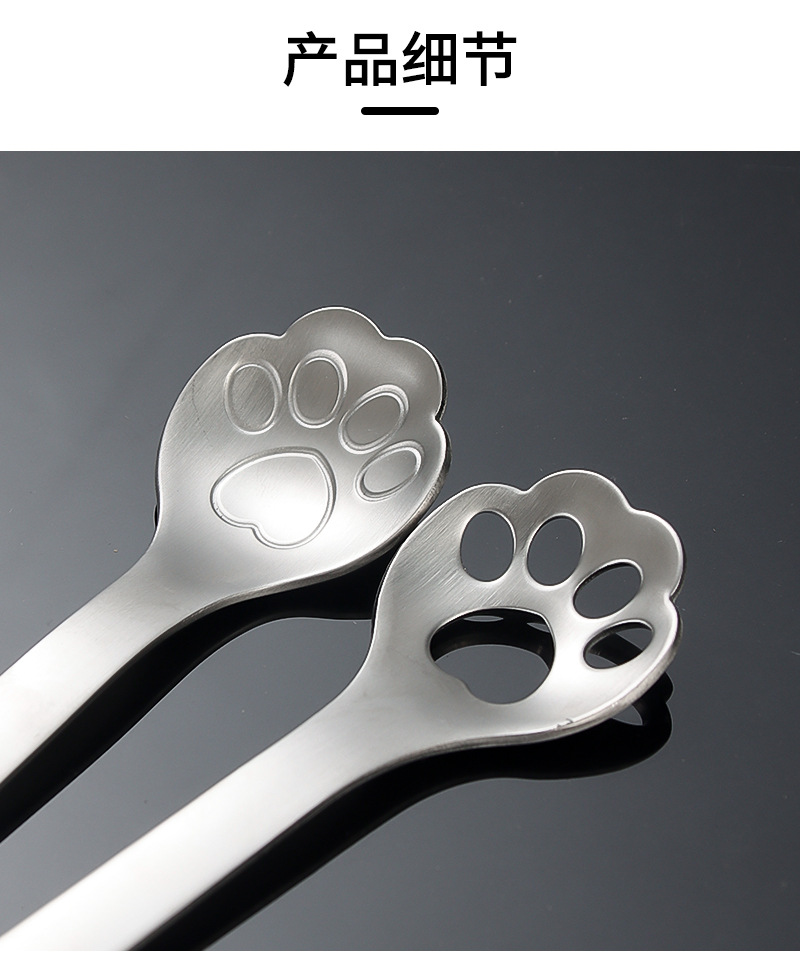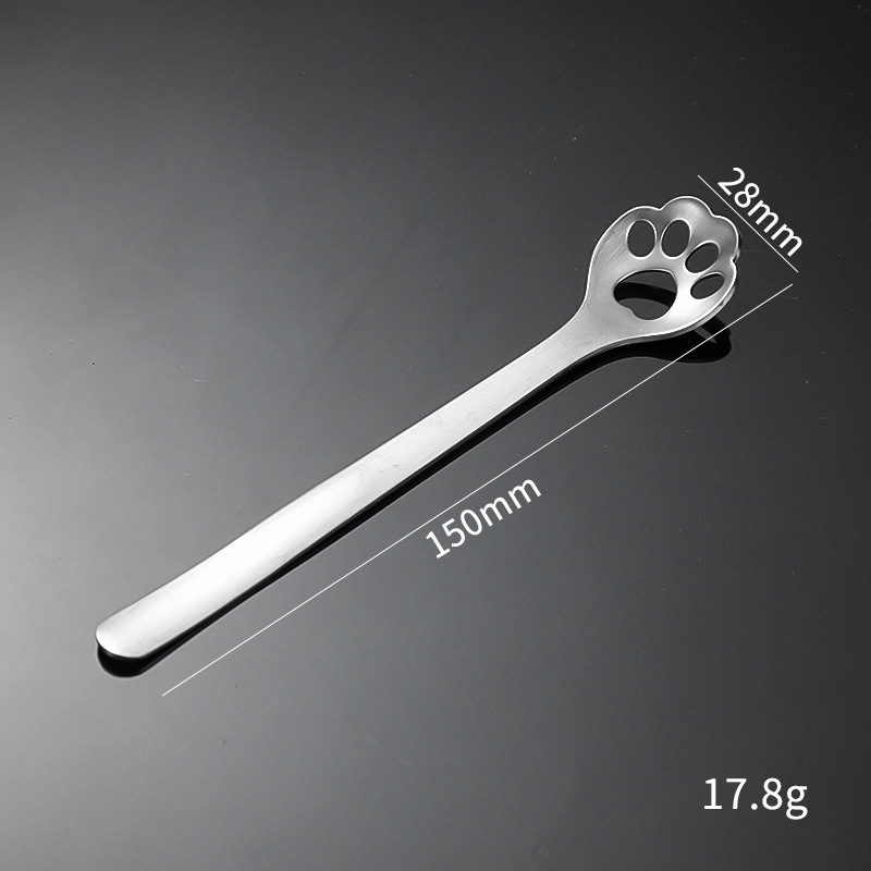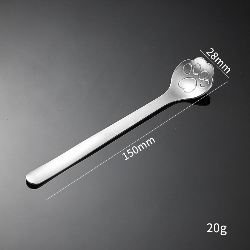304不锈钢小勺子 创意卡通猫爪勺搅拌勺甜品勺15cm可爱调羹咖啡勺