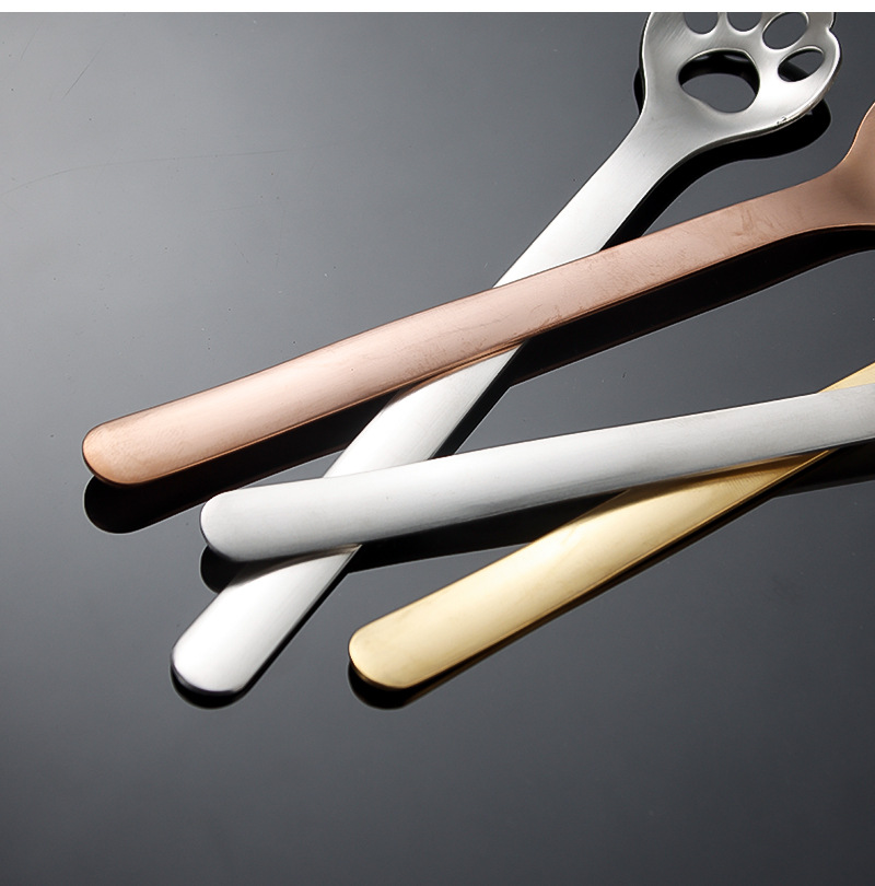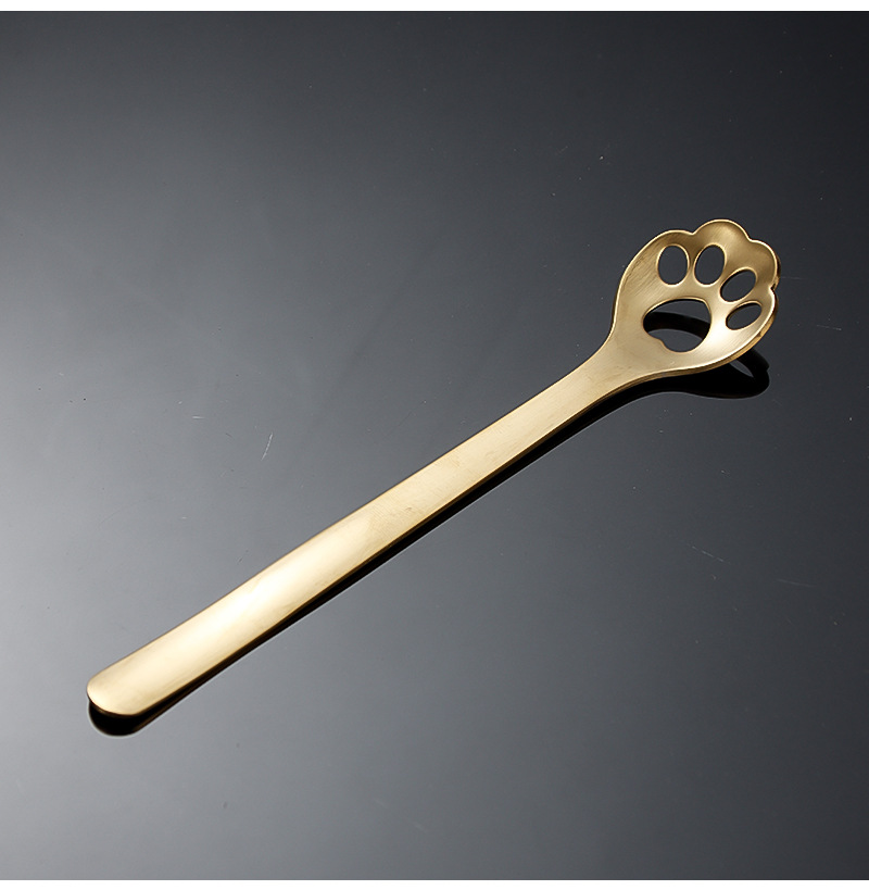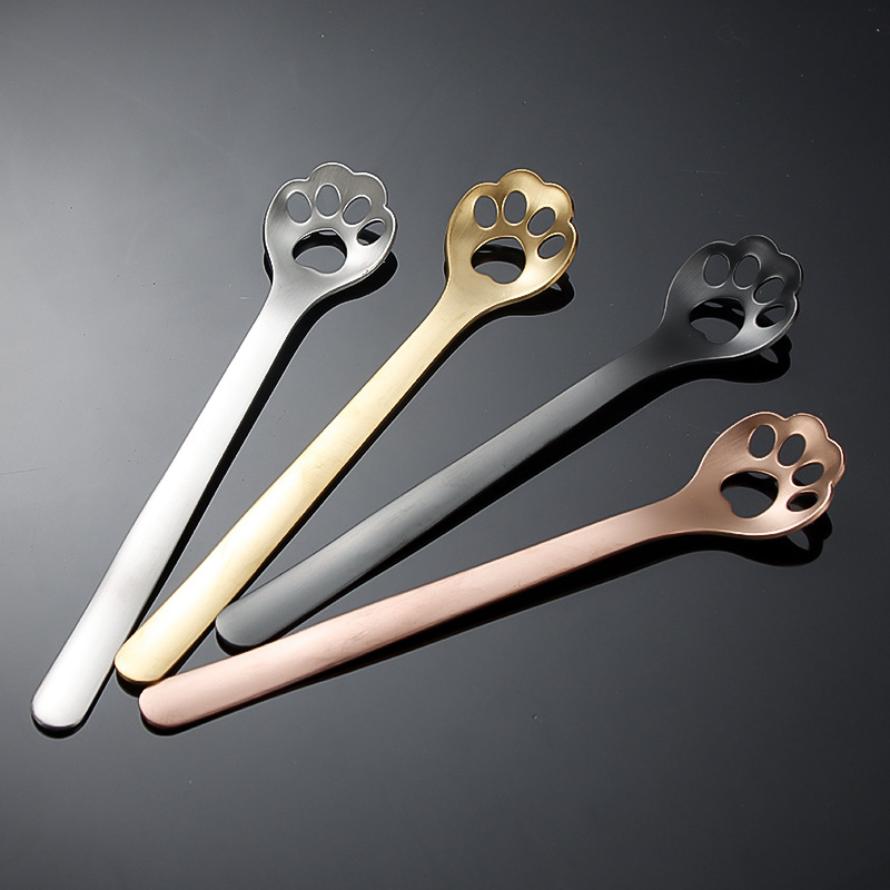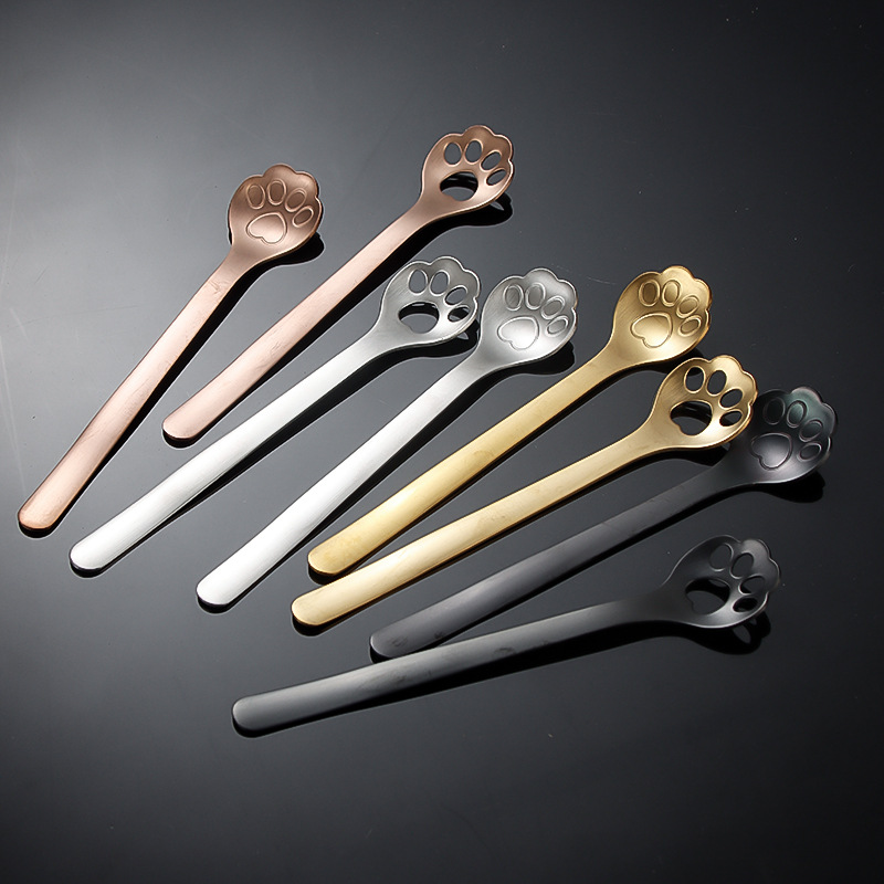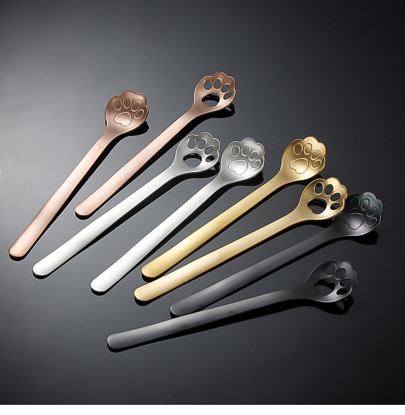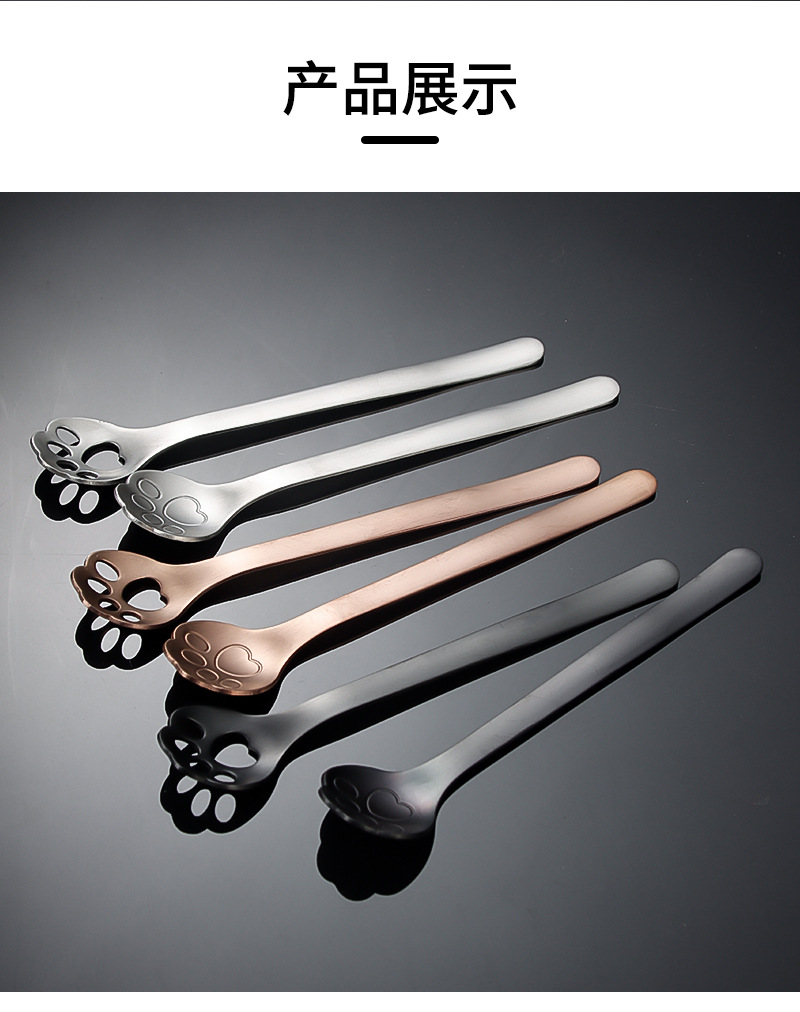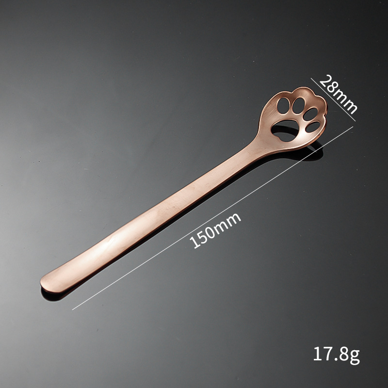 304不锈钢小勺子 创意卡通猫爪勺搅拌勺甜品勺15cm可爱调羹咖啡勺