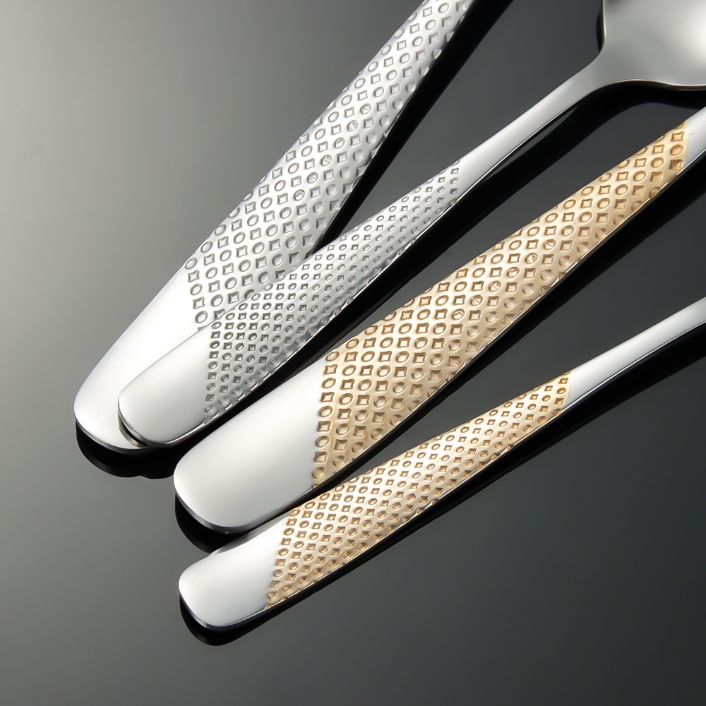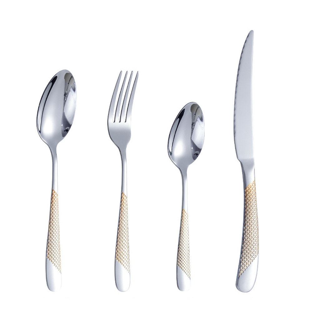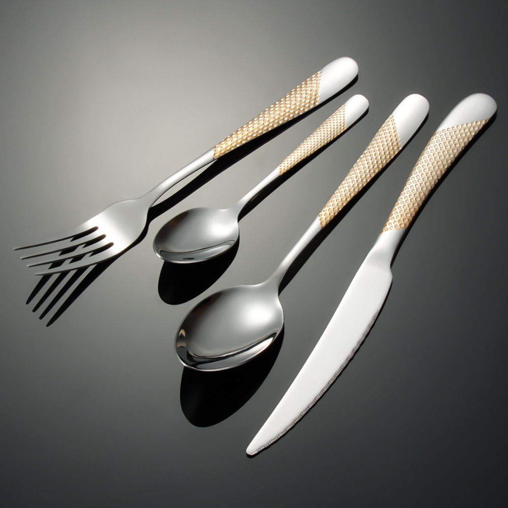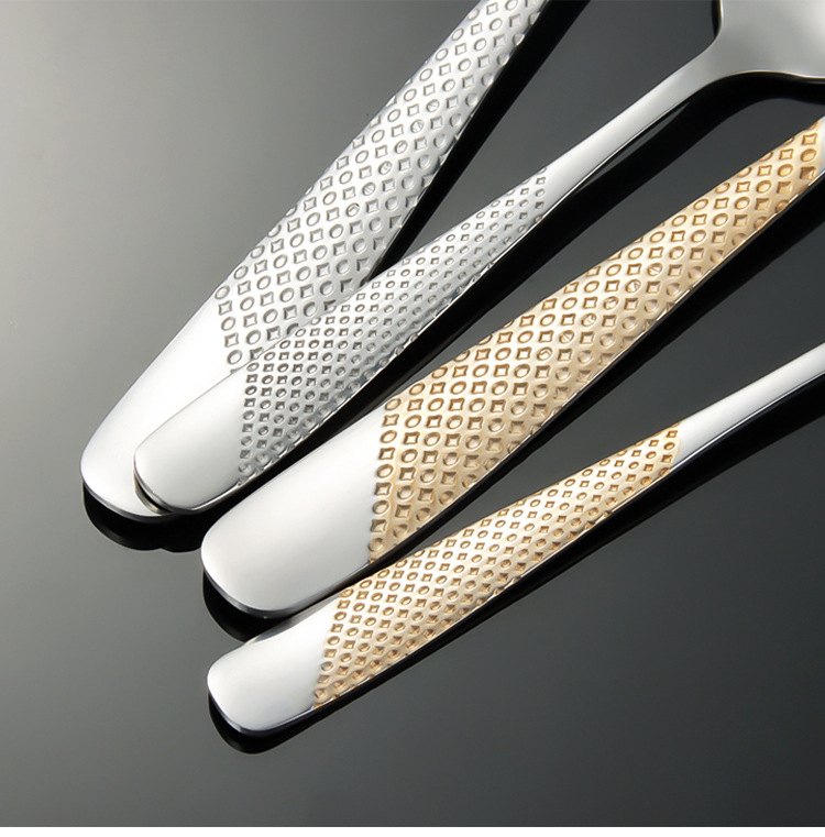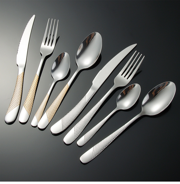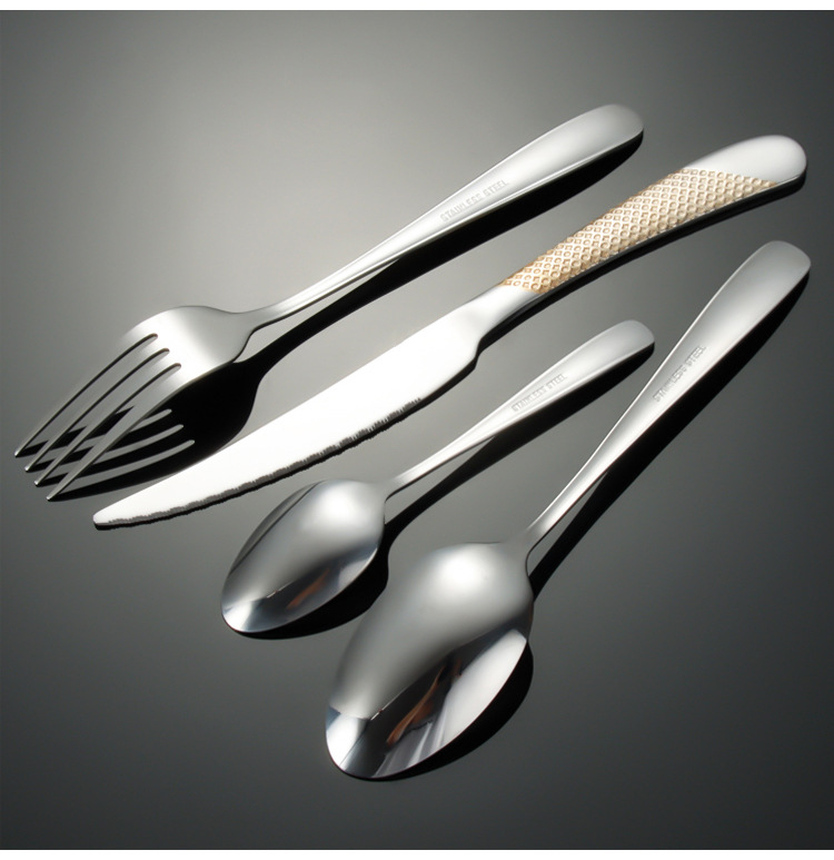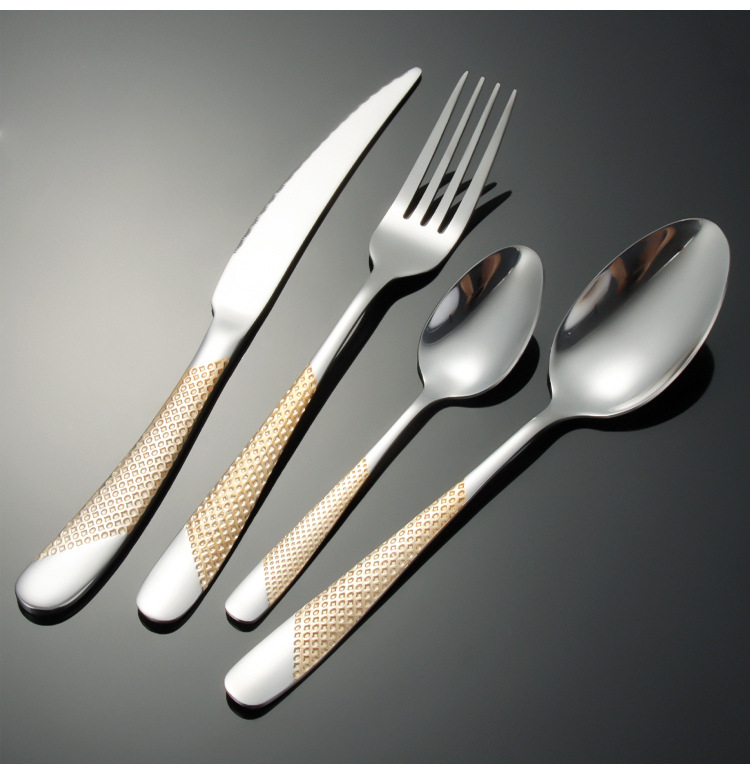 跨境不锈钢餐具套装 星钻牛排刀甜品叉勺 手柄镀金礼盒西餐四主件