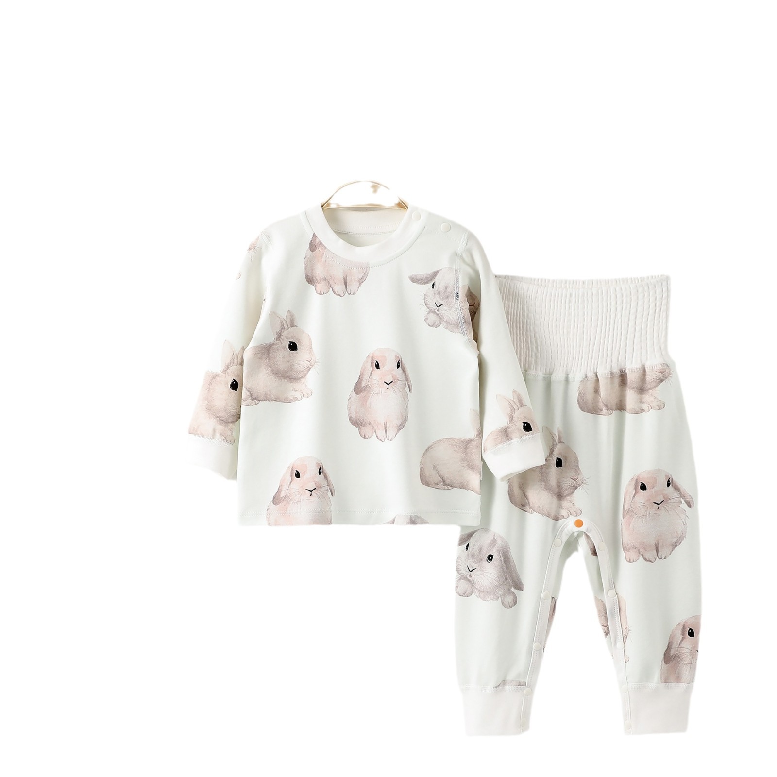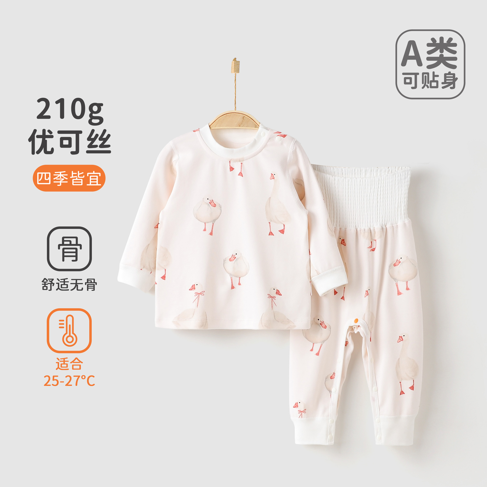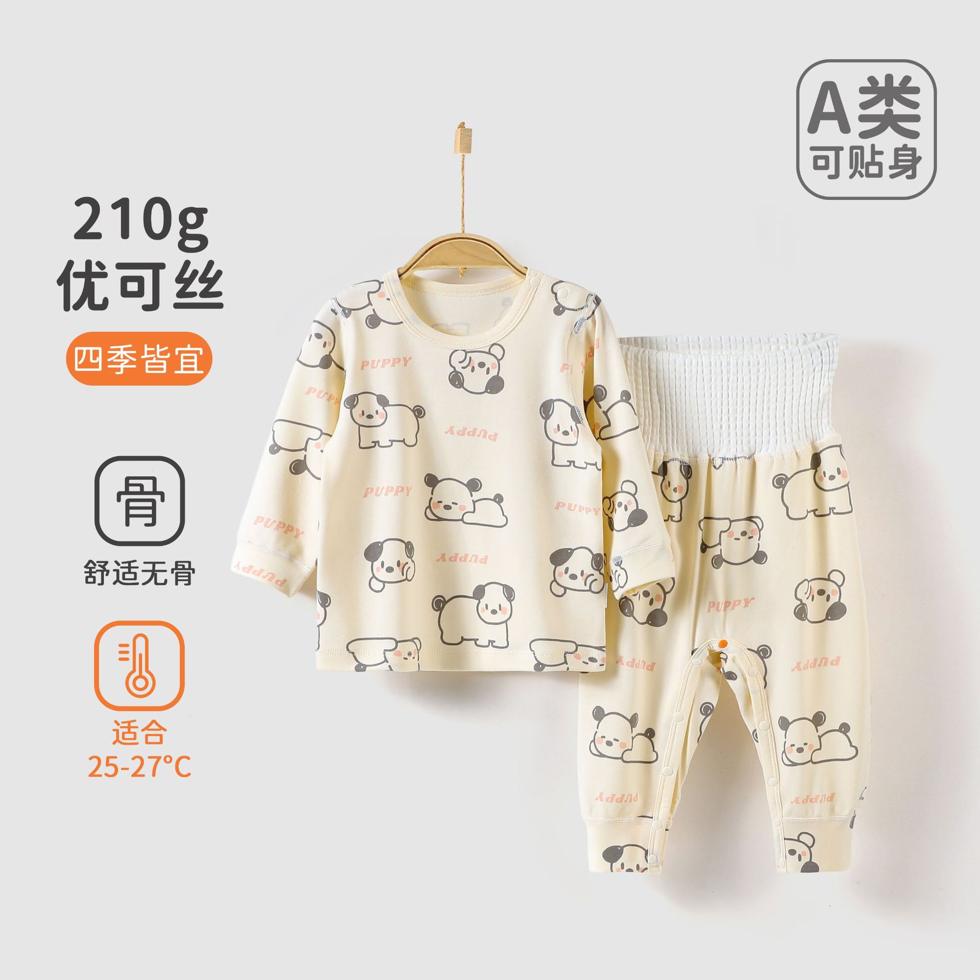 新生儿衣服春秋优可丝高腰护肚免脱婴幼儿分体套装宝宝秋衣秋裤