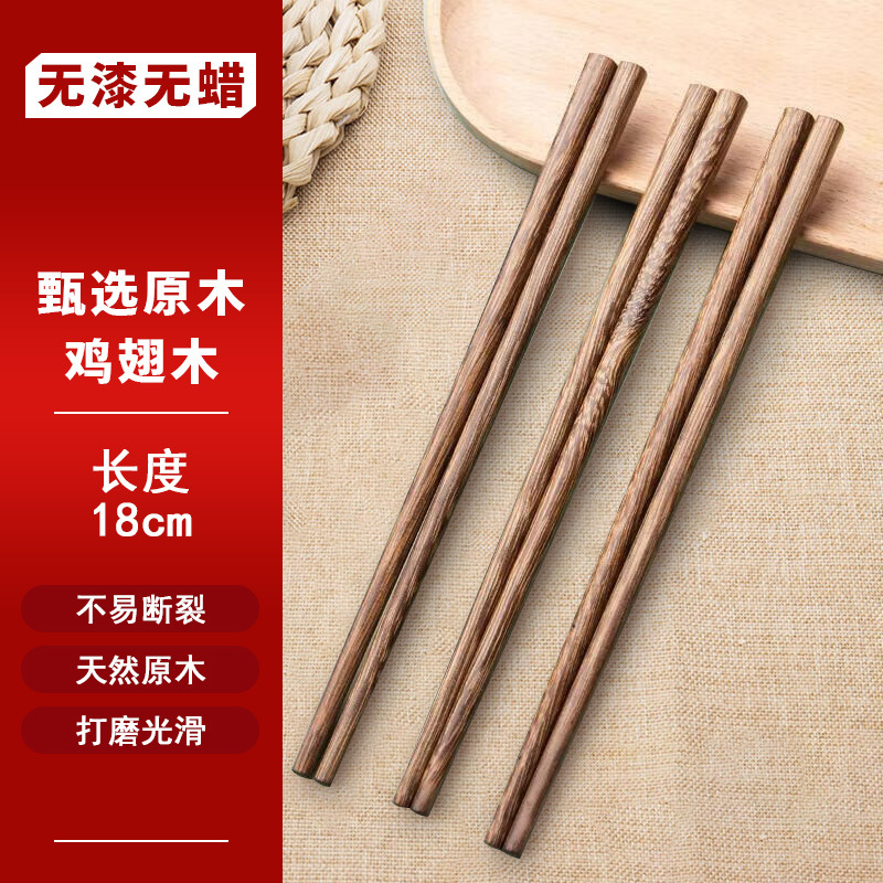 【厂家直销】鸡翅木筷子批发家用短筷红檀木无漆无蜡实木木筷子