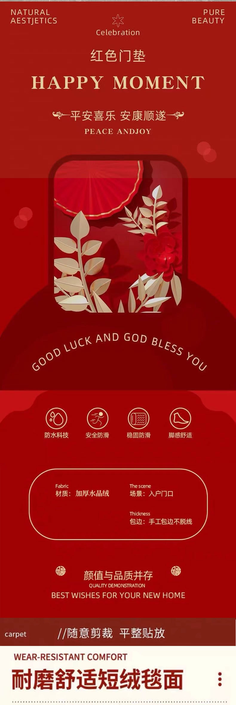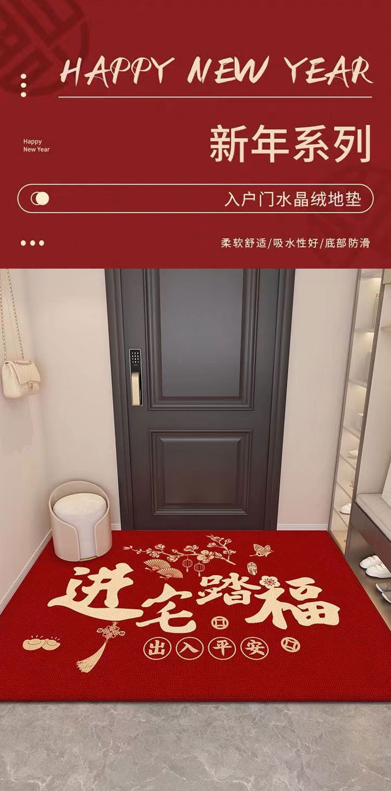 2024地垫入户门垫高级感乔迁之喜地垫家用进门地毯新年门垫红门垫