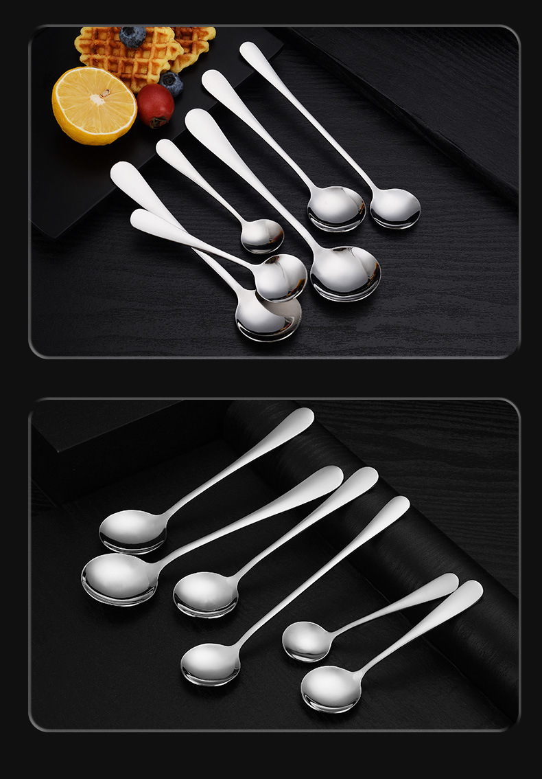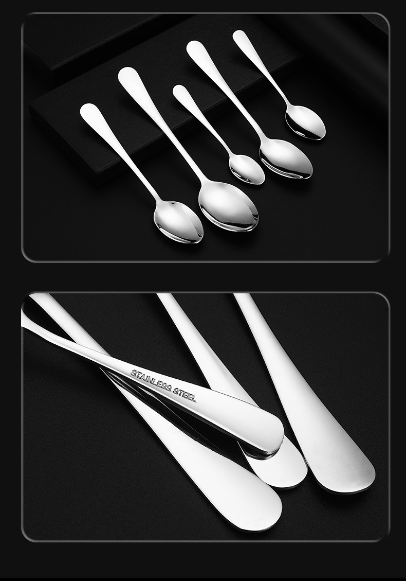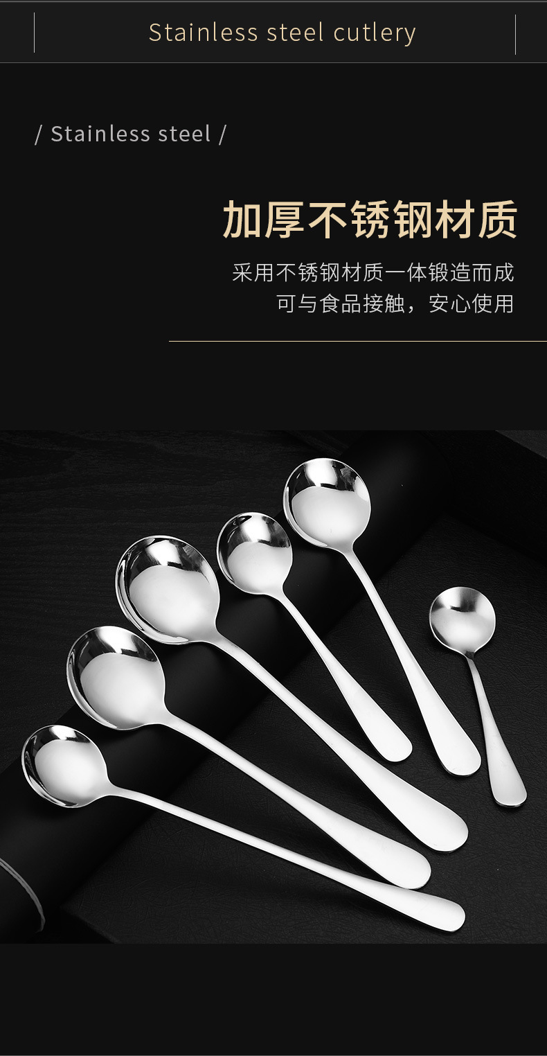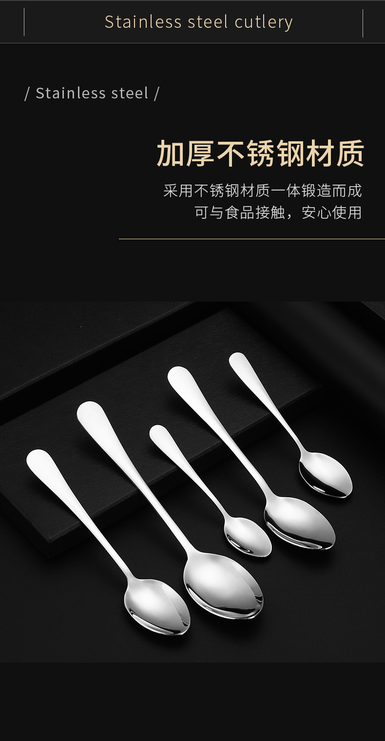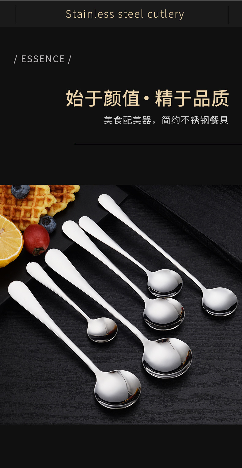 304不锈钢勺子家用吃饭勺调羹长柄搅拌勺咖啡勺甜品勺叉圆勺餐具