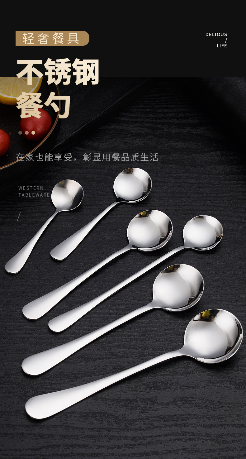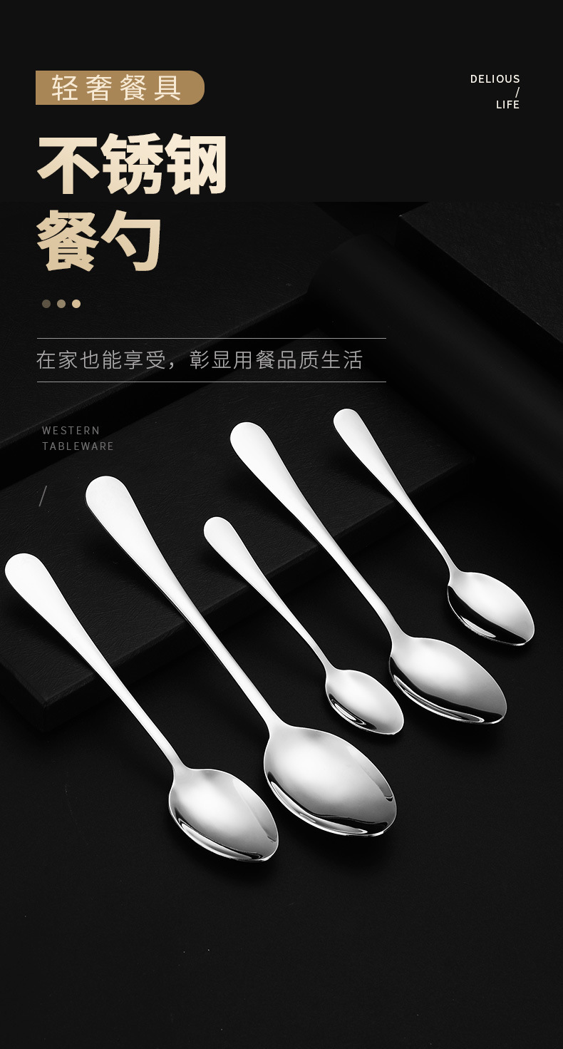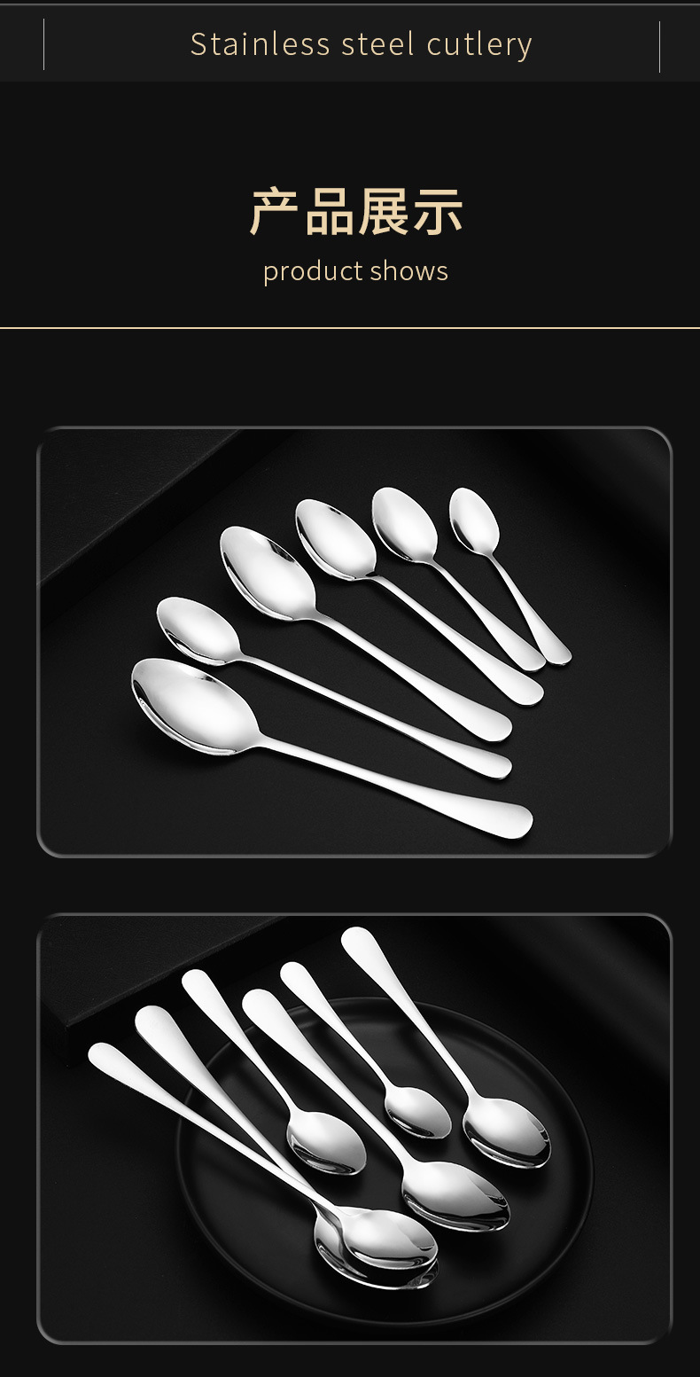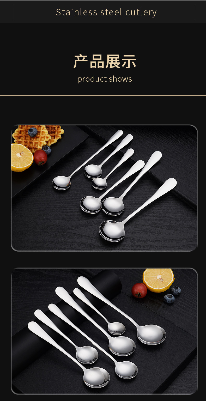 304不锈钢勺子家用吃饭勺调羹长柄搅拌勺咖啡勺甜品勺叉圆勺餐具
