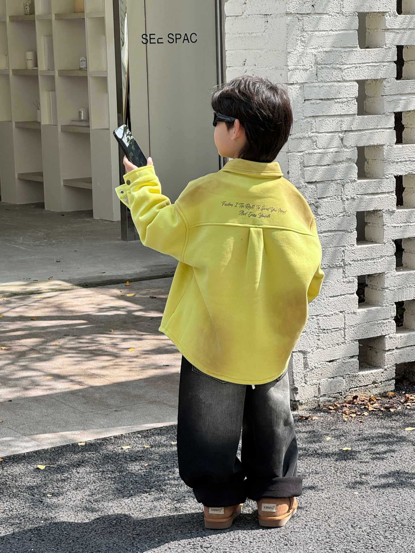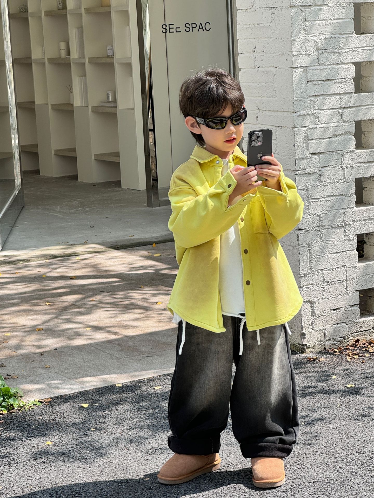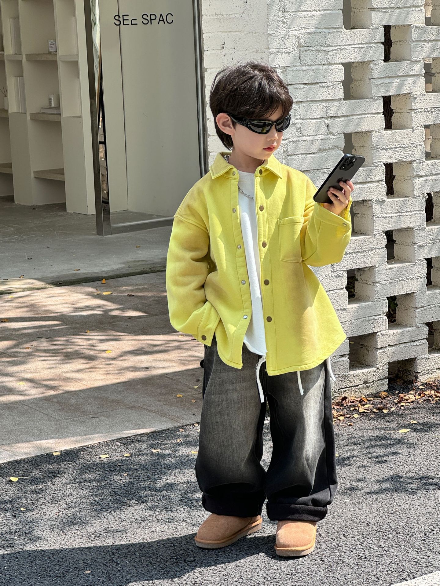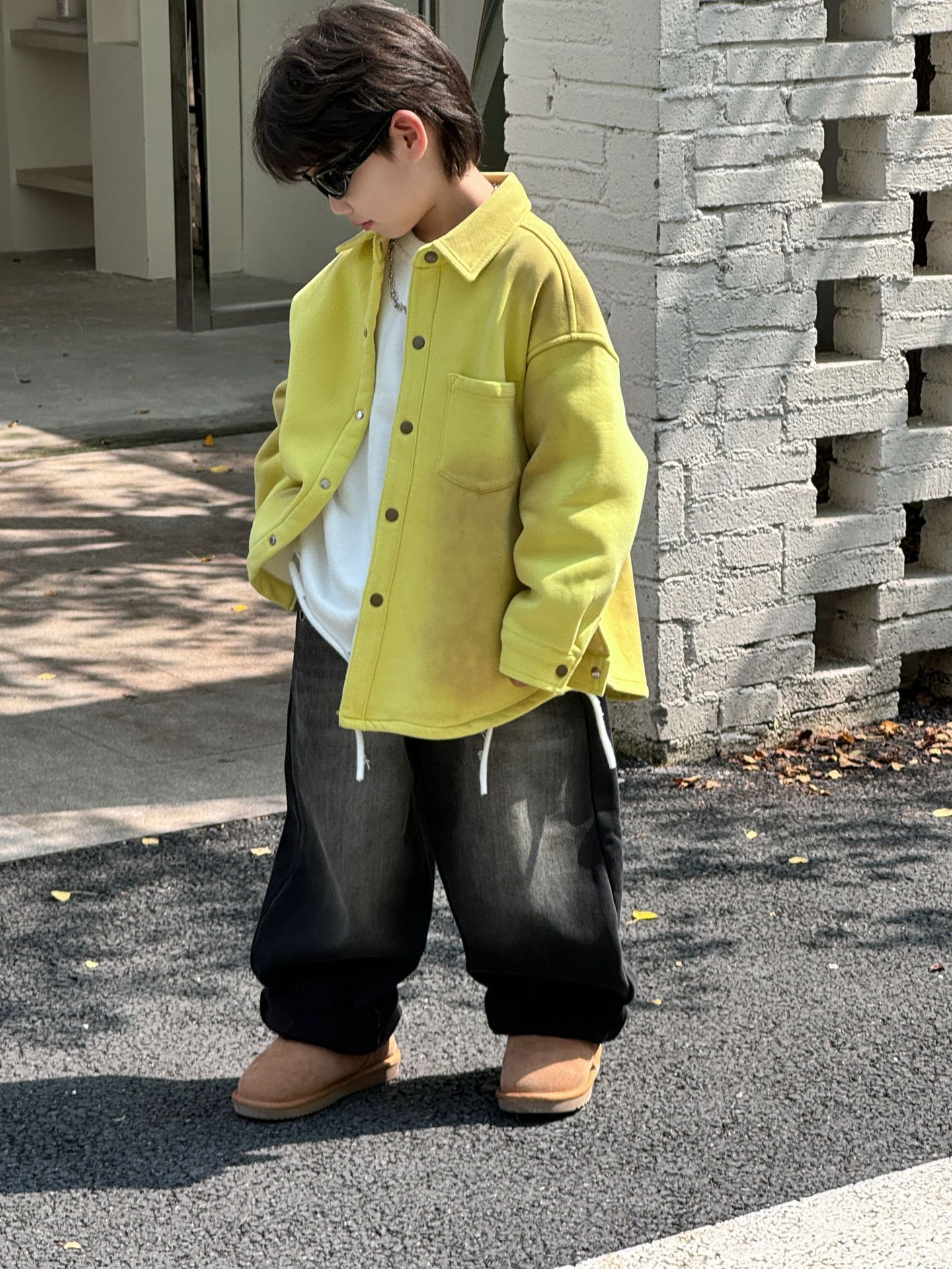 泰如2024冬季新款韩版男童百搭亮色洋气加绒加厚衬衫儿童上衣潮