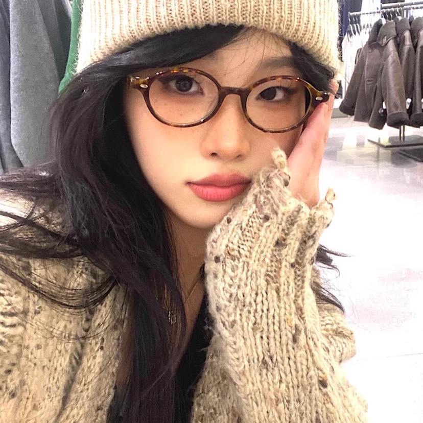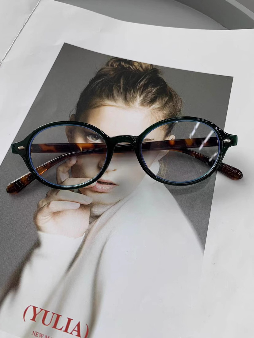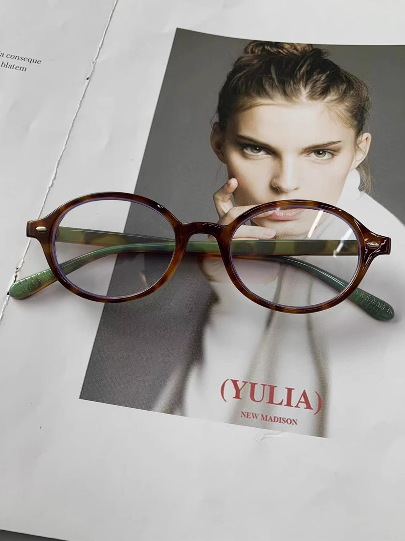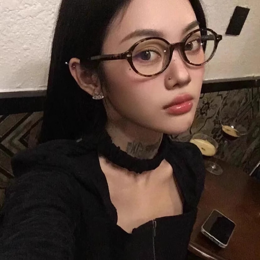 2024新款书呆子椭圆眼镜框防蓝光韩版潮流豹纹黑框复古文艺平光镜