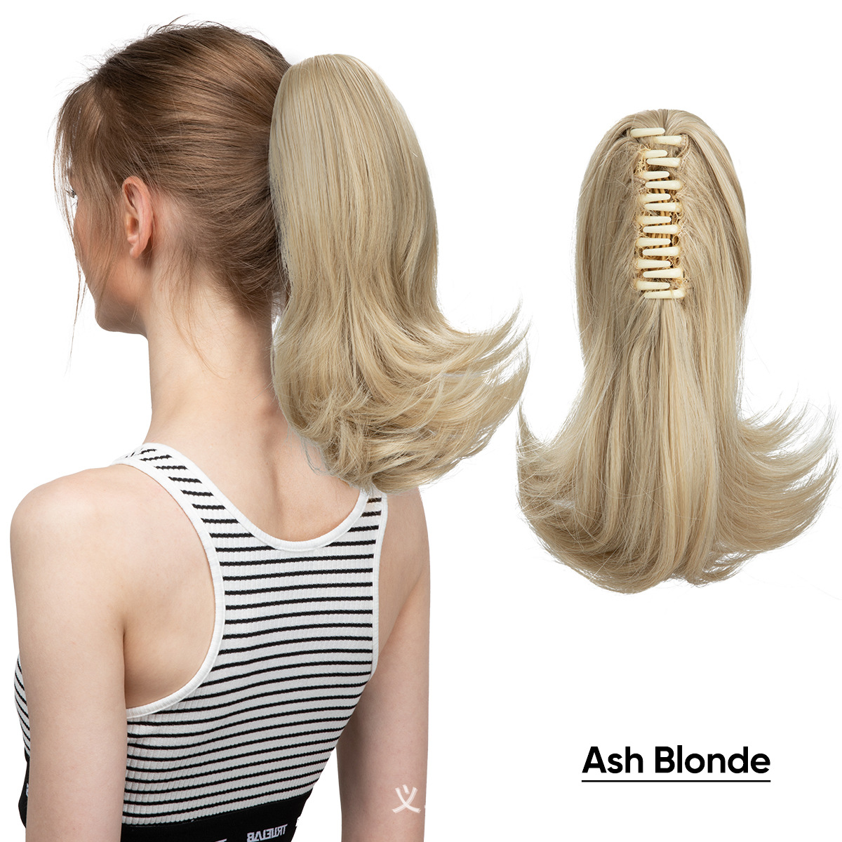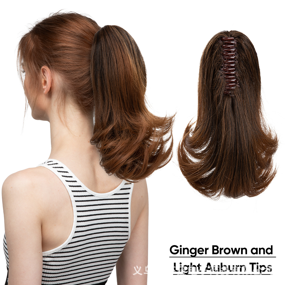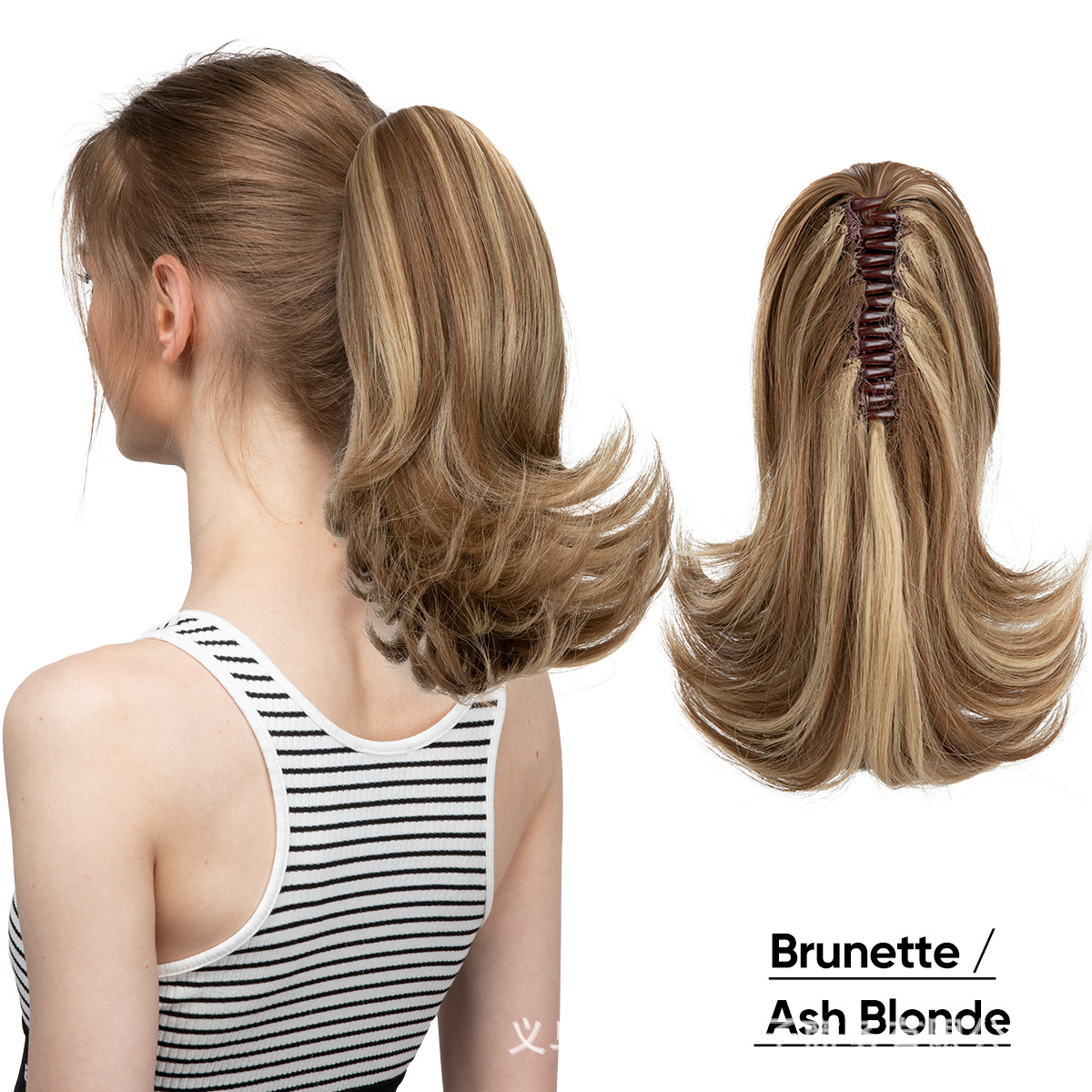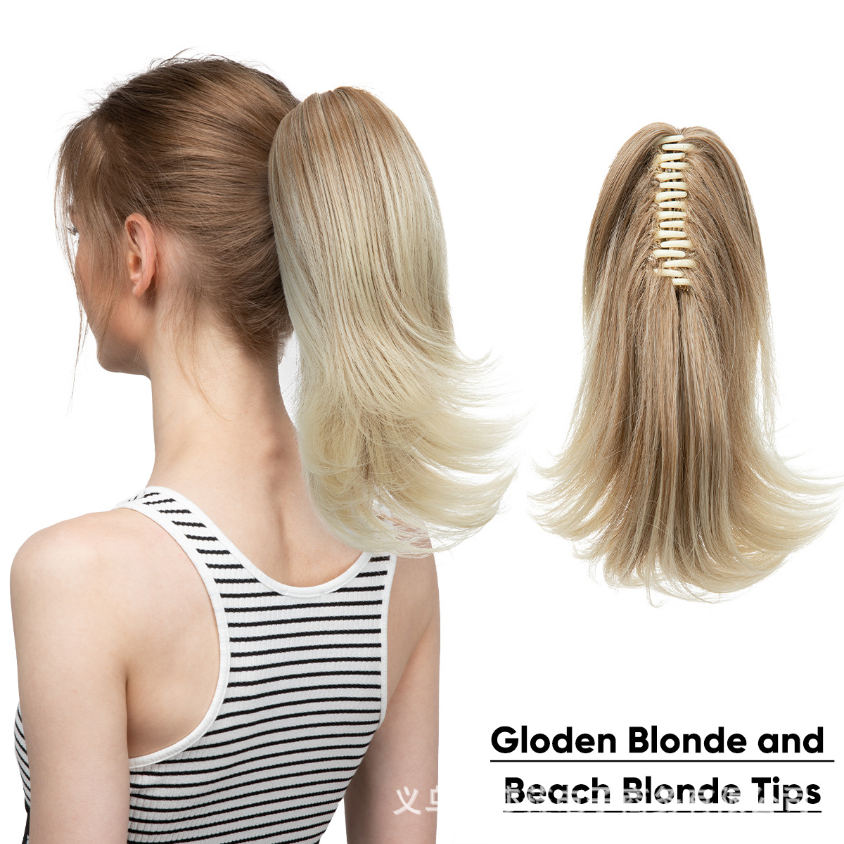 跨境欧美高温丝假发女抓夹短发马尾哑光微卷化纤自然假发辫hair