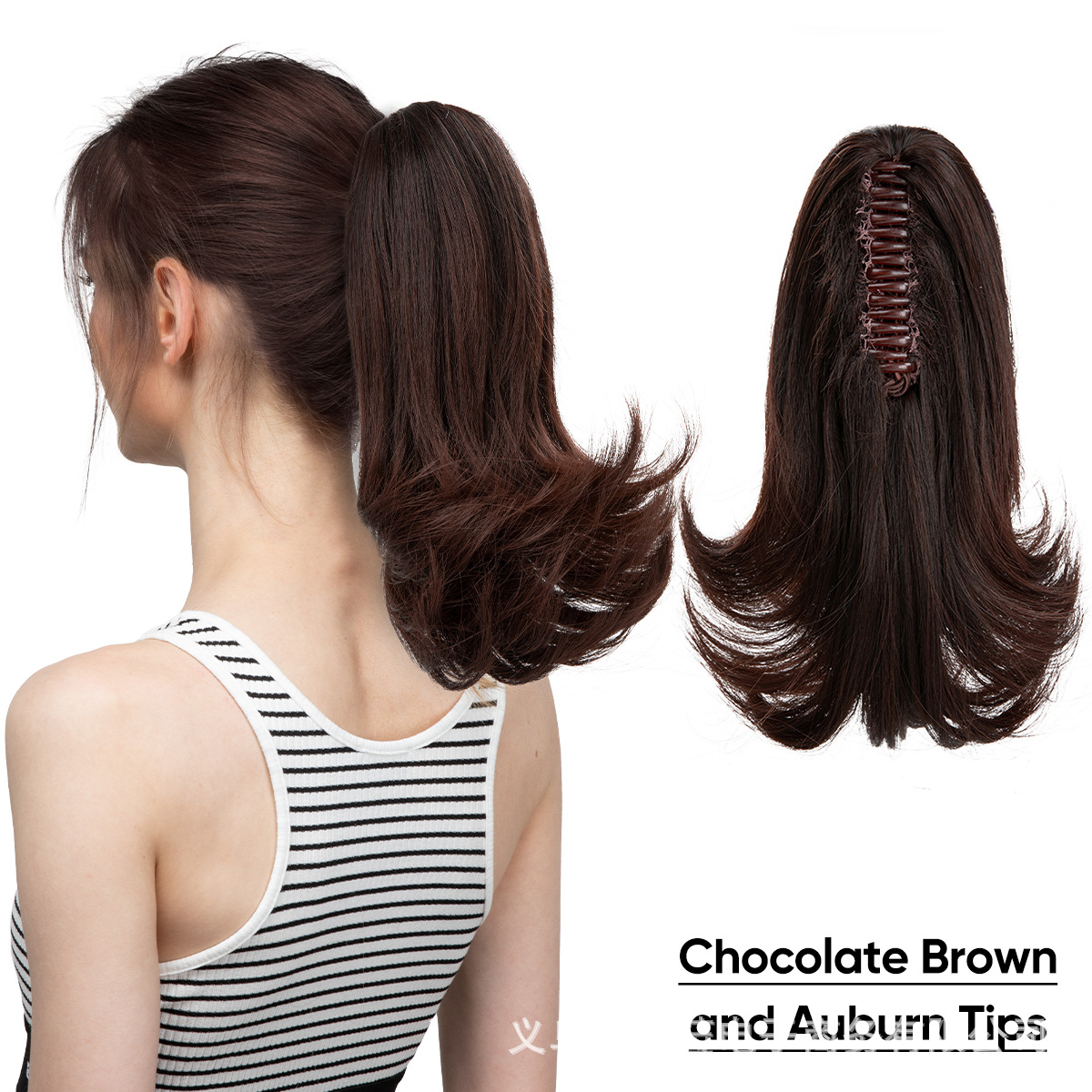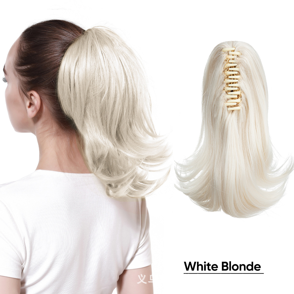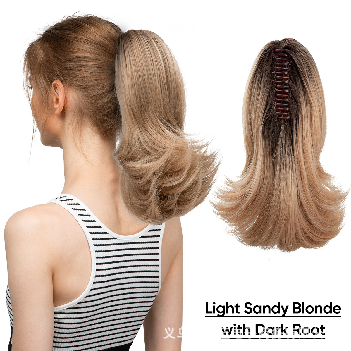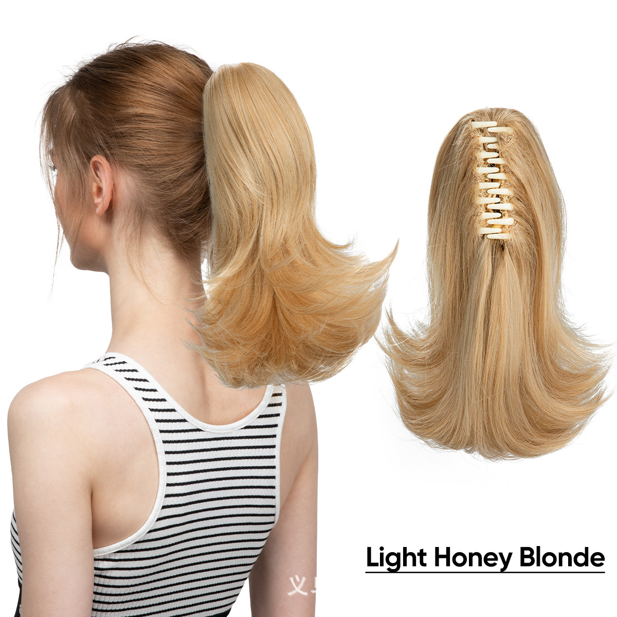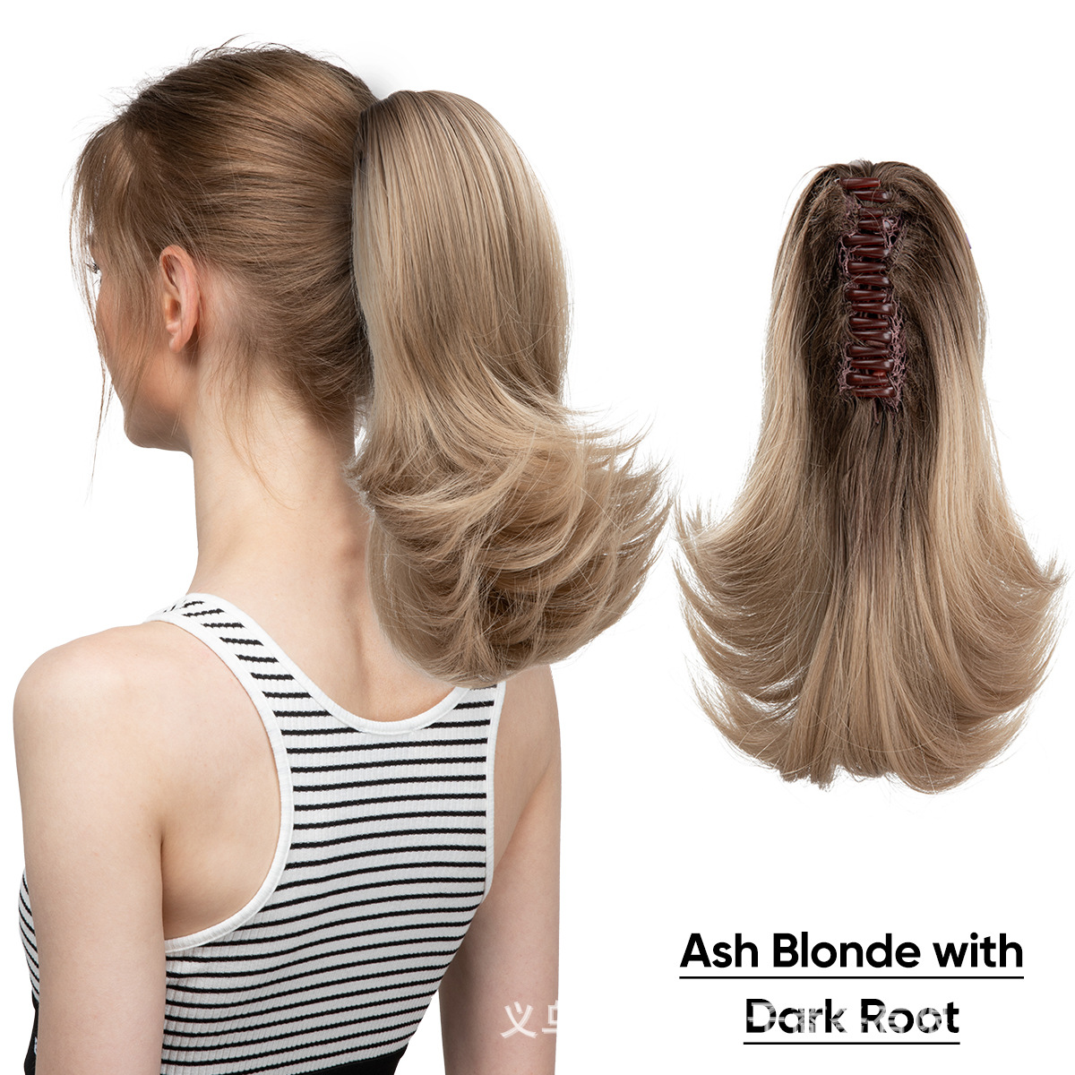跨境欧美高温丝假发女抓夹短发马尾哑光微卷化纤自然假发辫hair