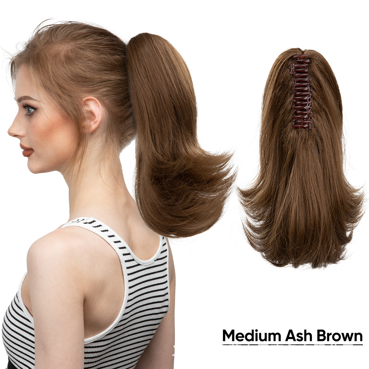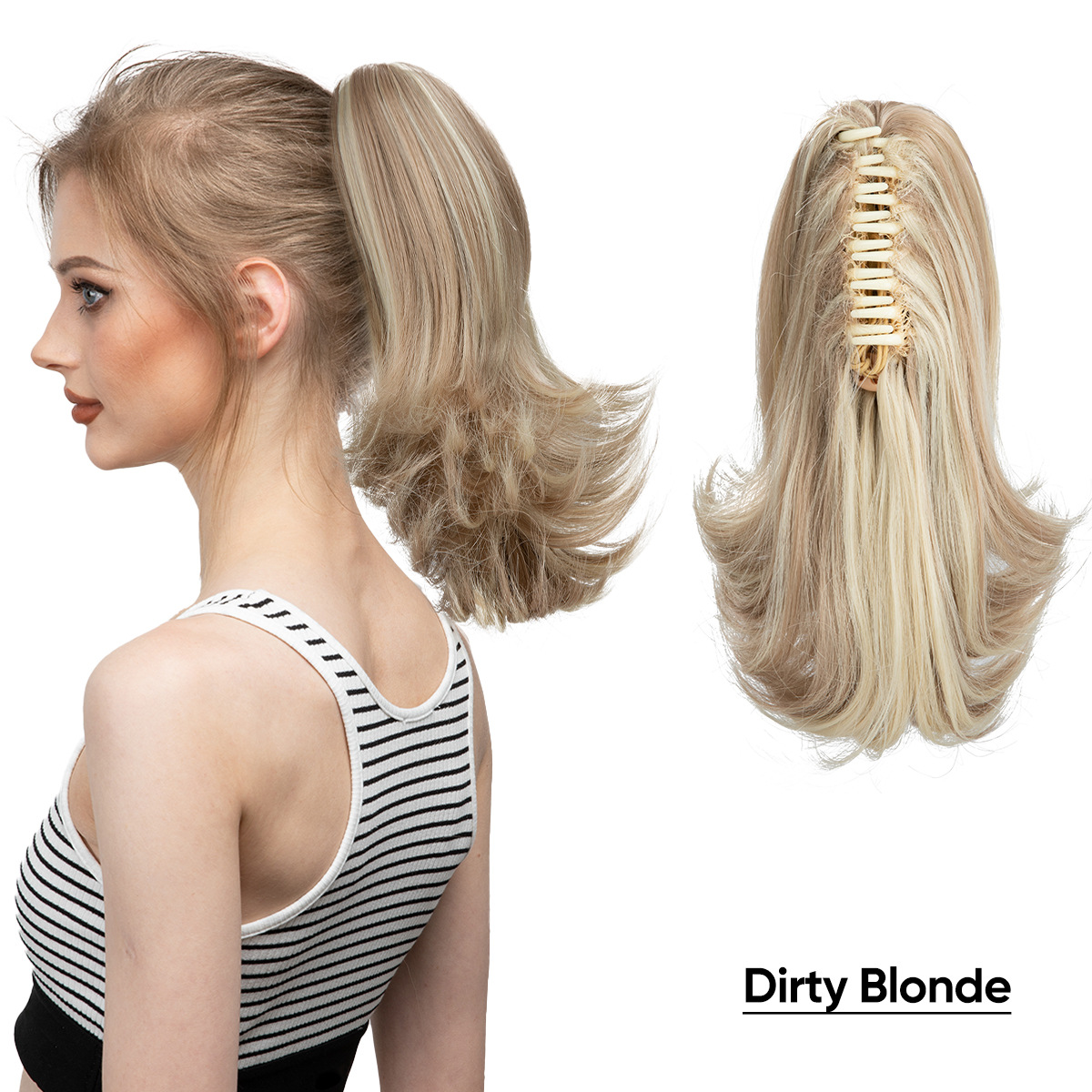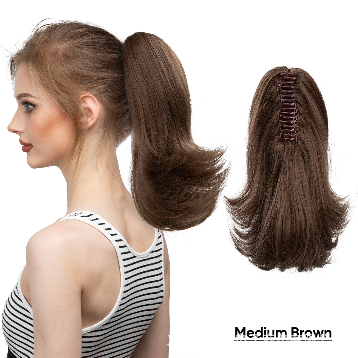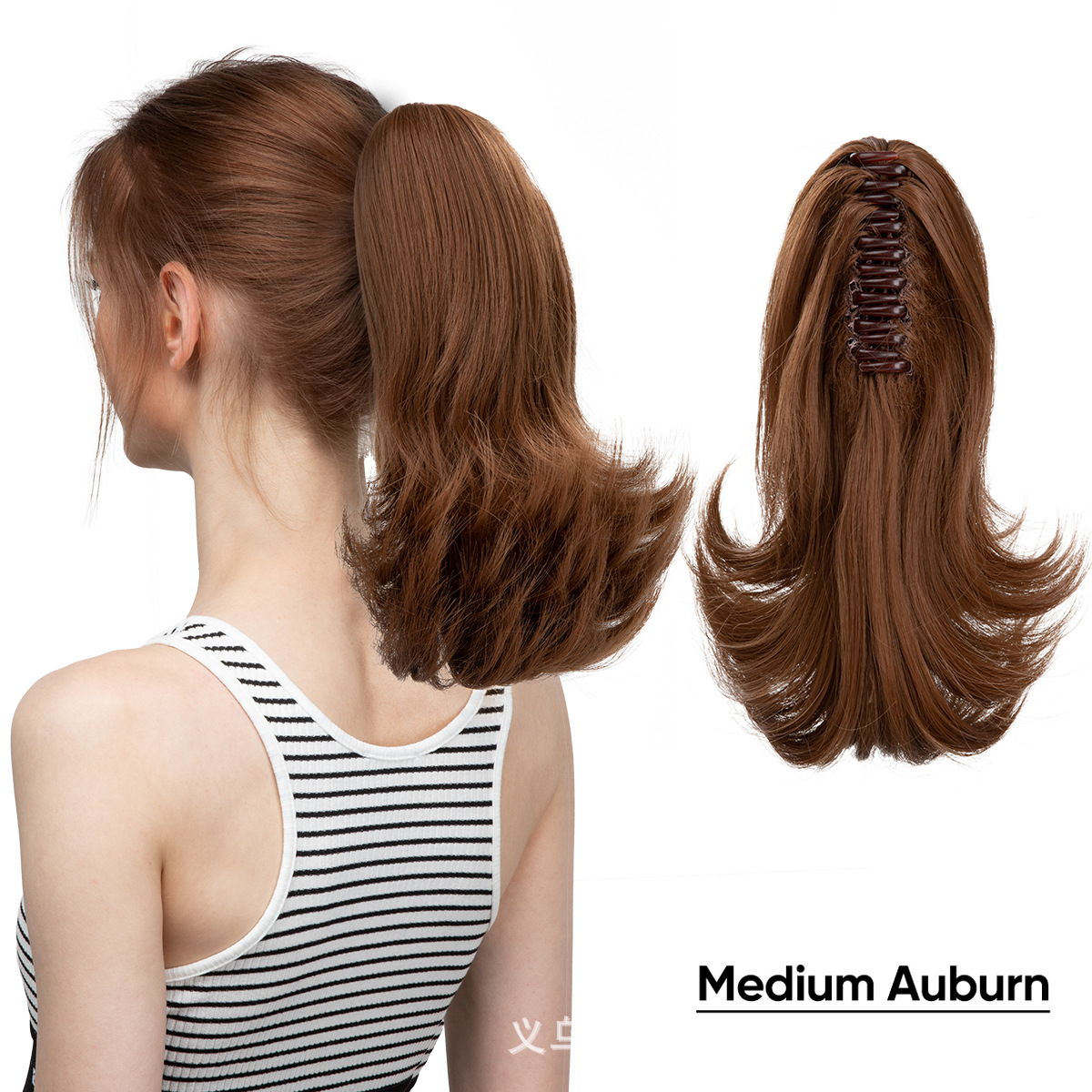 跨境欧美高温丝假发女抓夹短发马尾哑光微卷化纤自然假发辫hair