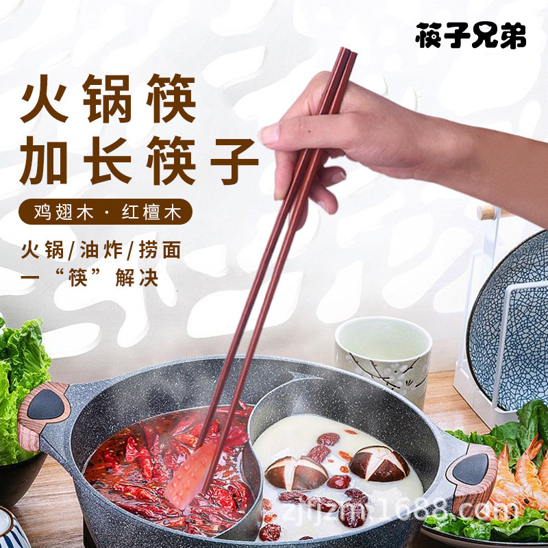火锅筷子加长油炸捞面筷子家用鸡翅木筷子实木公筷刻字商用长筷子