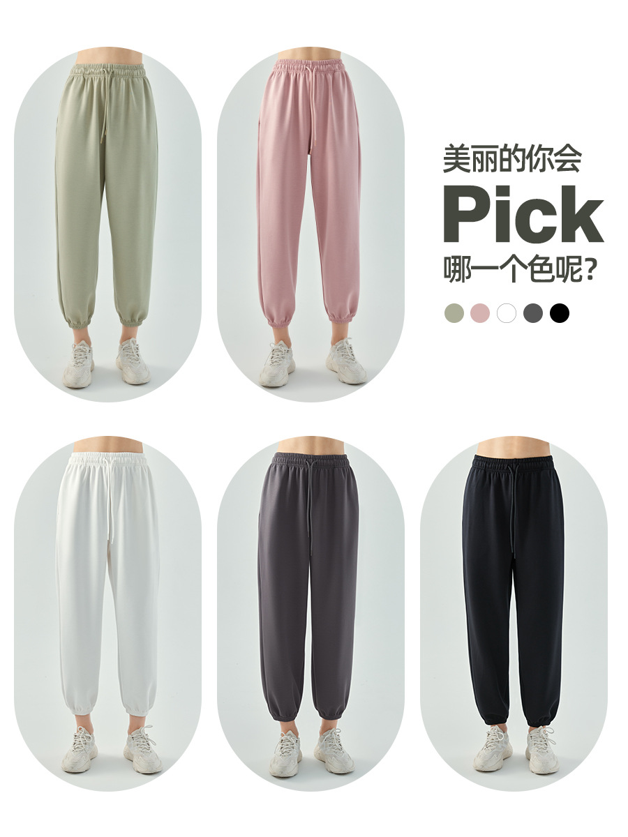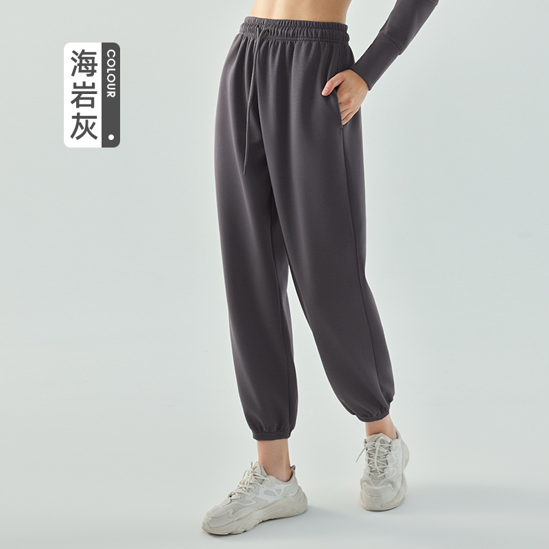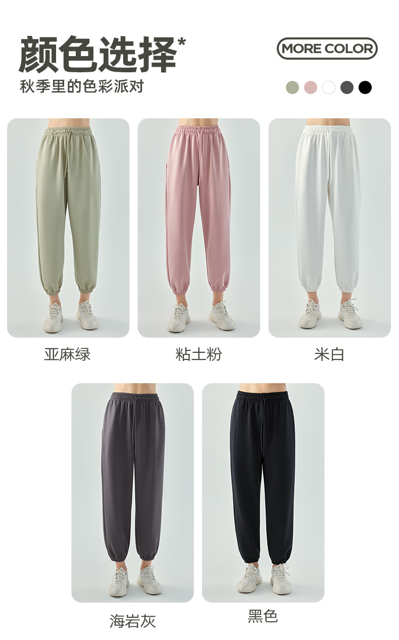 大树运动裤女软糯空气层束脚跑步裤锻炼宽松休闲阔腿纯色健身长裤