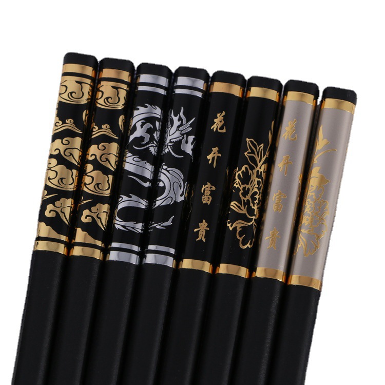 鼎洪厂家批发家用商用合金筷子 防滑防霉优质10双套装浮雕合金筷
