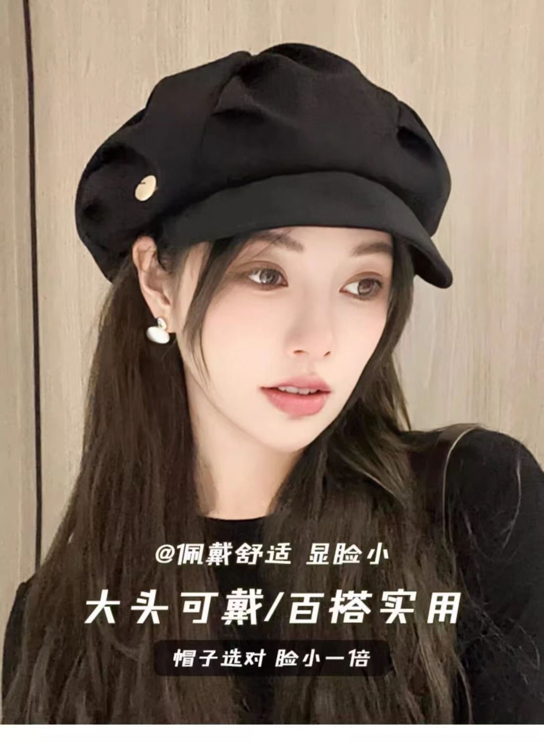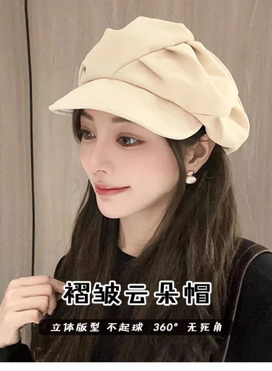 秋冬新款云朵帽时尚百搭八角女士帽大头围韩版气质显脸贝雷帽女
