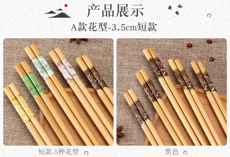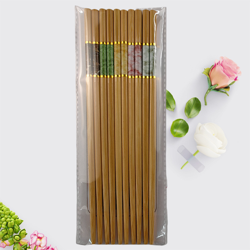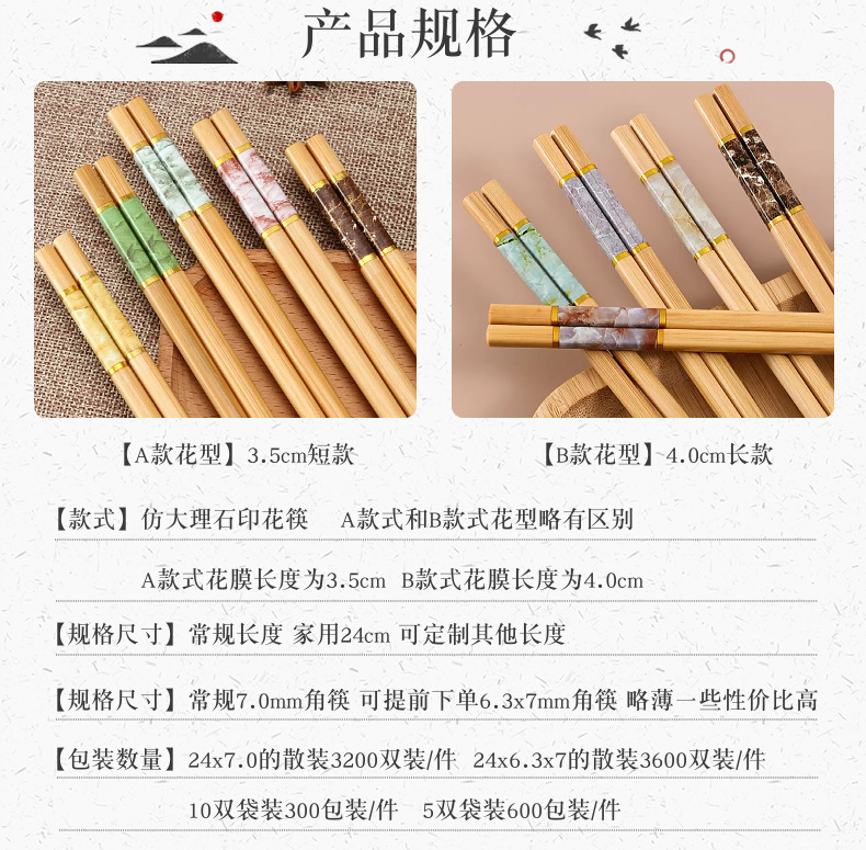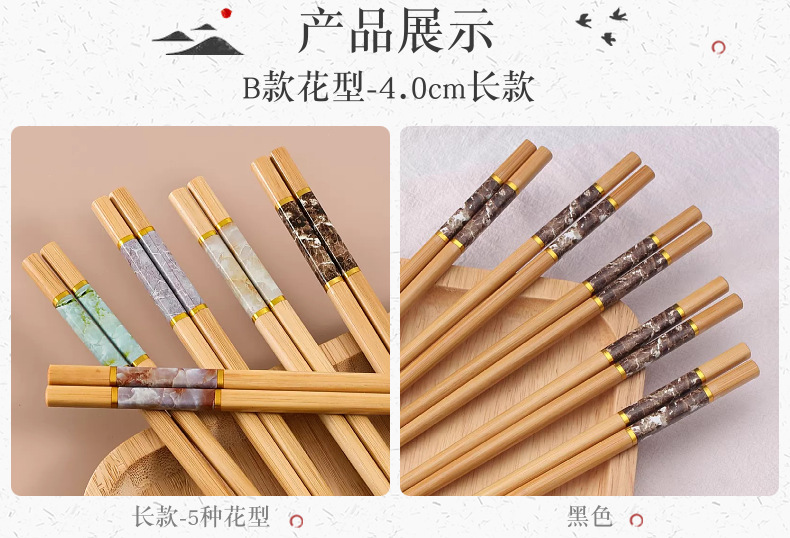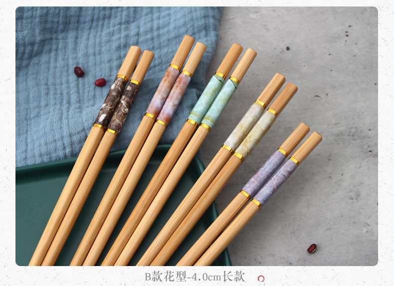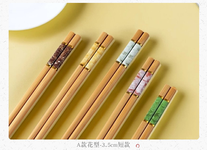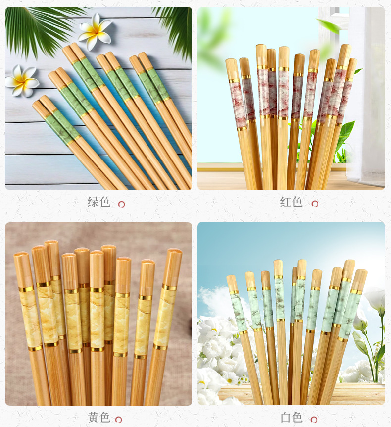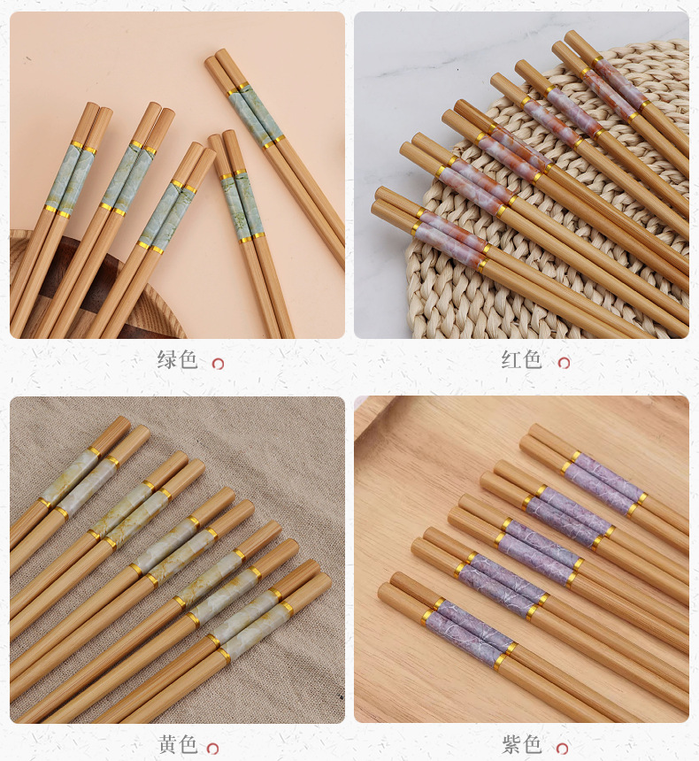 大理石印花筷防霉防滑天然楠竹筷子家用竹筷五色家用筷厂家批发
