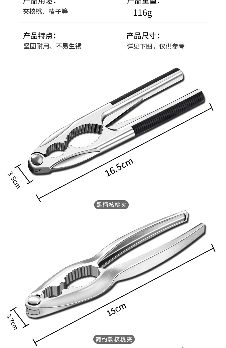 锌合金干果夹松子夹家用核桃夹子榛子坚果小山核桃实心锌合金钳子