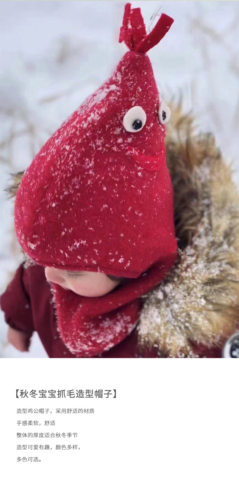 婴幼童公鸡造型帽子2024丹麦春秋新款柔软贴肤男女宝宝保暖包头帽