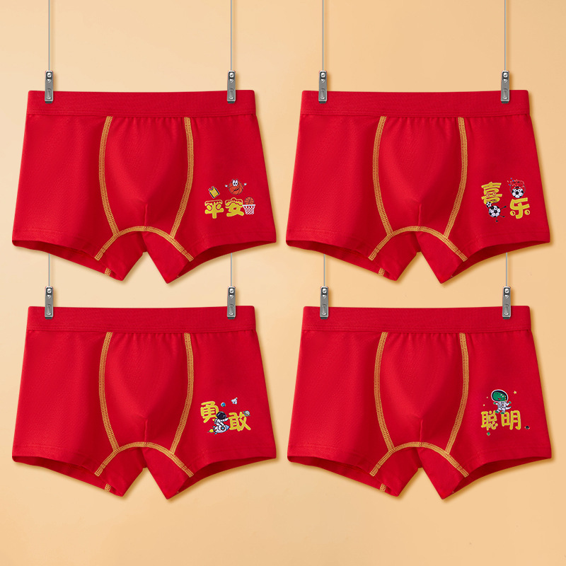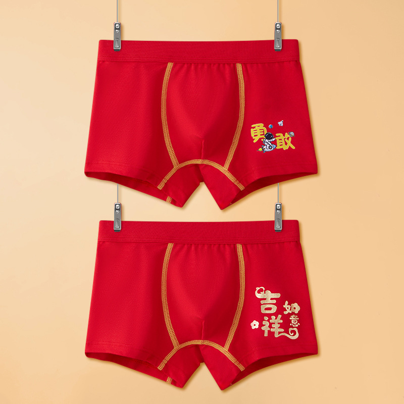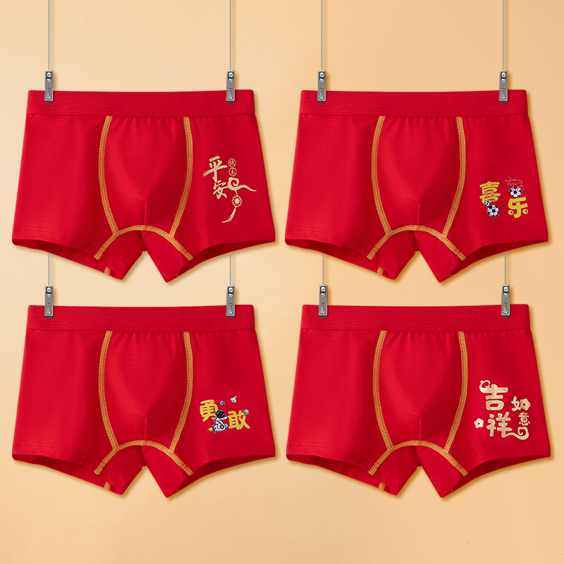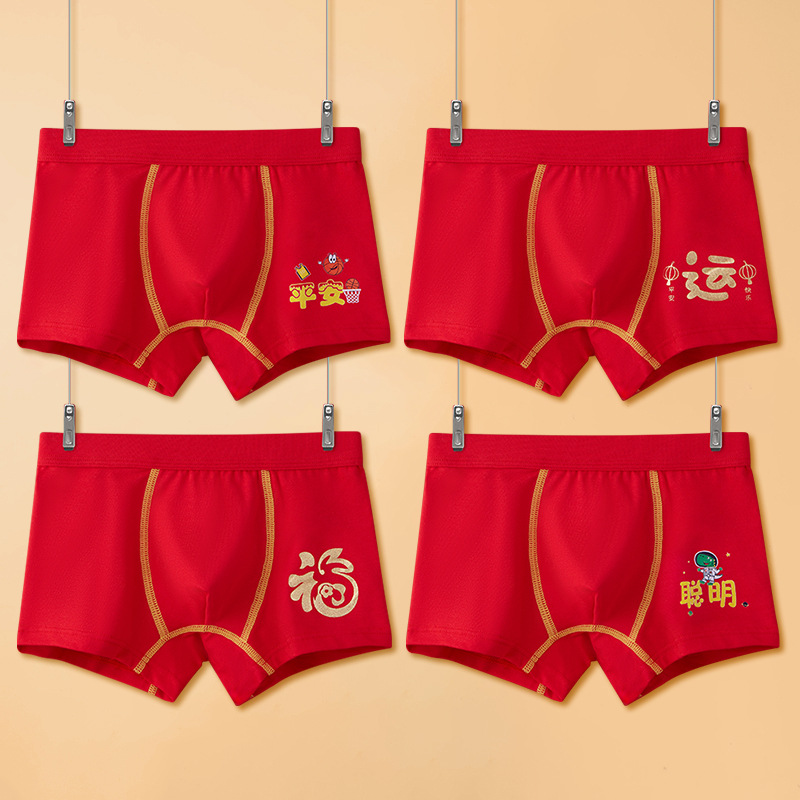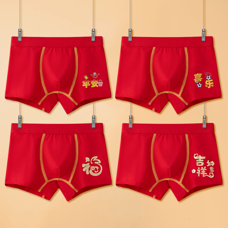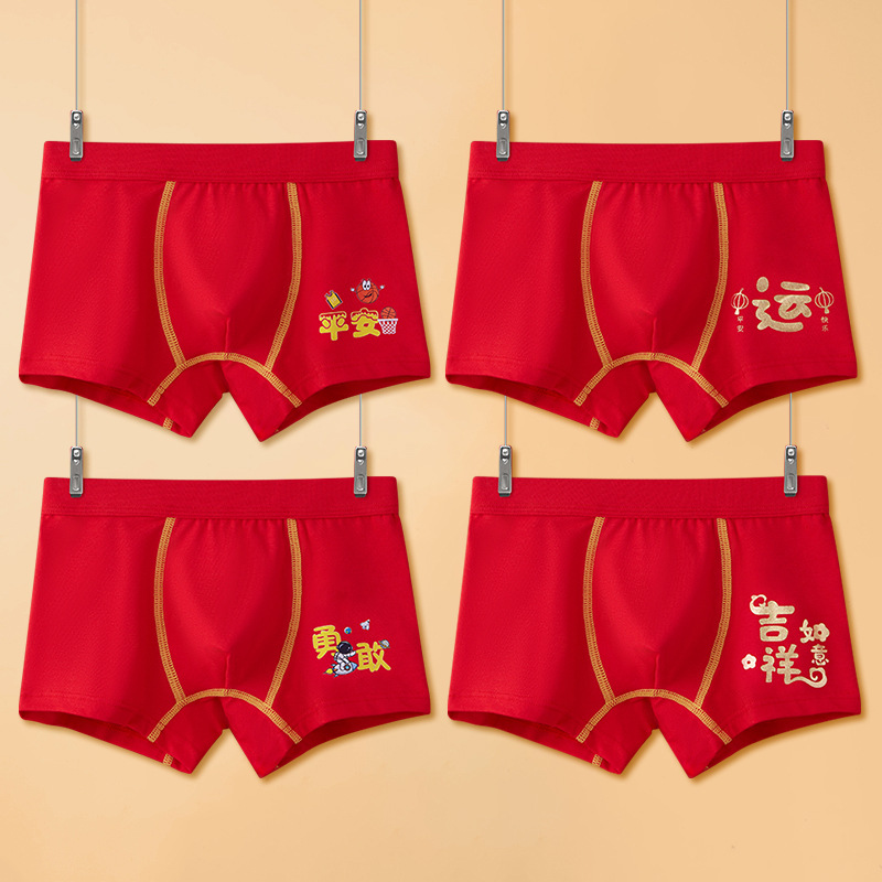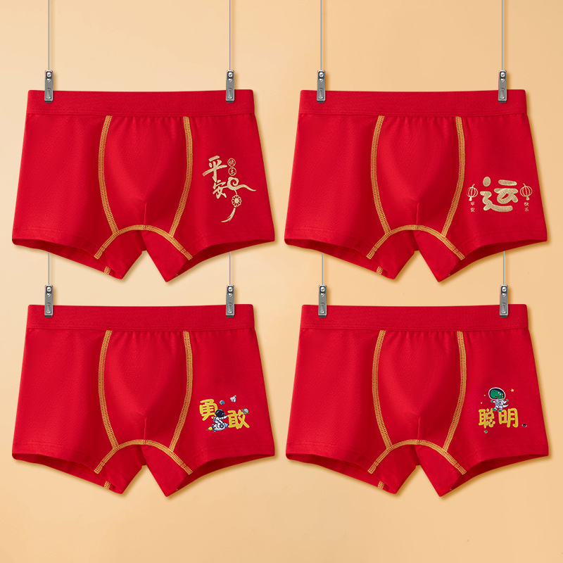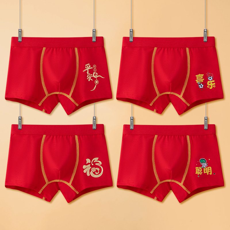 儿童红色内裤男童本命年龙年平角裤纯棉中大童宝宝男生短裤过年红