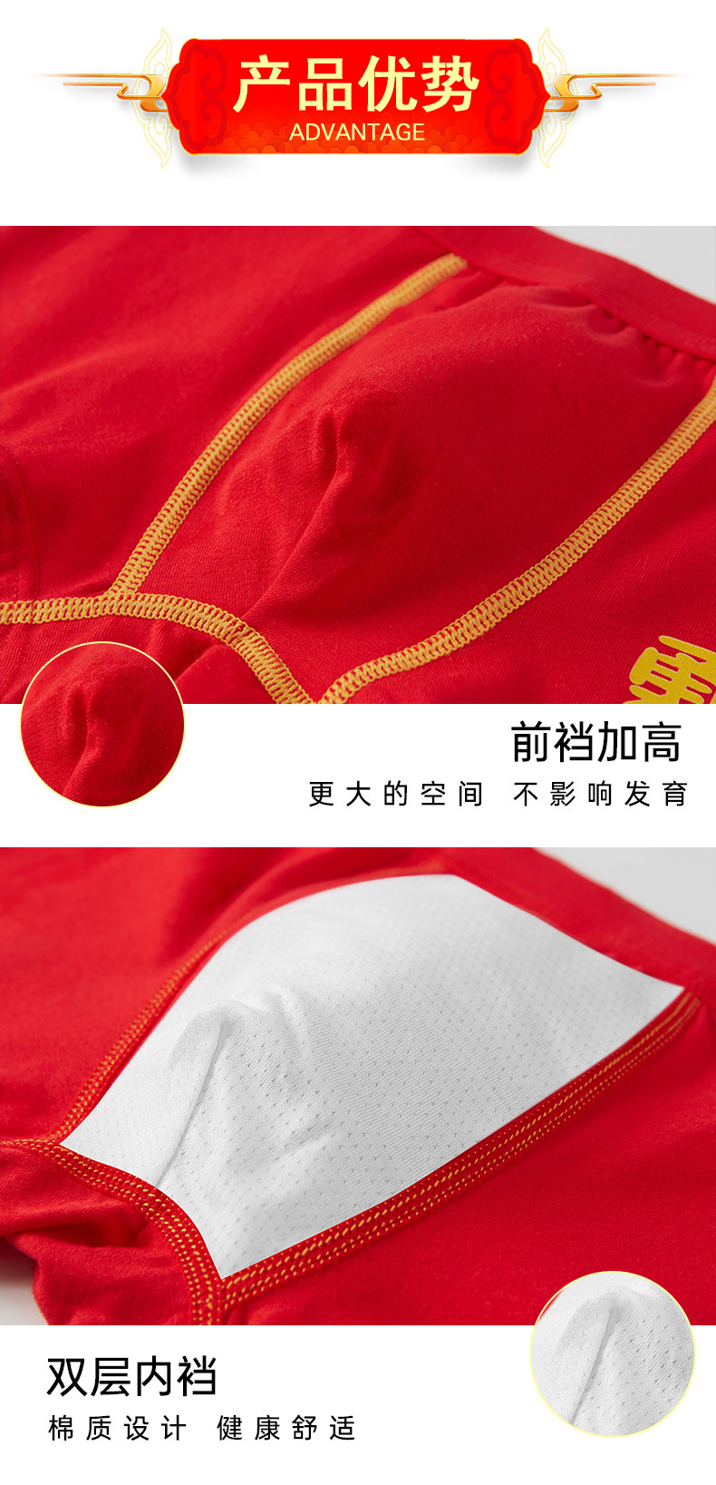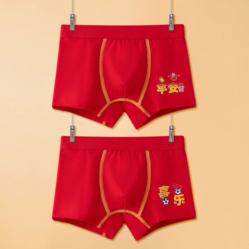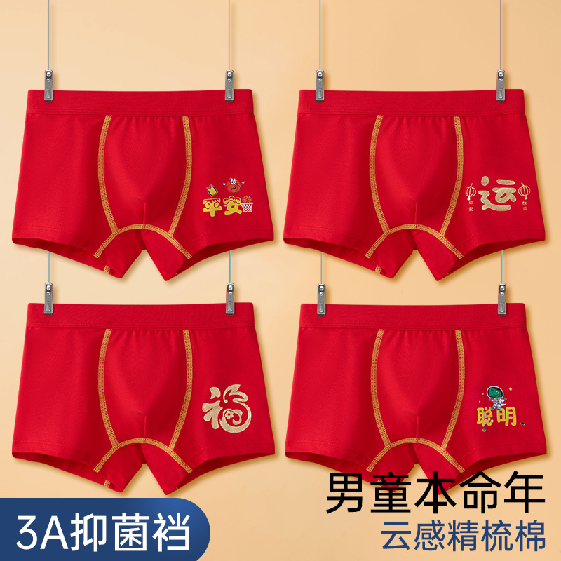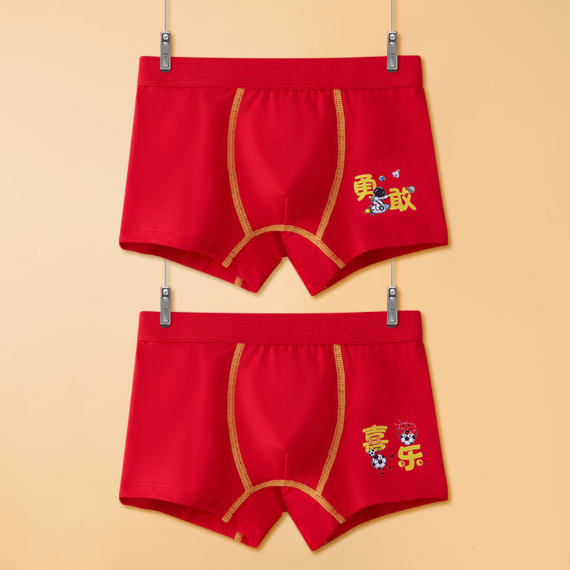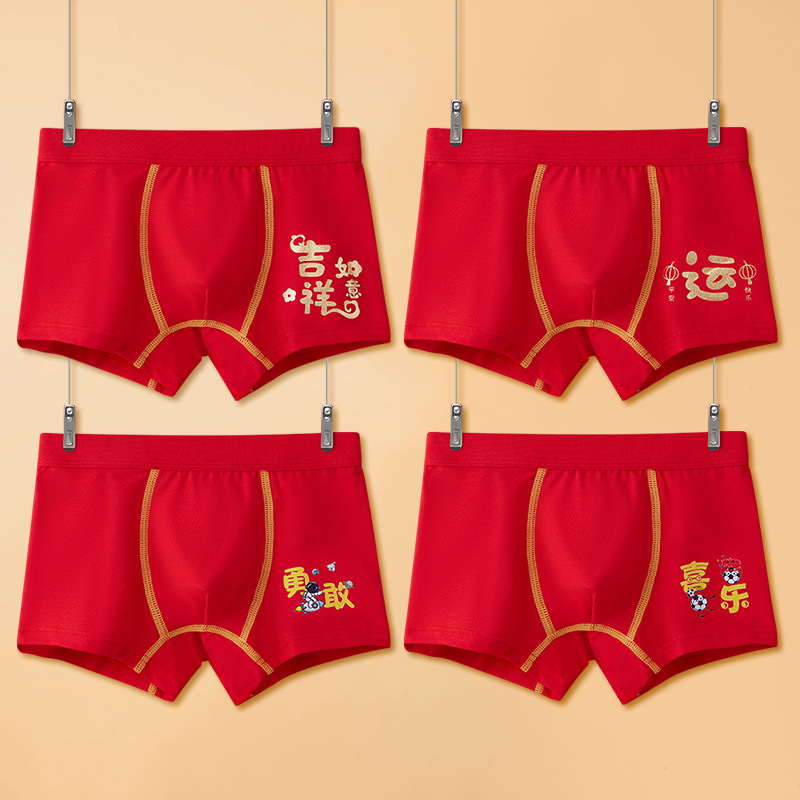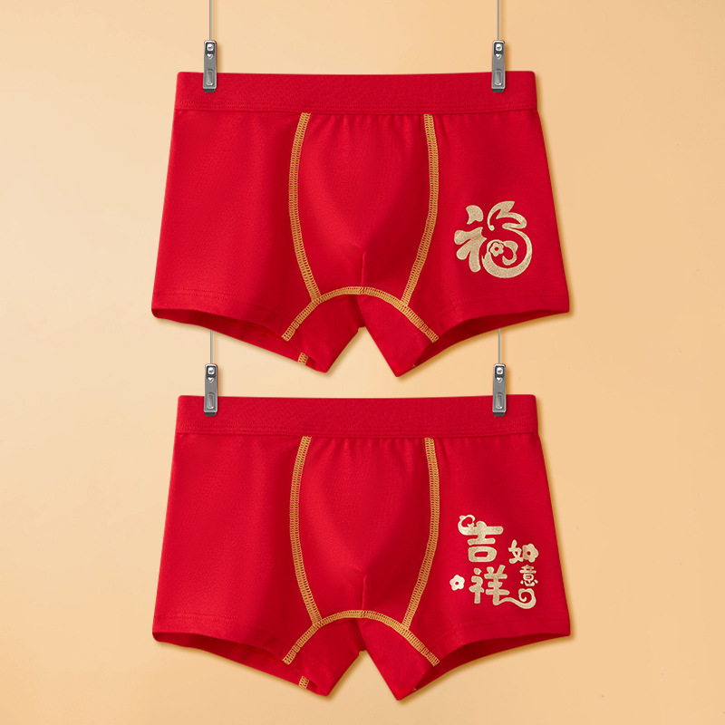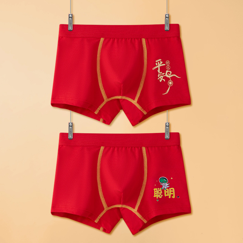 儿童红色内裤男童本命年龙年平角裤纯棉中大童宝宝男生短裤过年红