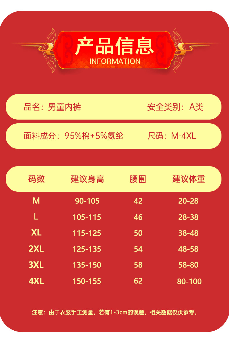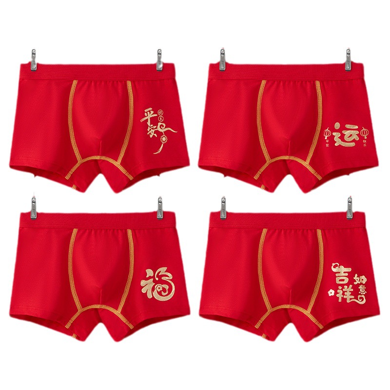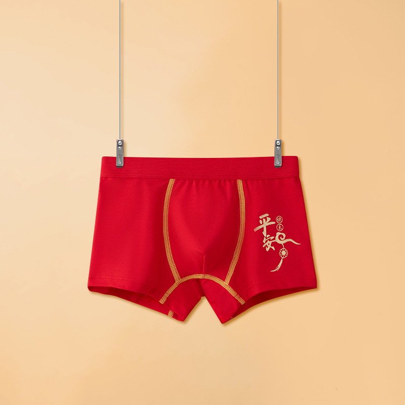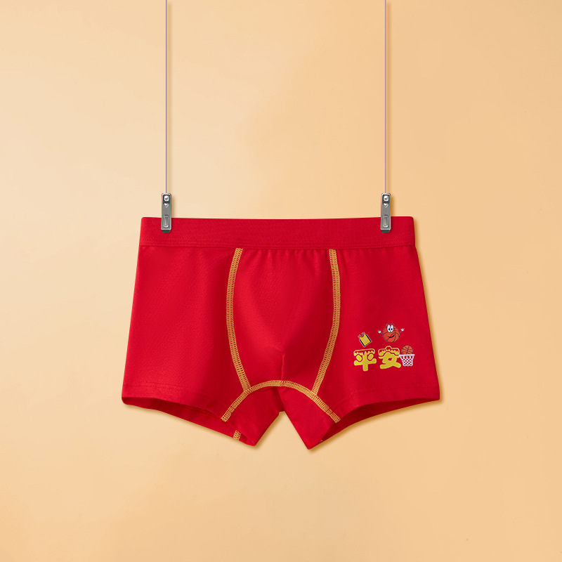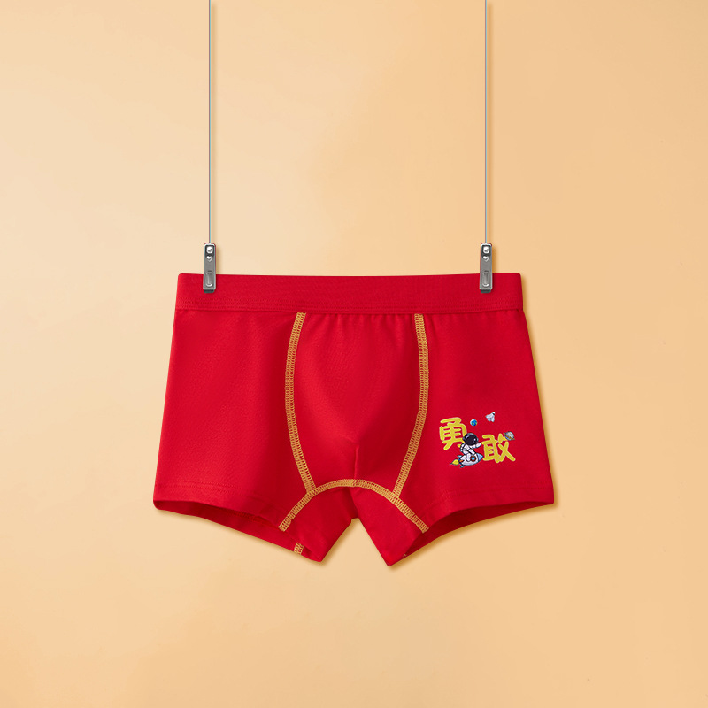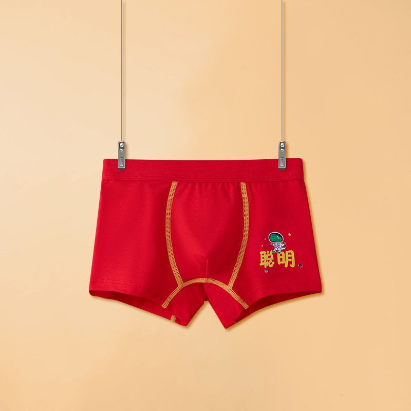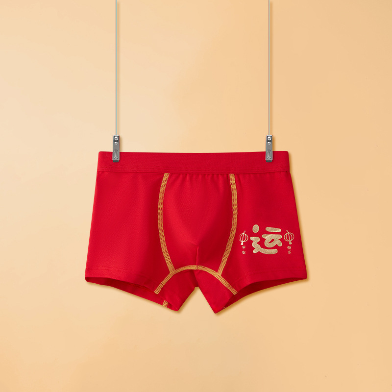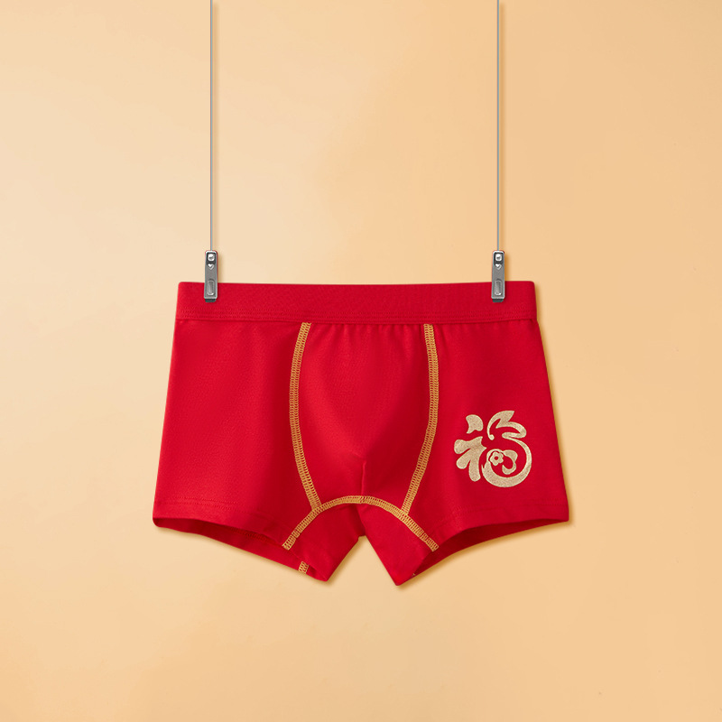 儿童红色内裤男童本命年龙年平角裤纯棉中大童宝宝男生短裤过年红