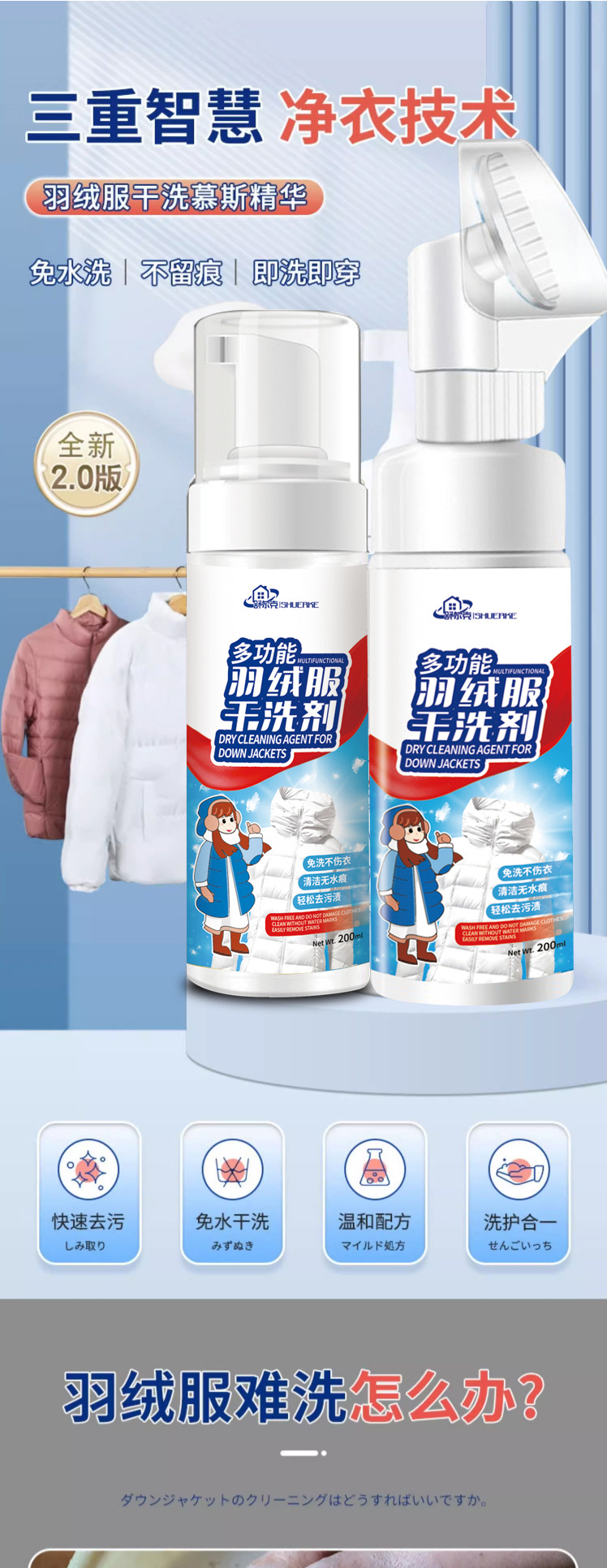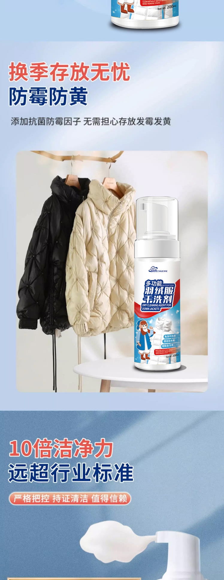 抖音同款羽绒服干洗剂泡沫型免洗多功能清洁剂羽绒服膨松剂清洗剂
