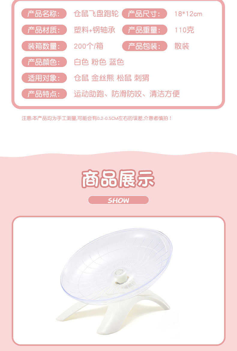 仓鼠跑轮飞碟跑盘金丝熊静音飞盘跑轮刺猬运动玩具转轮用品批发