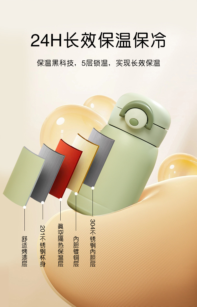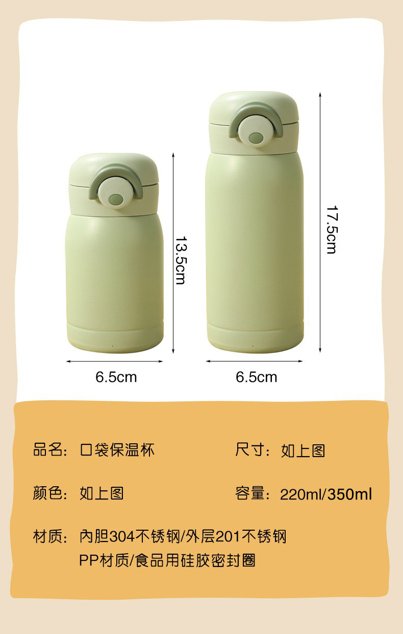 高颜值304不锈钢保温杯简约迷你口袋杯弹跳杯便携儿童饮水杯批发