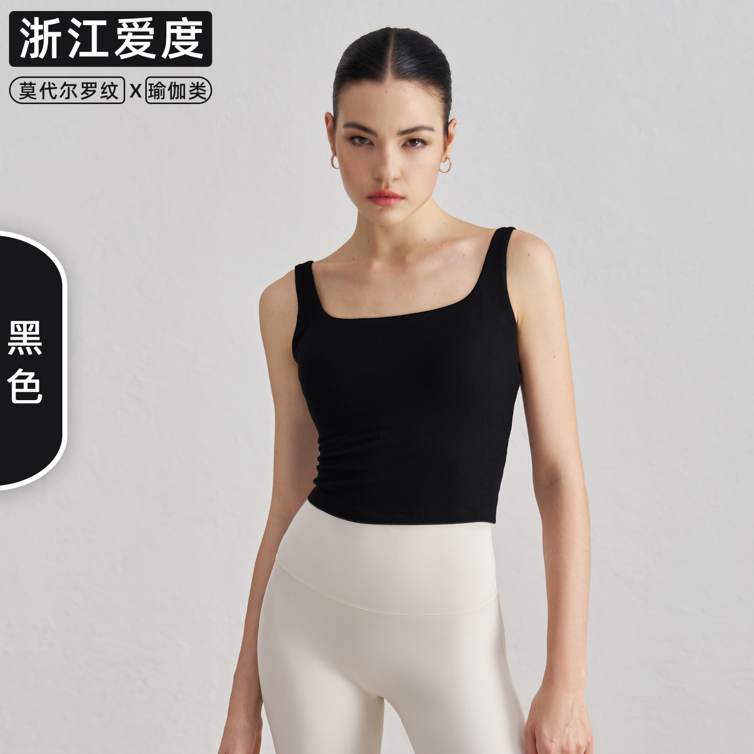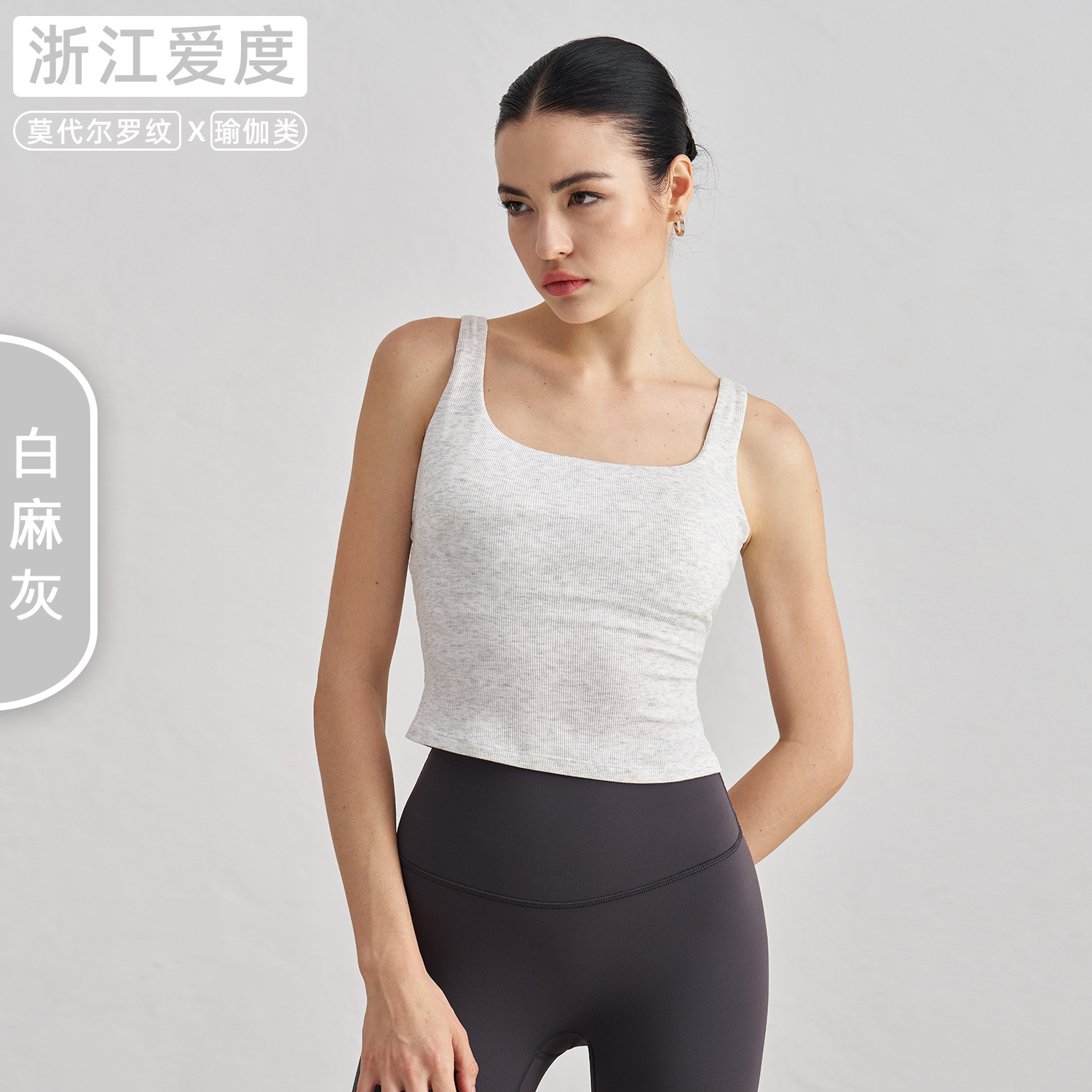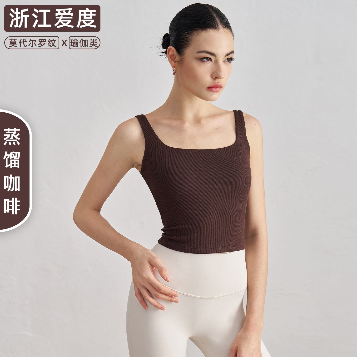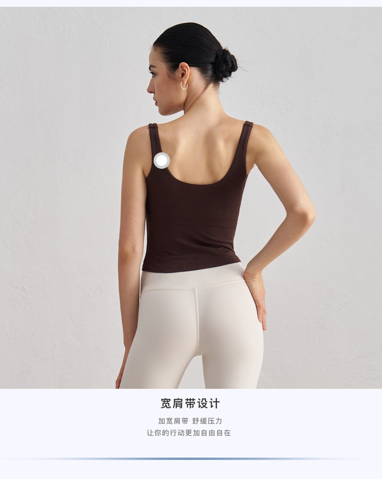 莫代尔罗纹裸感瑜伽背心女宽肩美背运动内衣带胸垫长款健身文胸秋