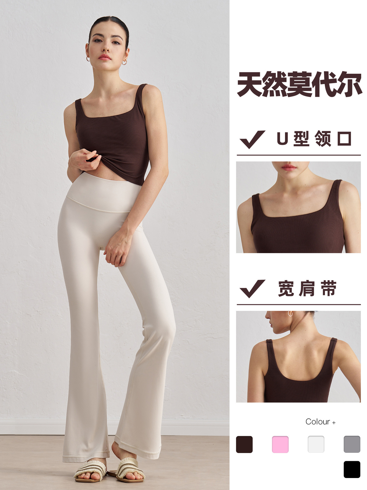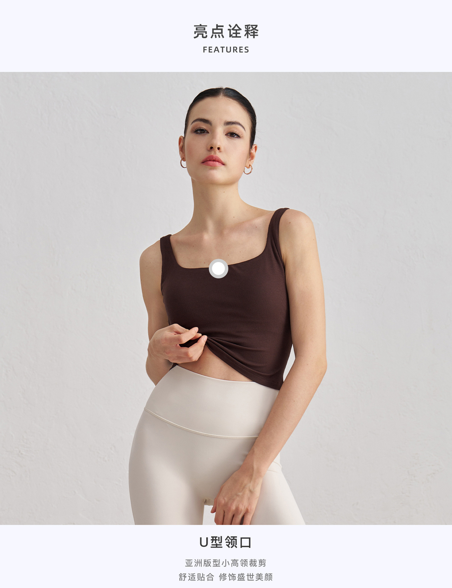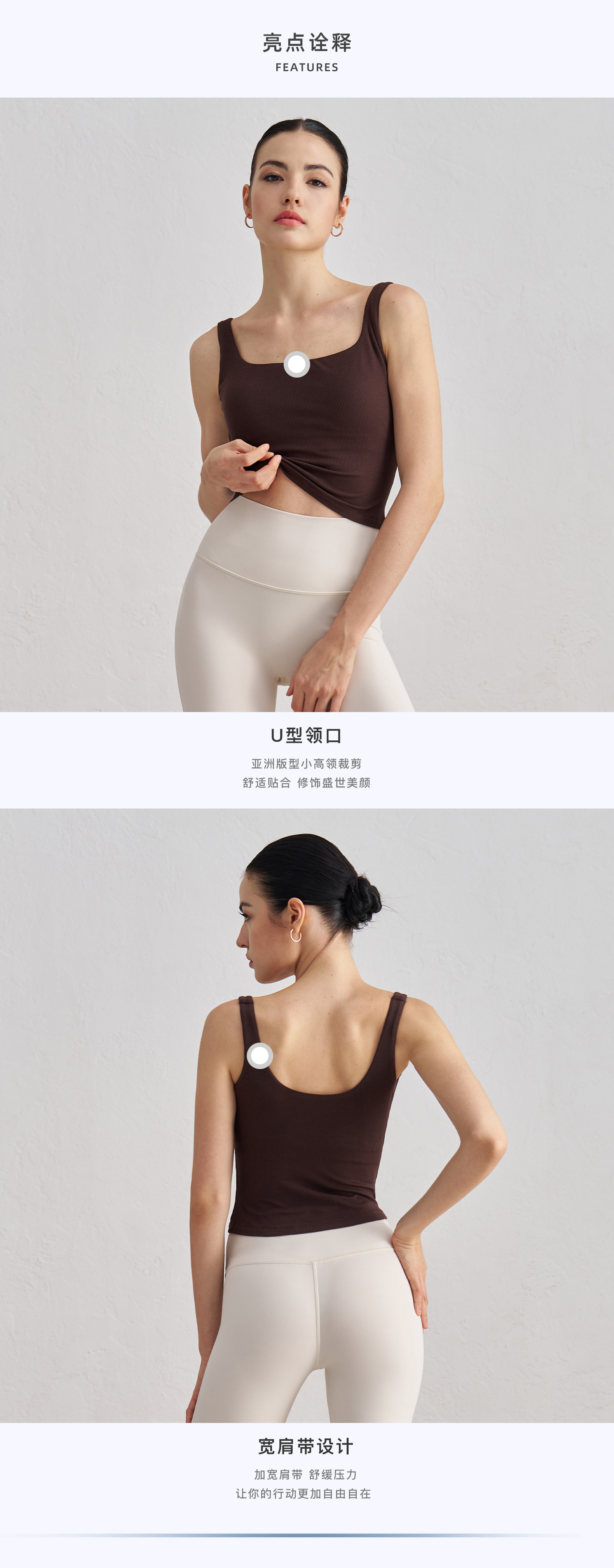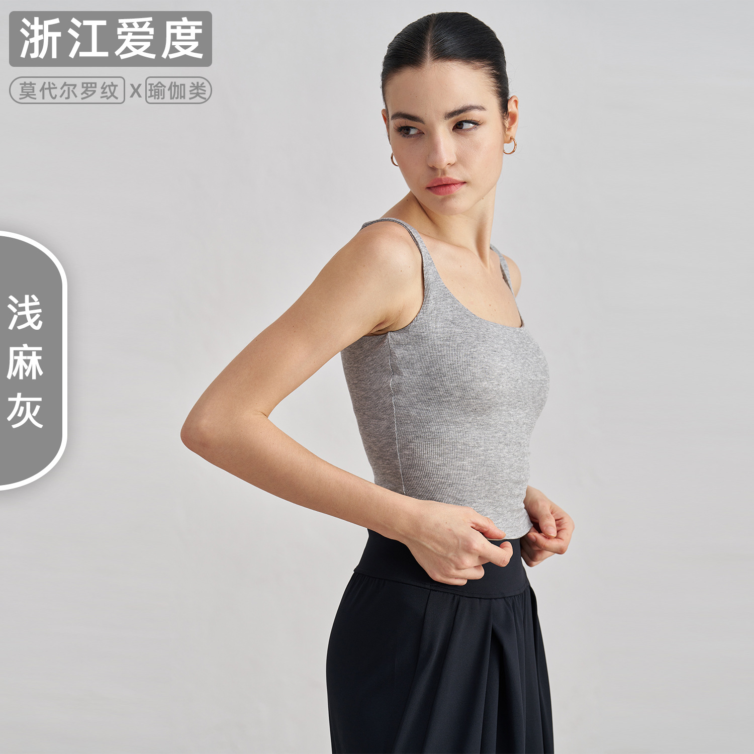 莫代尔罗纹裸感瑜伽背心女宽肩美背运动内衣带胸垫长款健身文胸秋