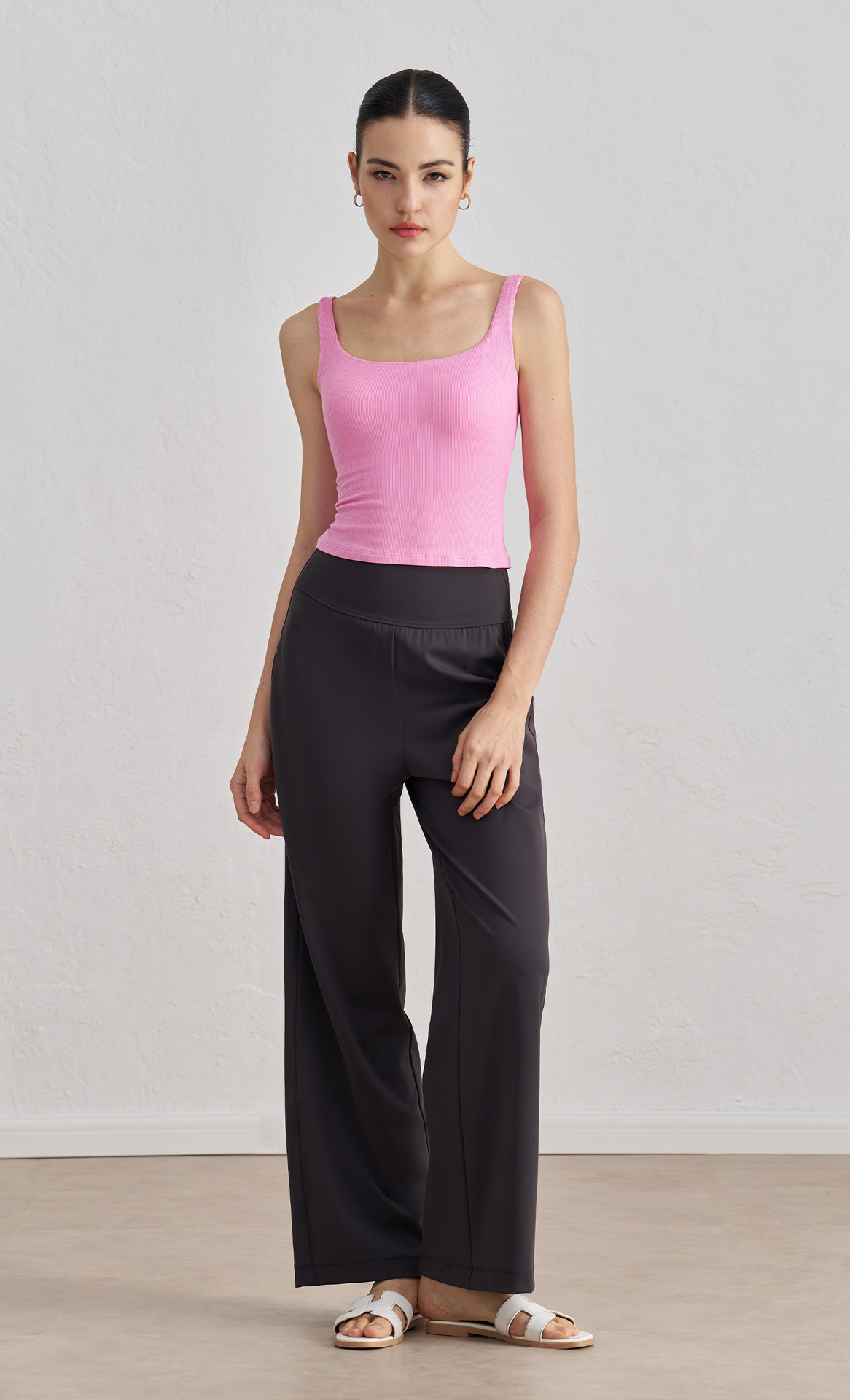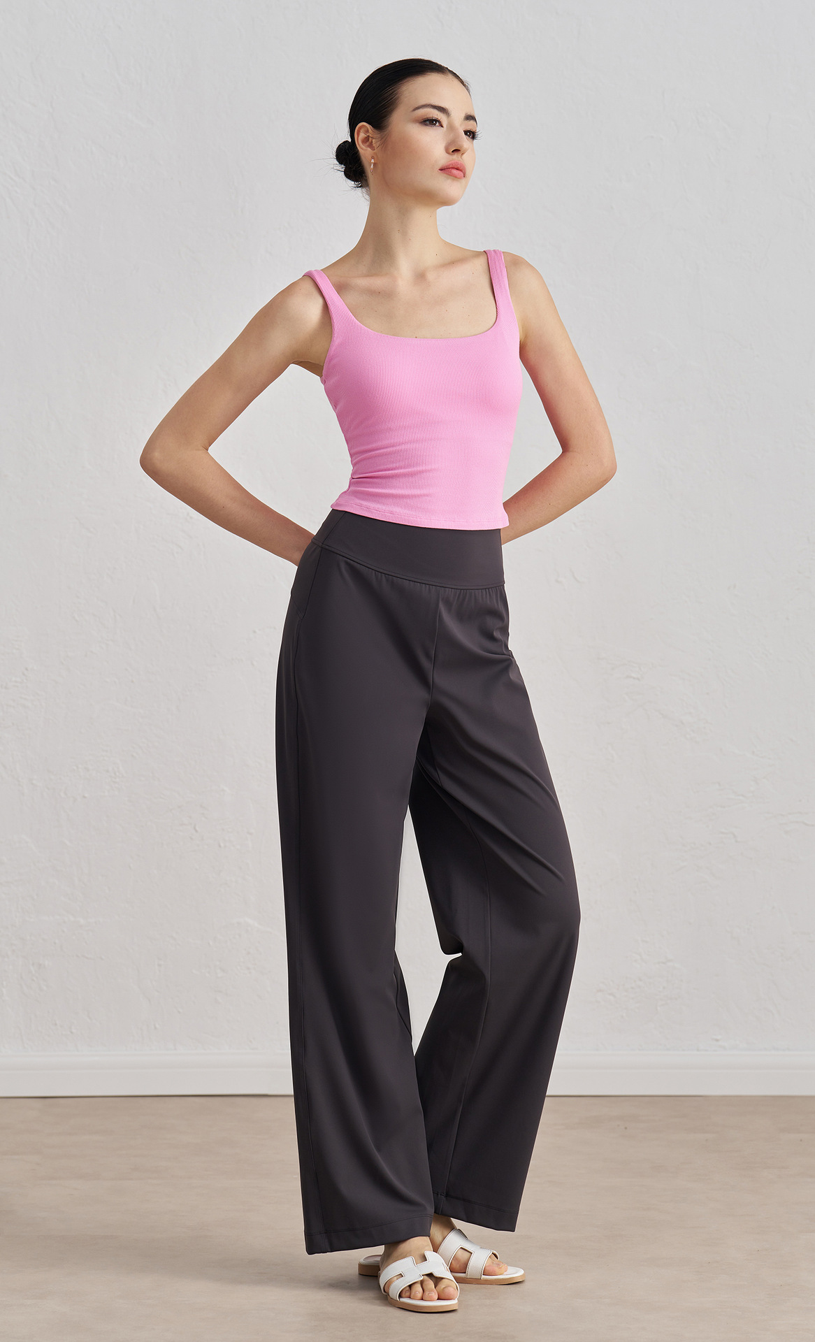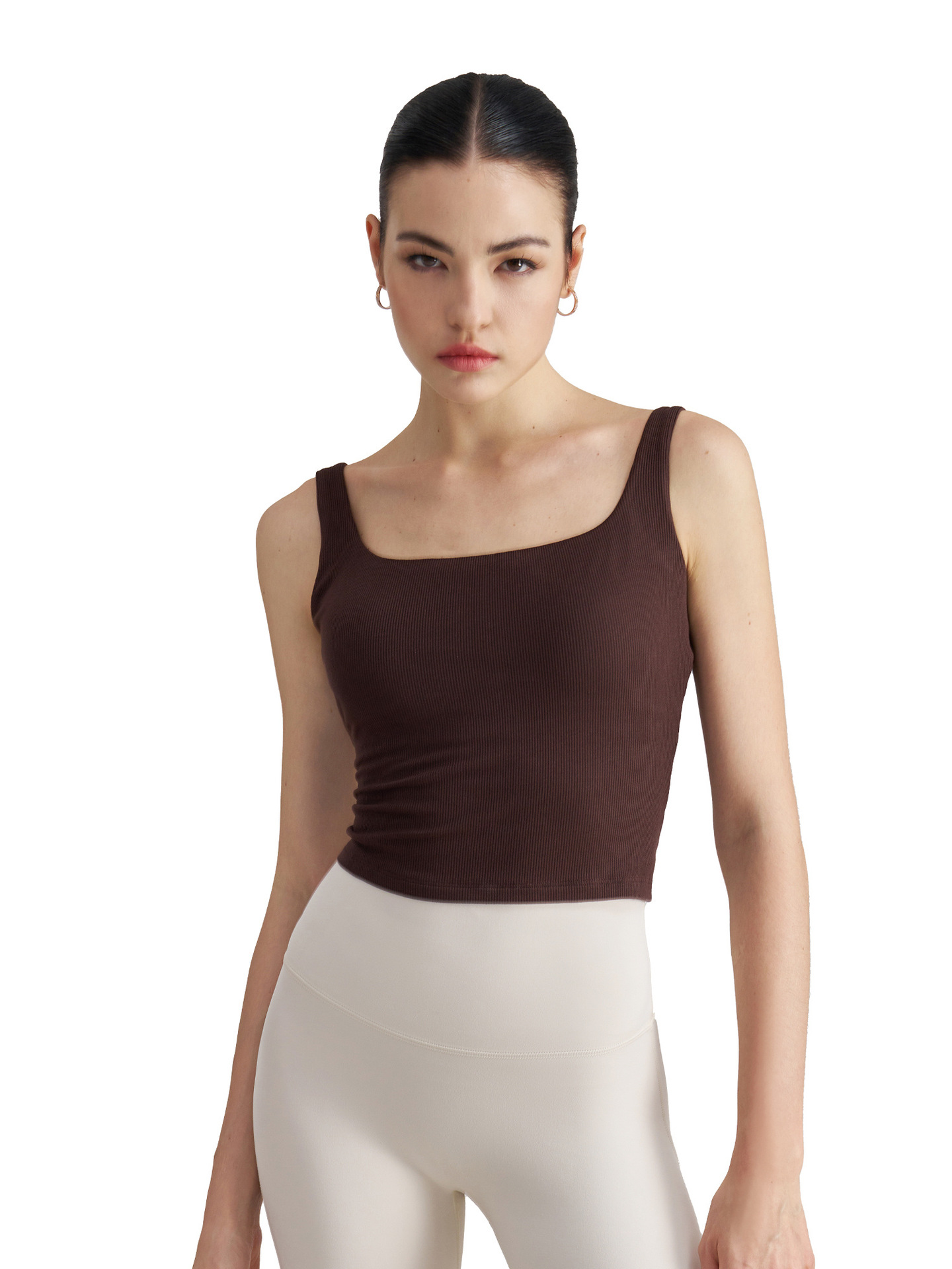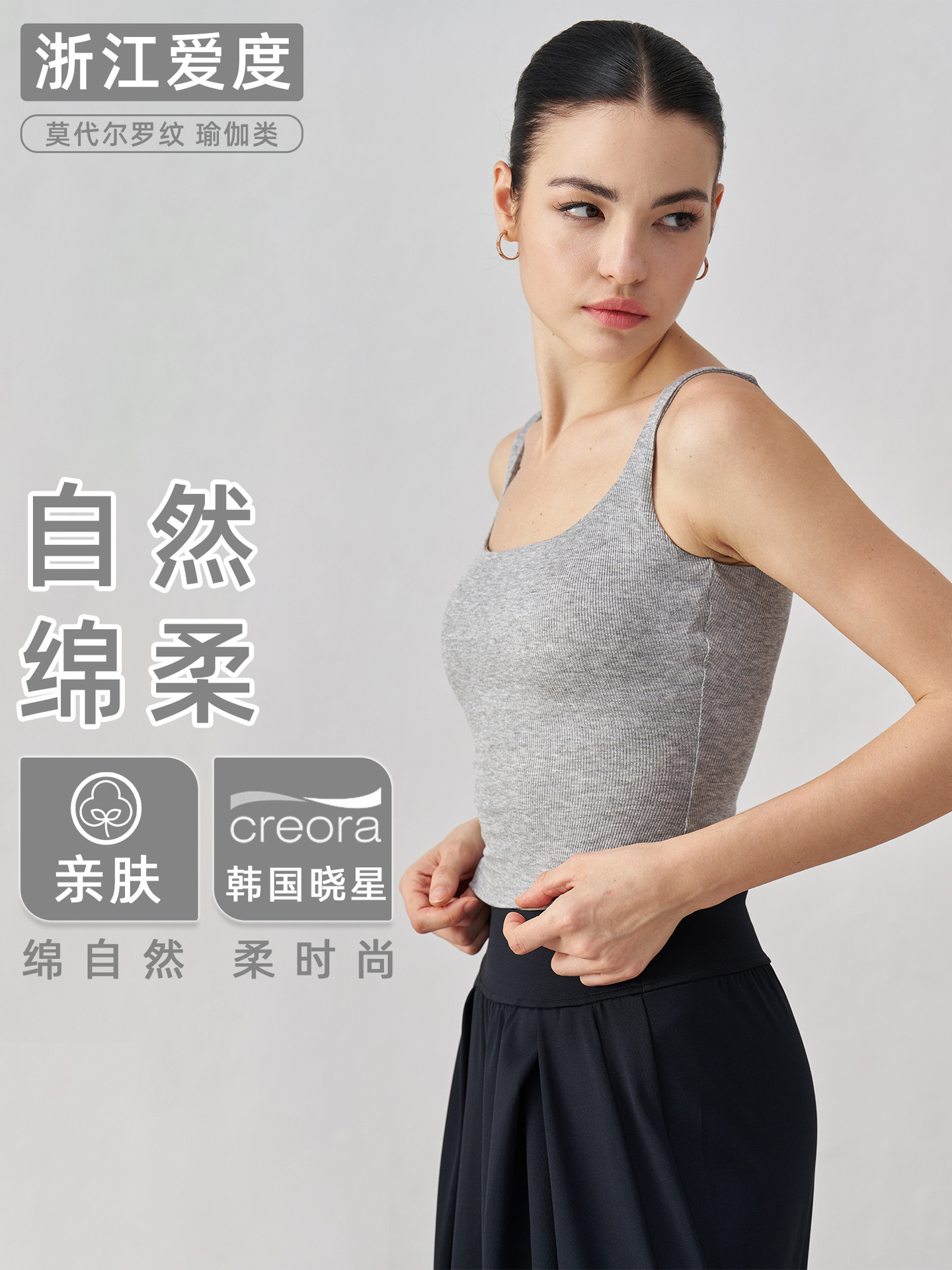 莫代尔罗纹裸感瑜伽背心女宽肩美背运动内衣带胸垫长款健身文胸秋