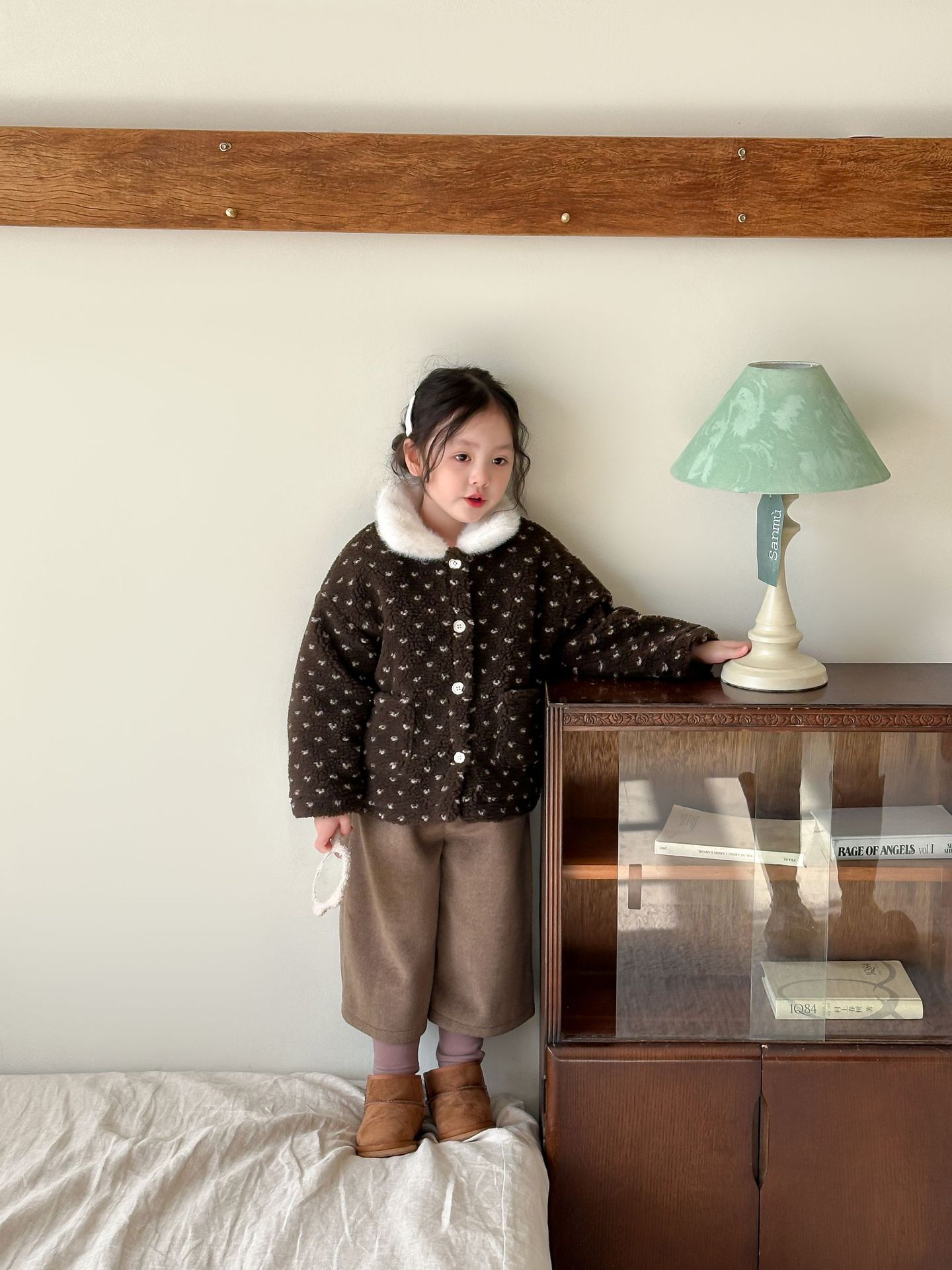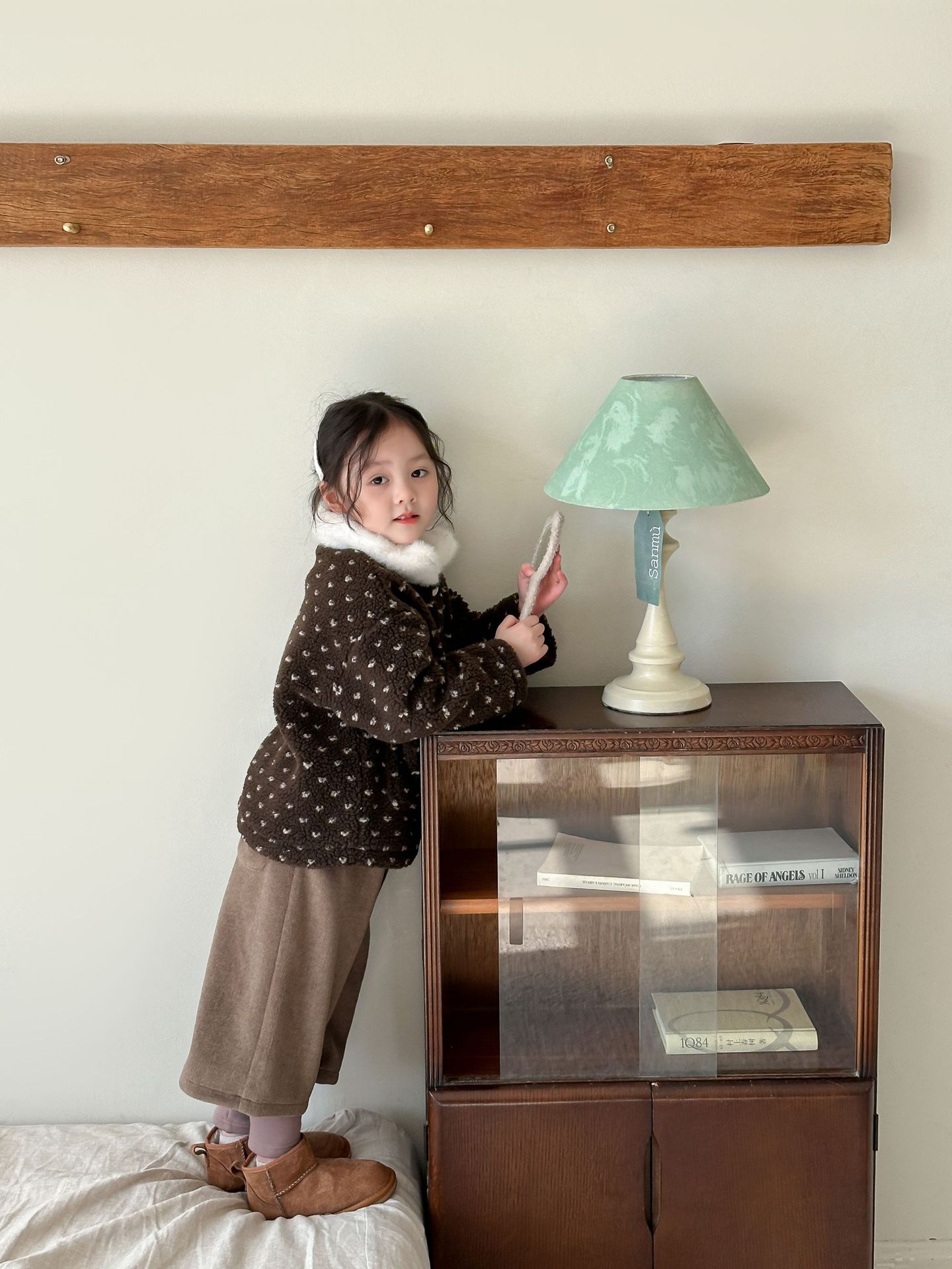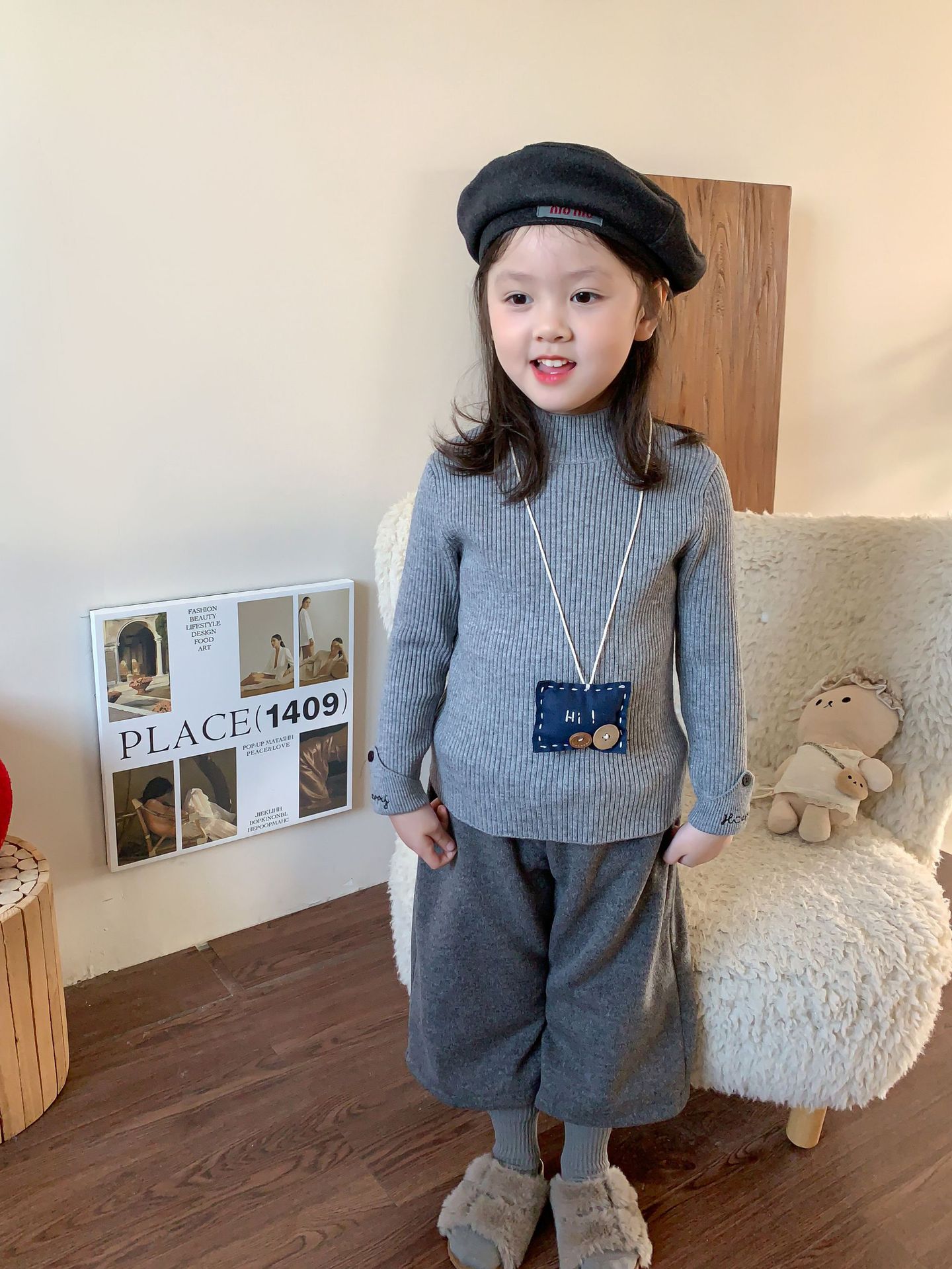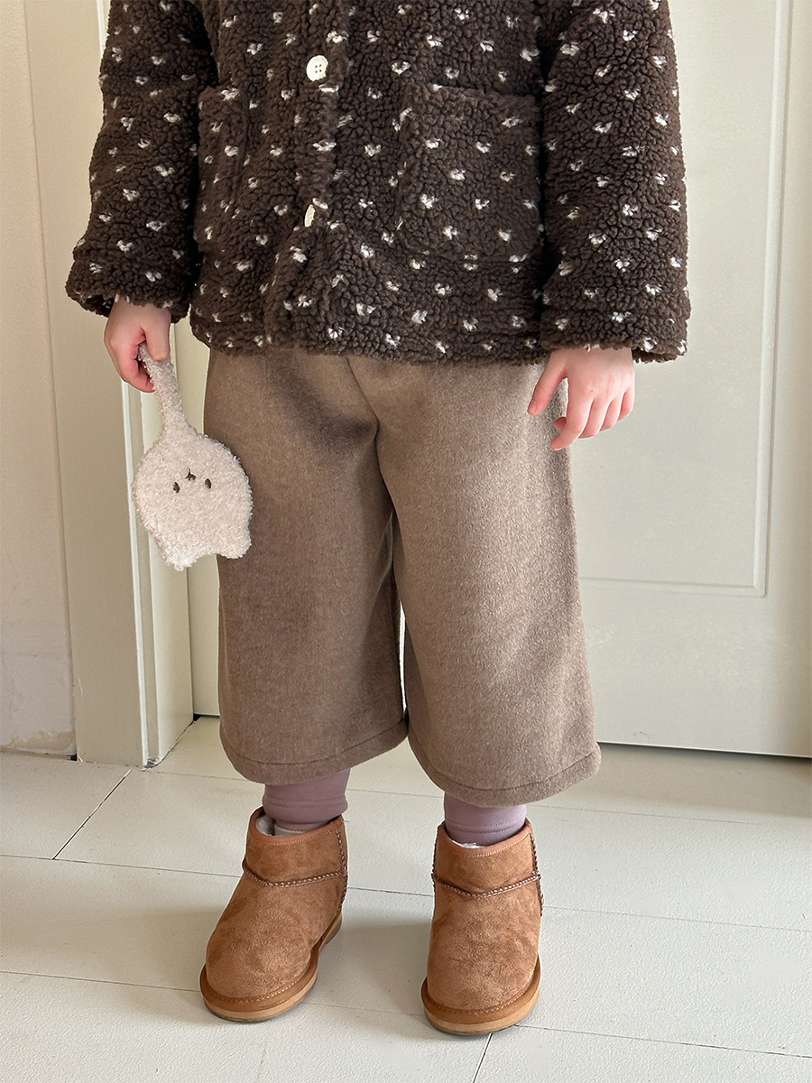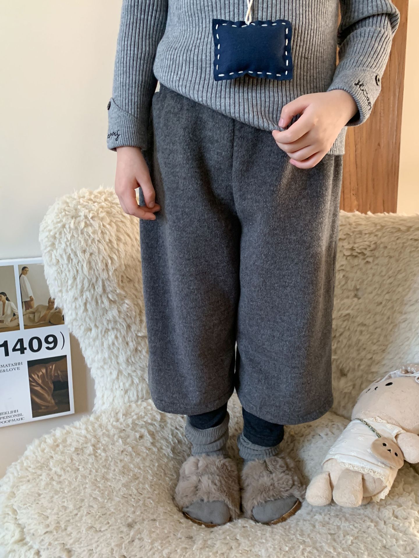 维木女童冬季新款假两件加绒加厚毛呢裤宝宝秋冬洋气阔腿裤裤子