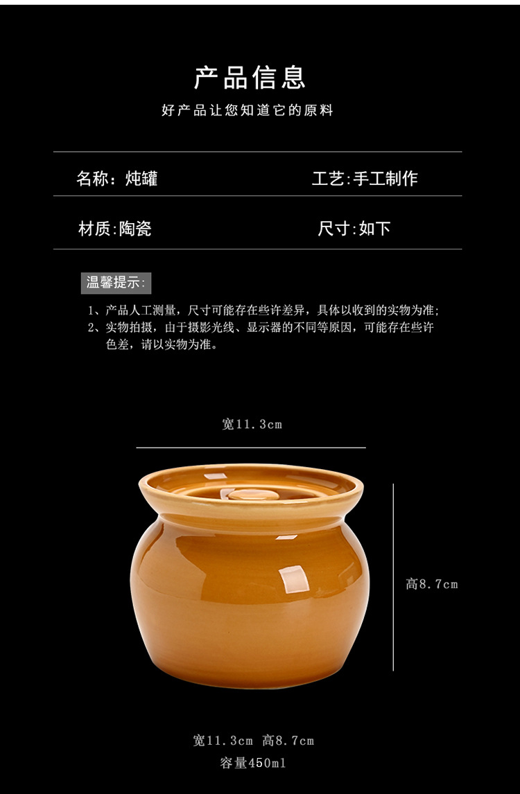陶瓷瓦罐煨汤隔水带盖炖盅沙县小吃酒店餐饮一人碗汤盅商家用炖罐