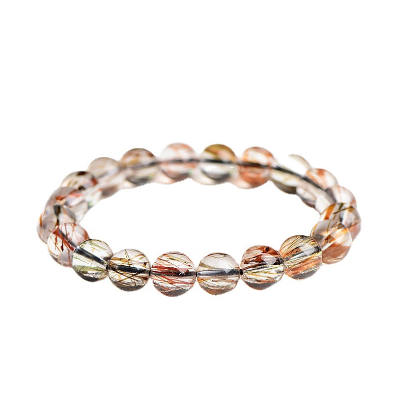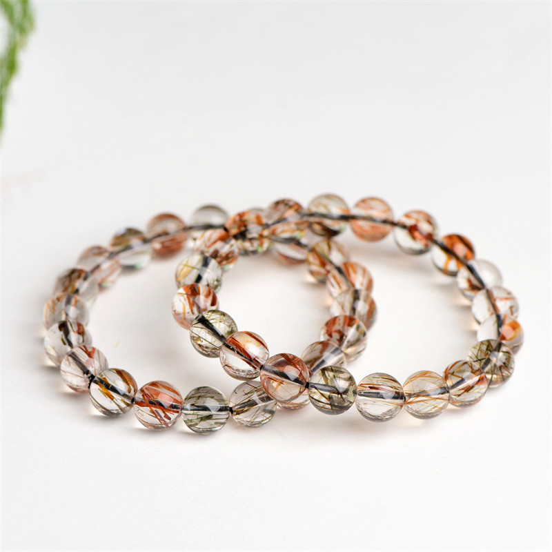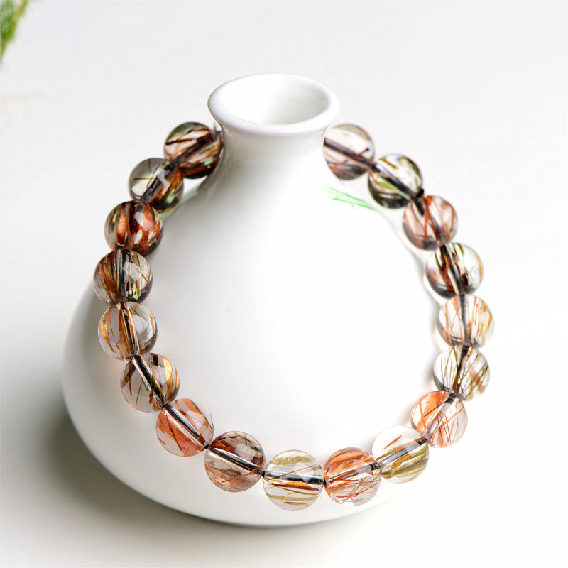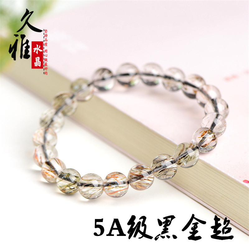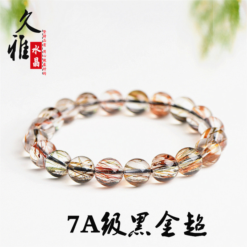 久雅水晶 天然黑金超七圈手链 黑色钛晶超七手链圆珠手串 批发