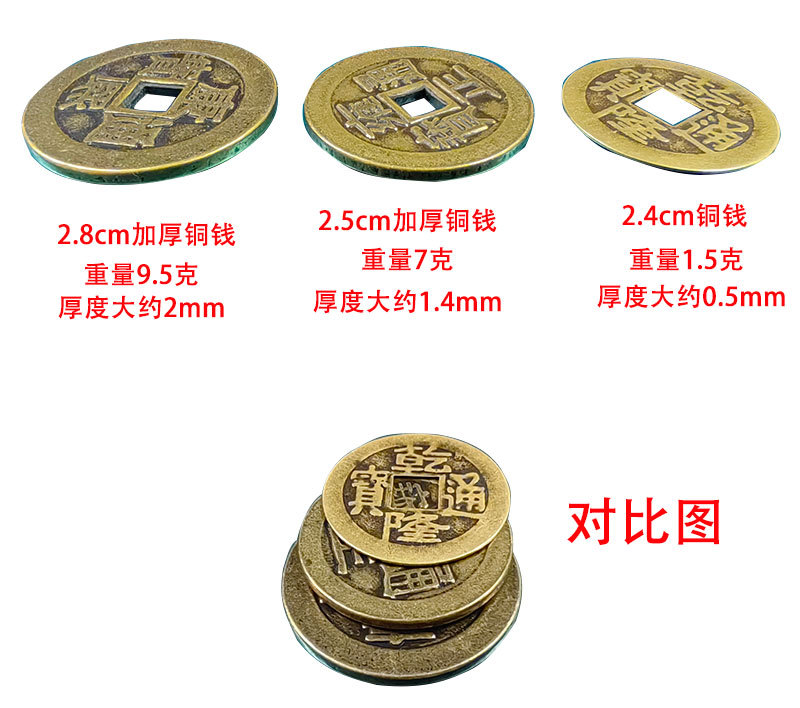 铜钱为出厂价格销售,关于产品的厚度和重量我们在详情页面都有介绍的,请看清楚尺寸再下单,不建议因为厚度原因和大小原因退换。