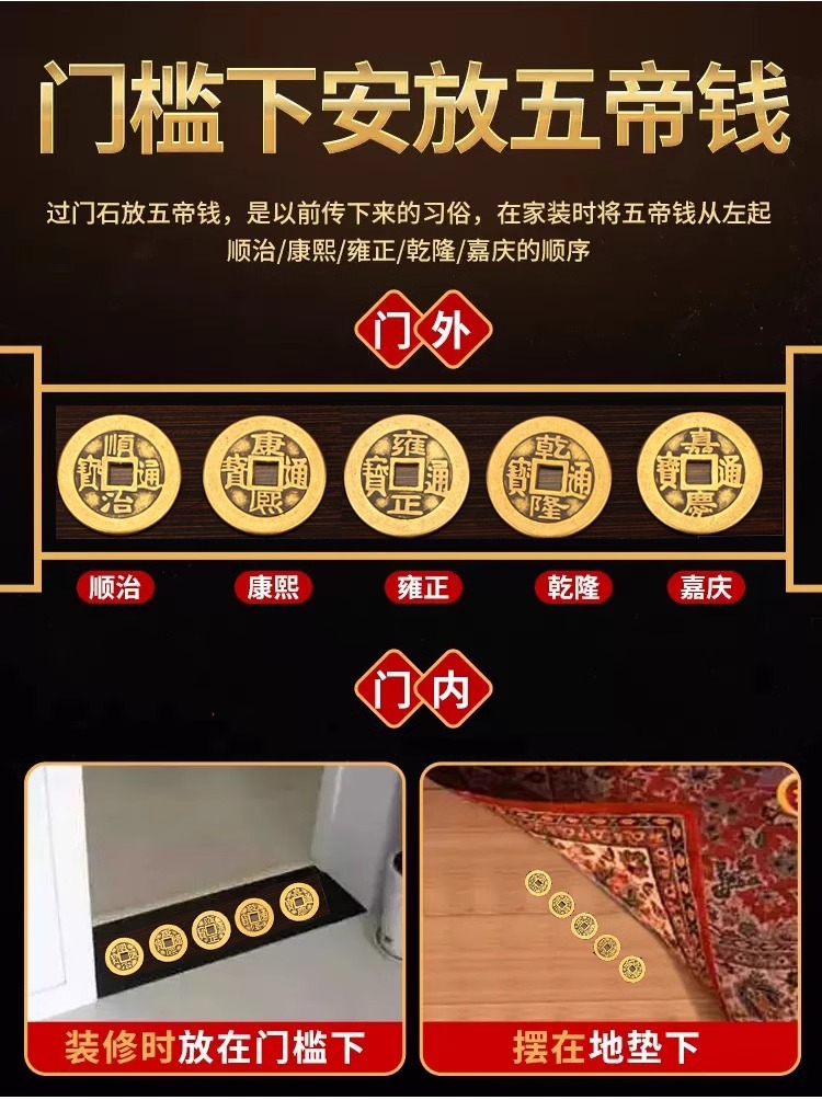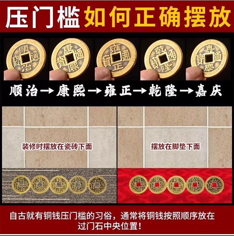 加厚铜钱五帝钱乾隆通宝压门槛顺治康熙雍正嘉庆黄铜散钱厂家批发