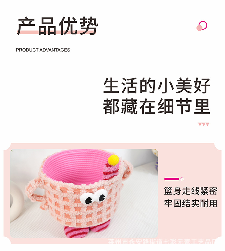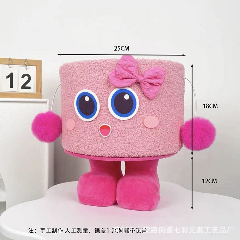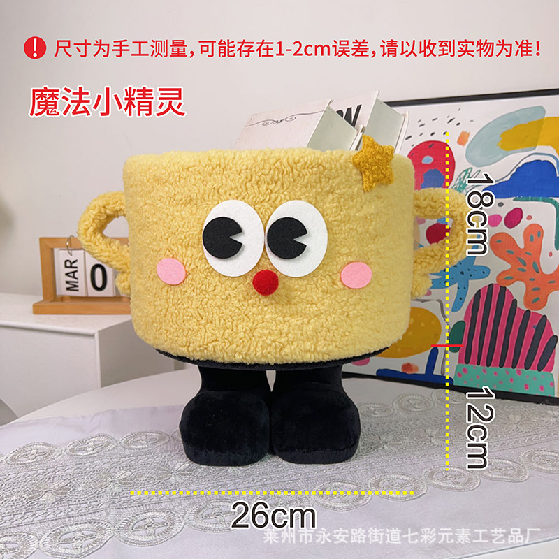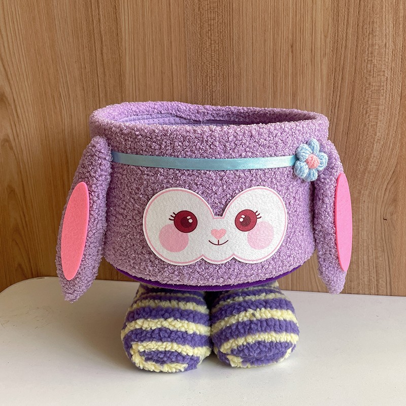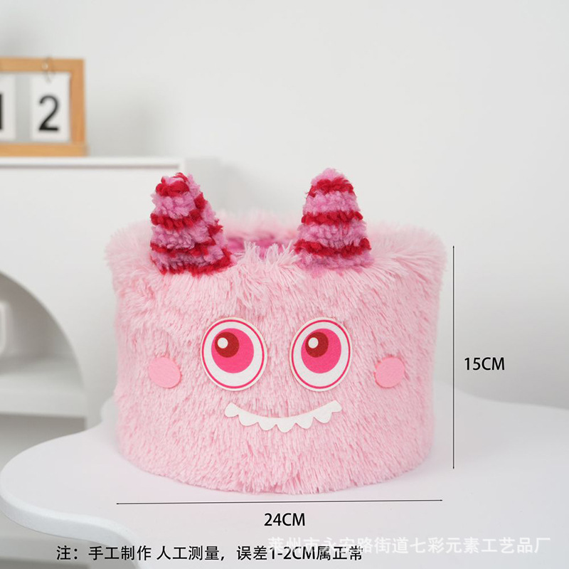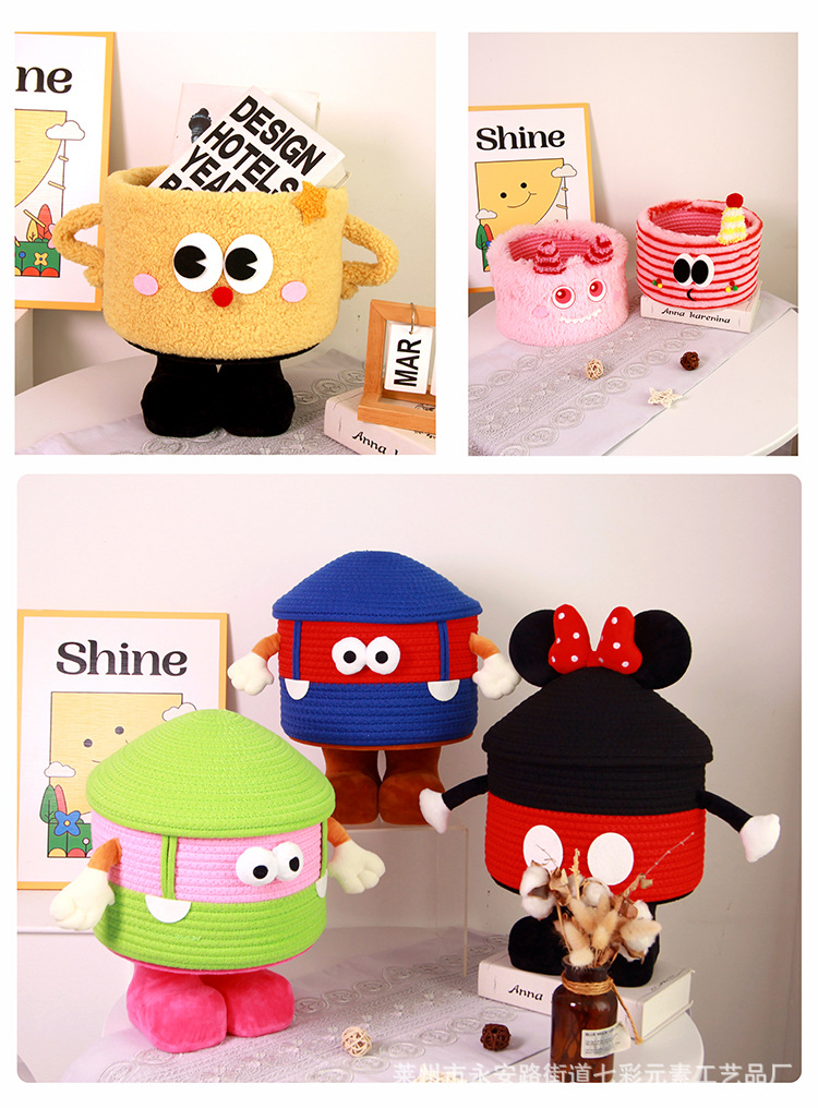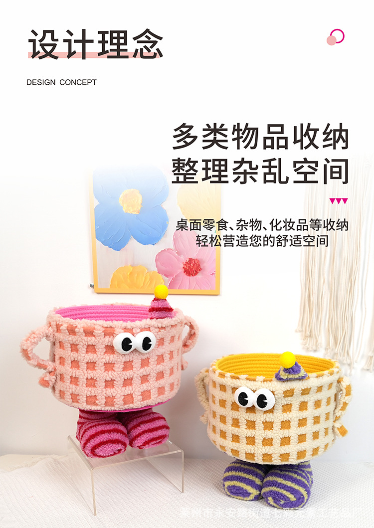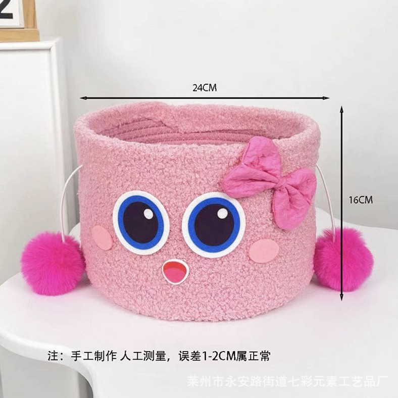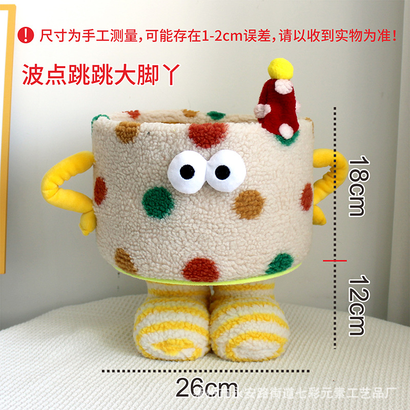 卡通大脚丫小怪兽收纳筐杂物零食整理网红多巴胺羊羔绒可爱整理篮