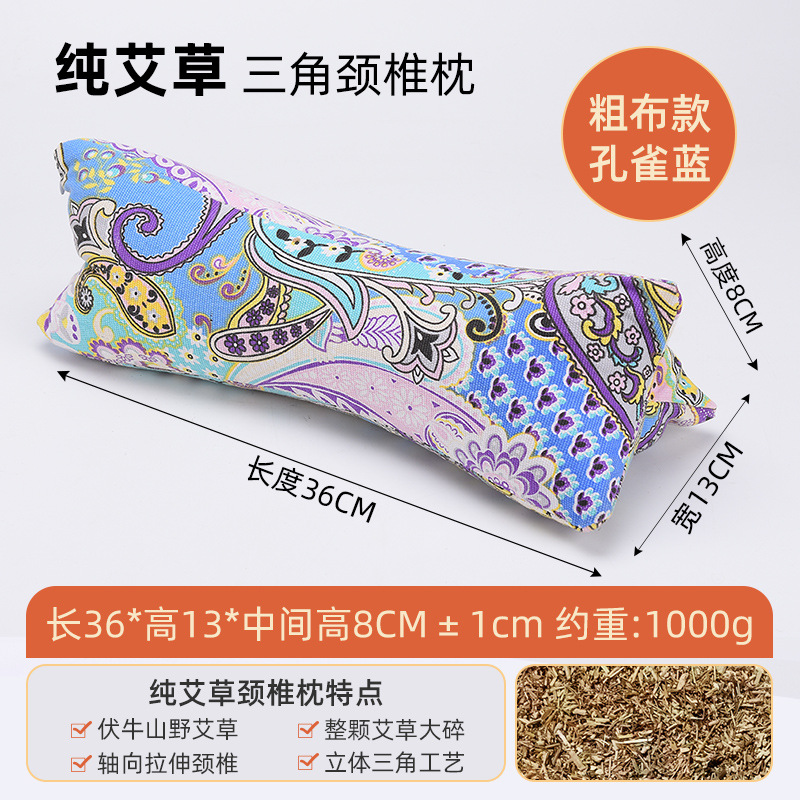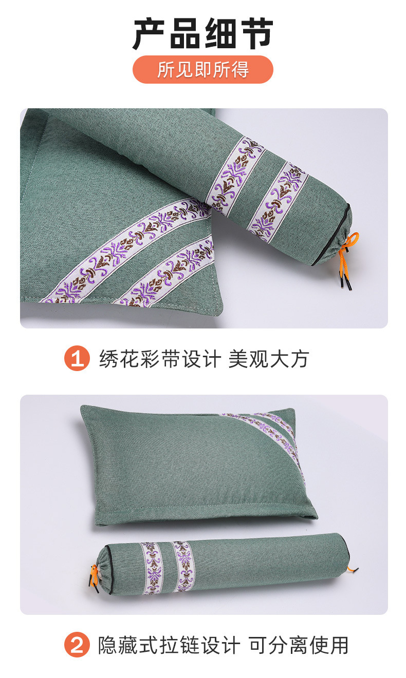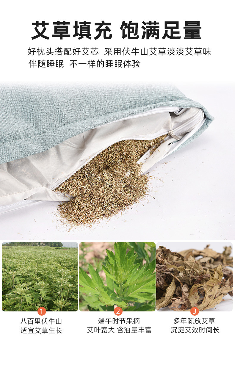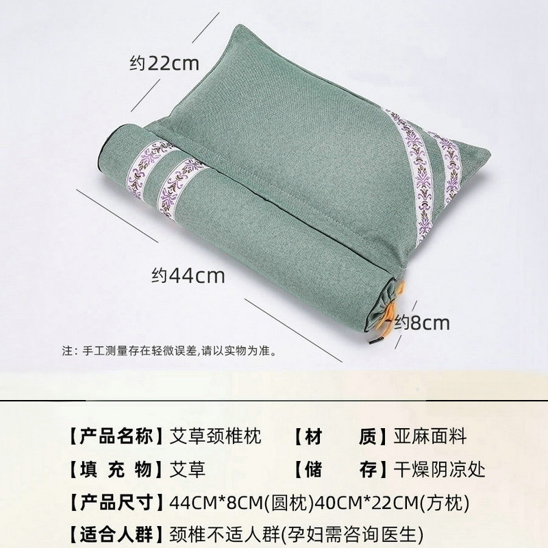 艾草枕头纯艾颈椎枕可拆卸护颈枕圆柱艾枕家用连体组合艾灸枕头