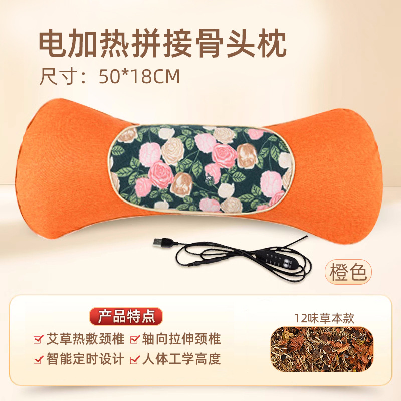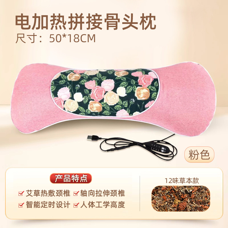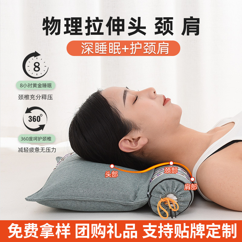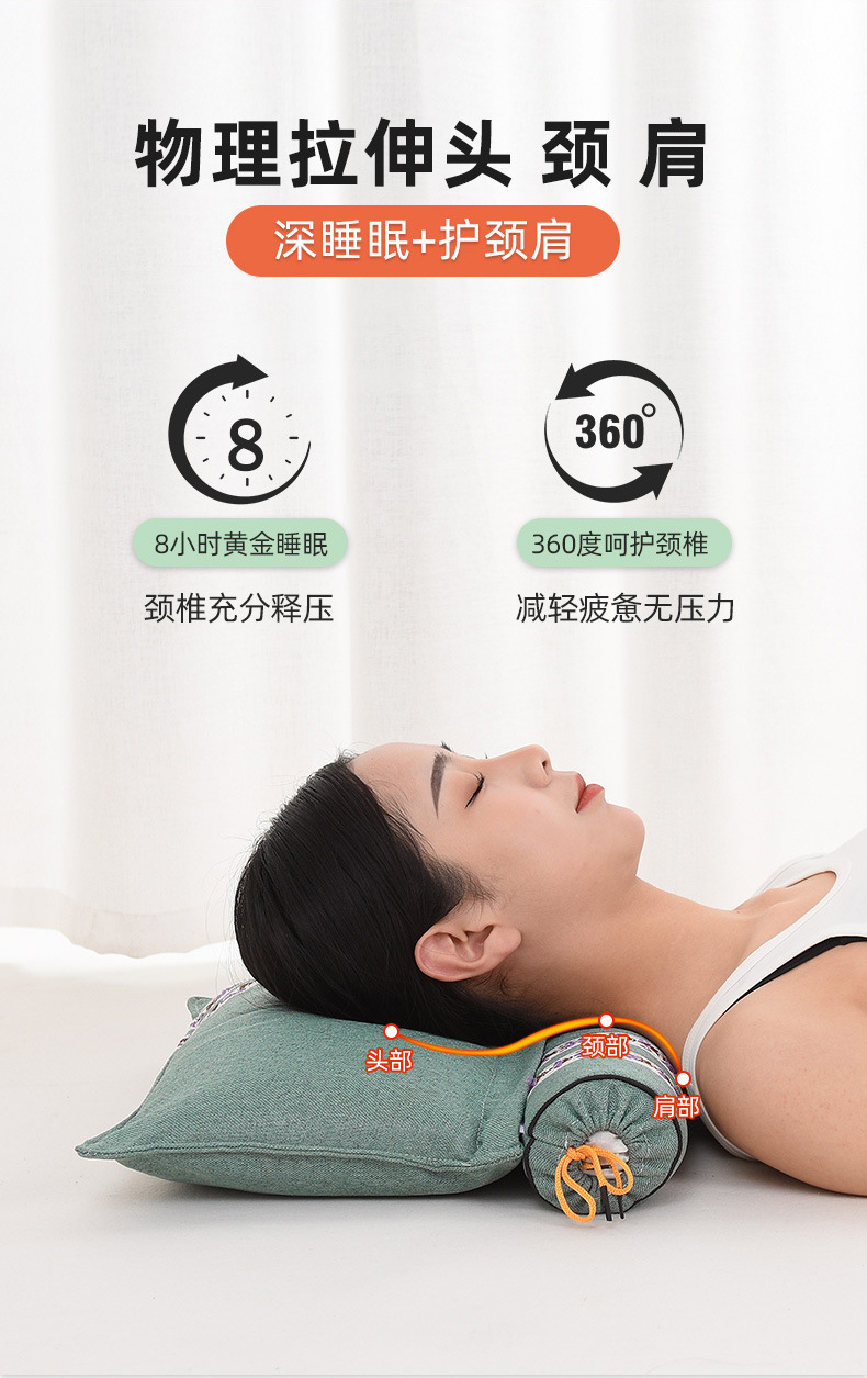 艾草枕头纯艾颈椎枕可拆卸护颈枕圆柱艾枕家用连体组合艾灸枕头