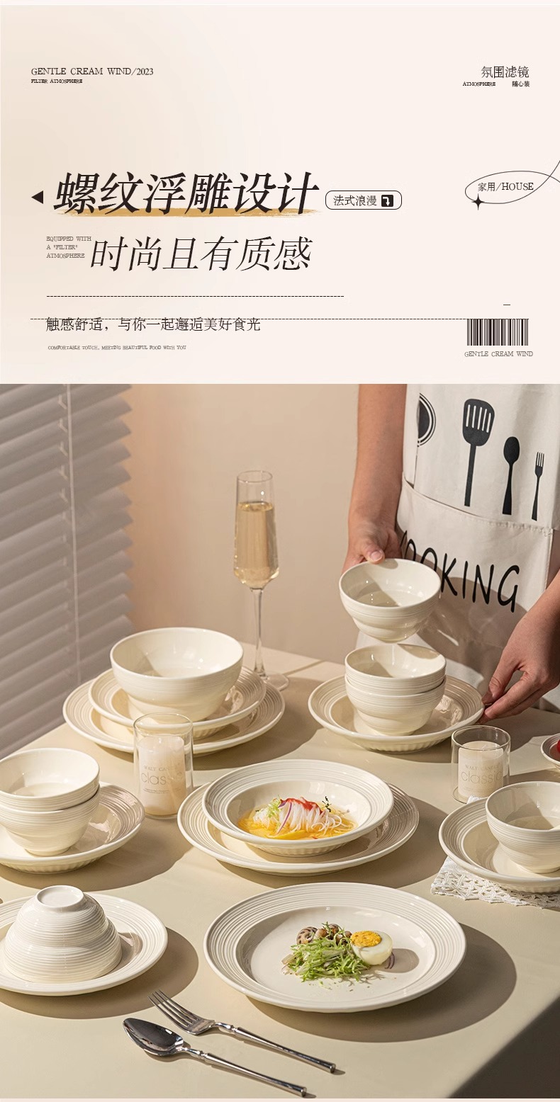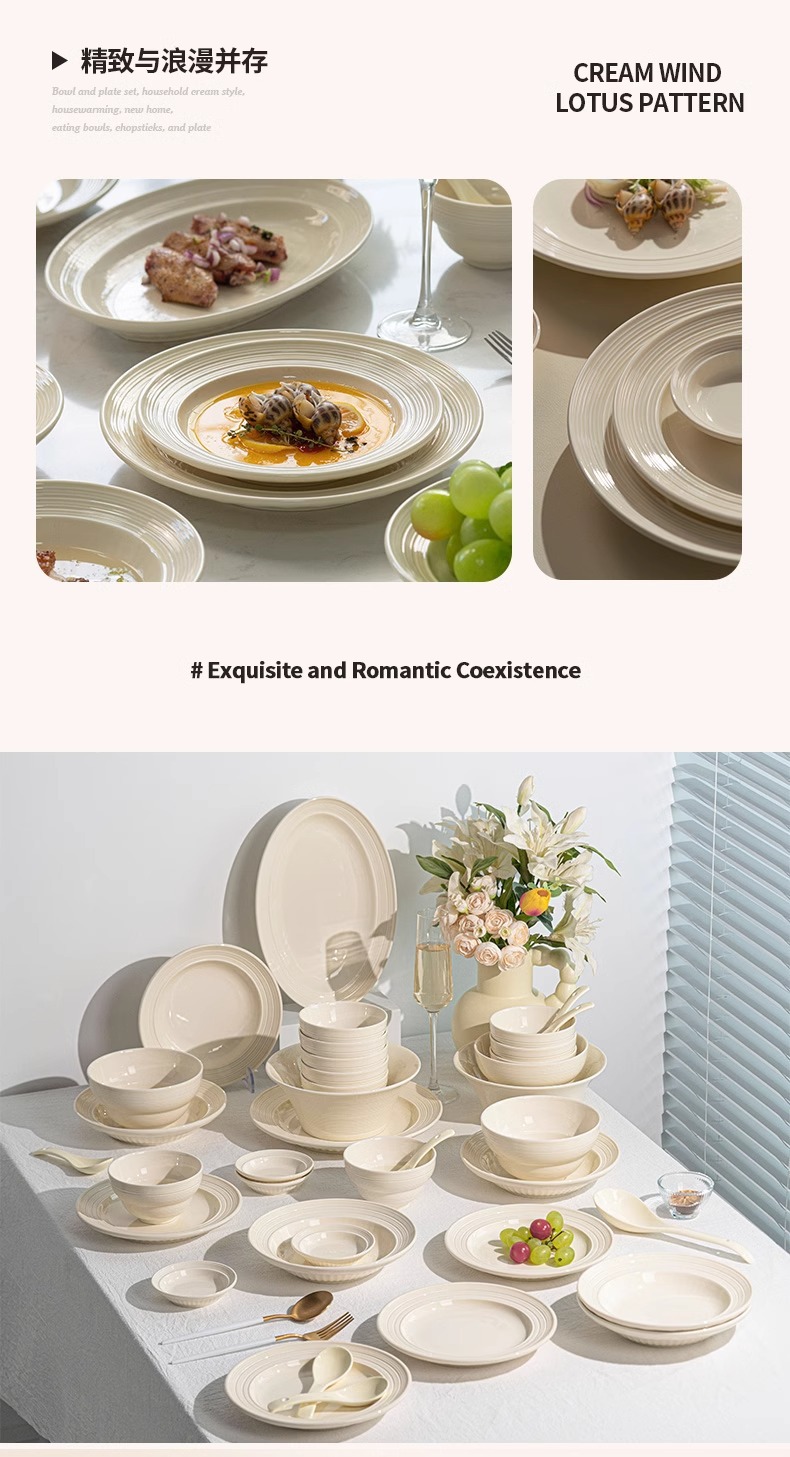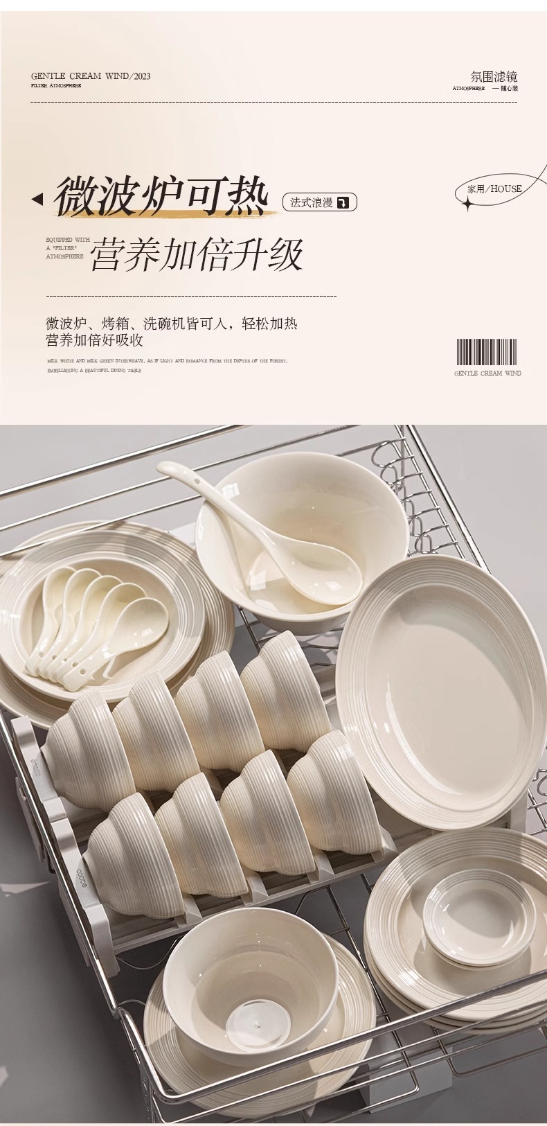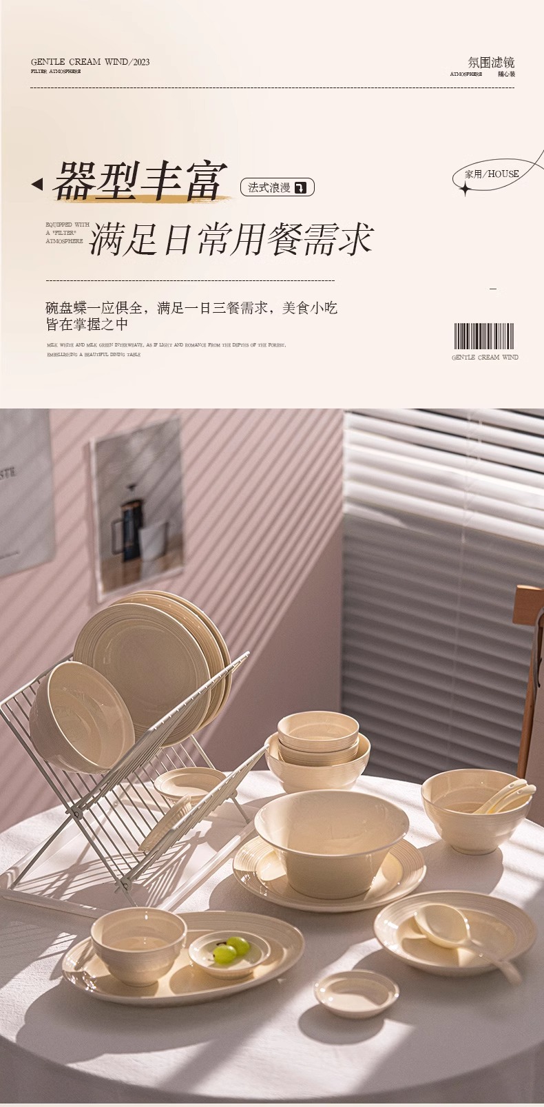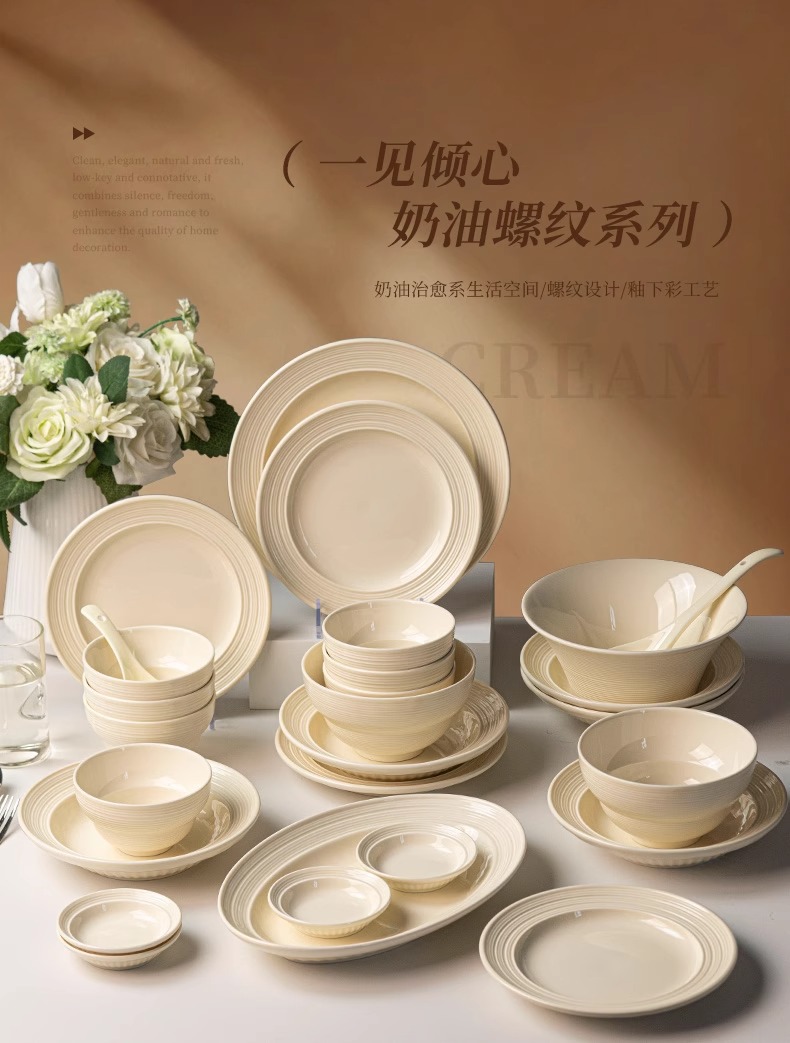 现代简约奶油风餐具碗碟套装碗家用2024新款碗盘组合乔迁新居陶瓷