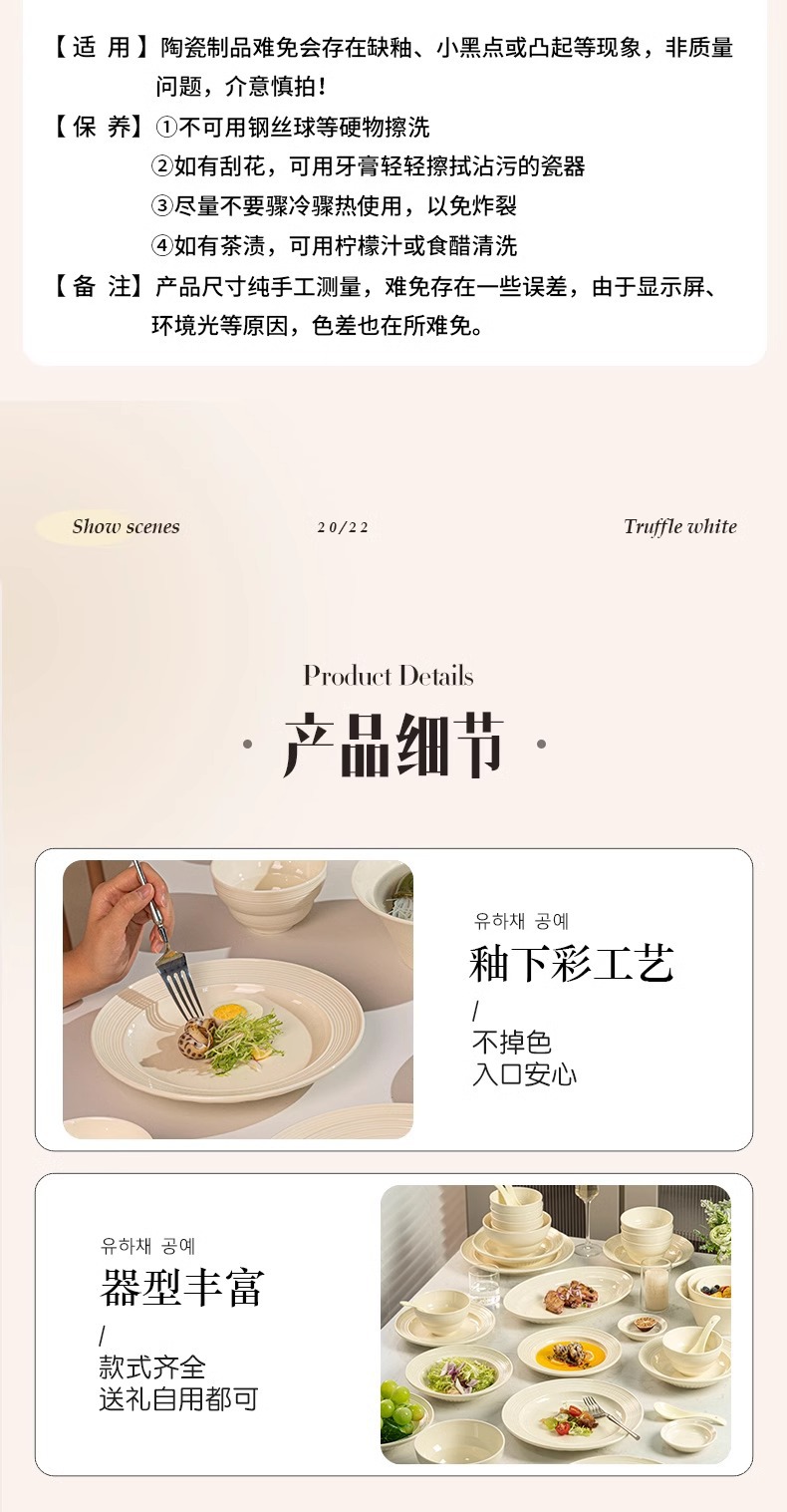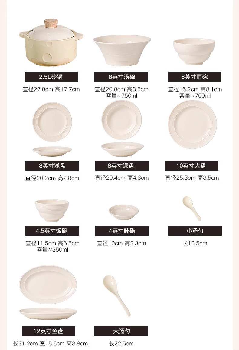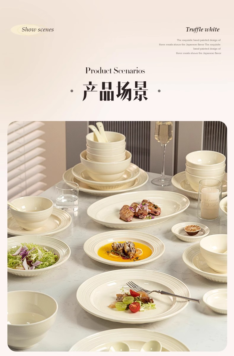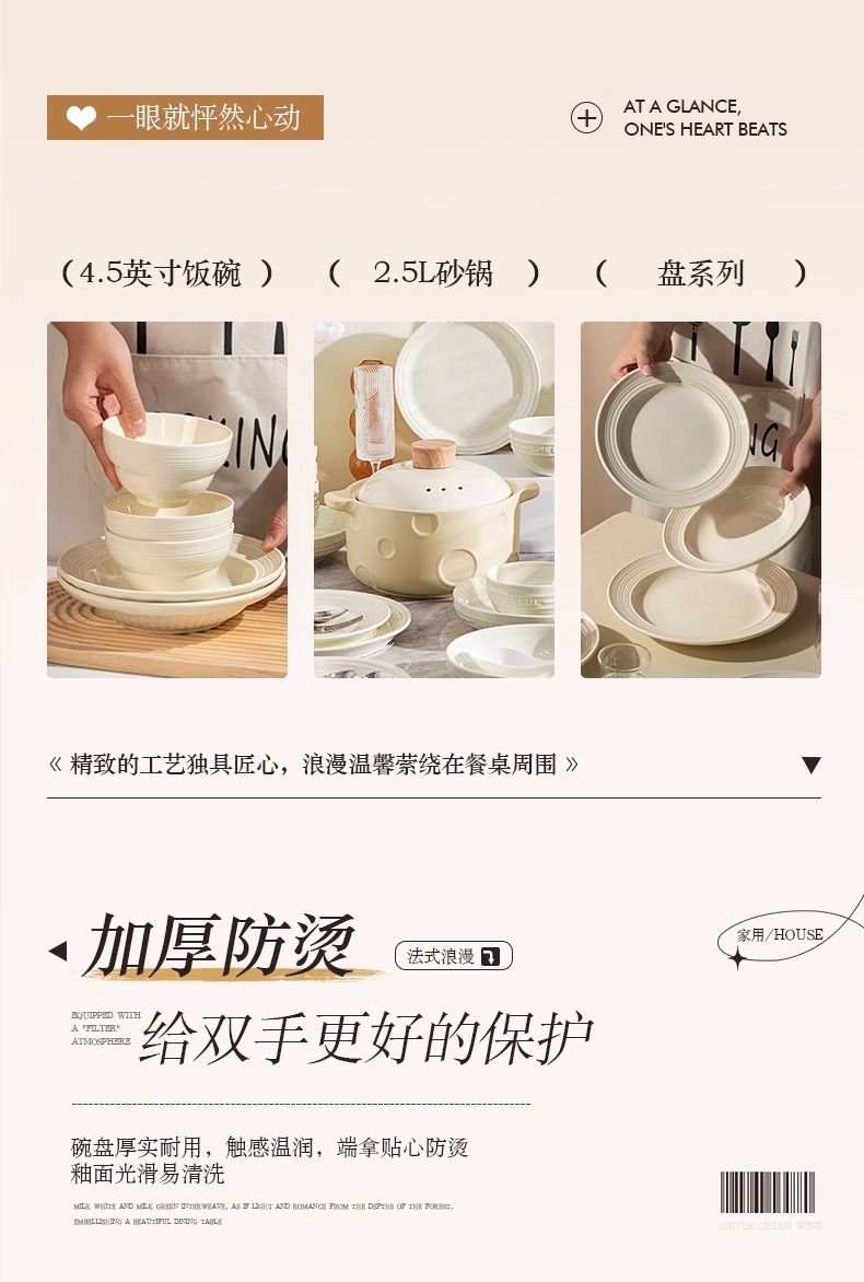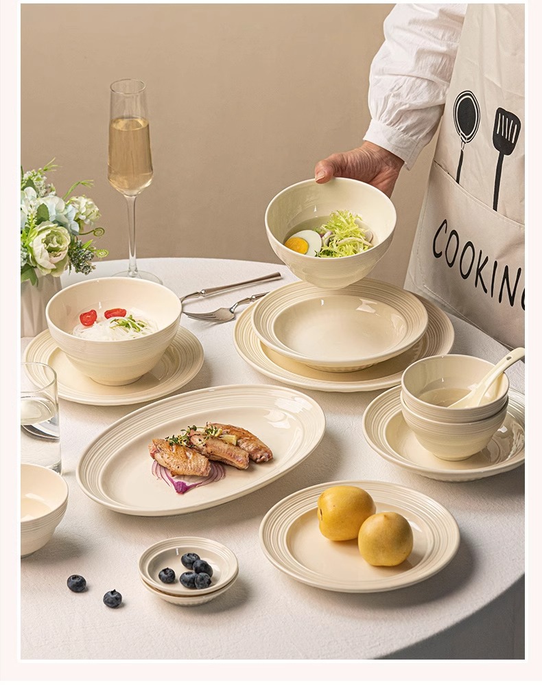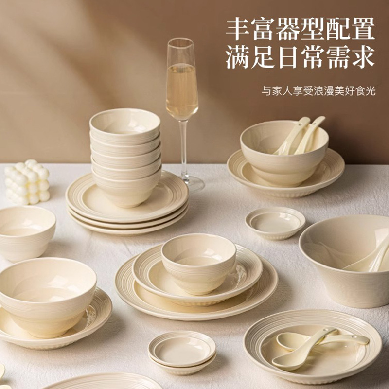 现代简约奶油风餐具碗碟套装碗家用2024新款碗盘组合乔迁新居陶瓷