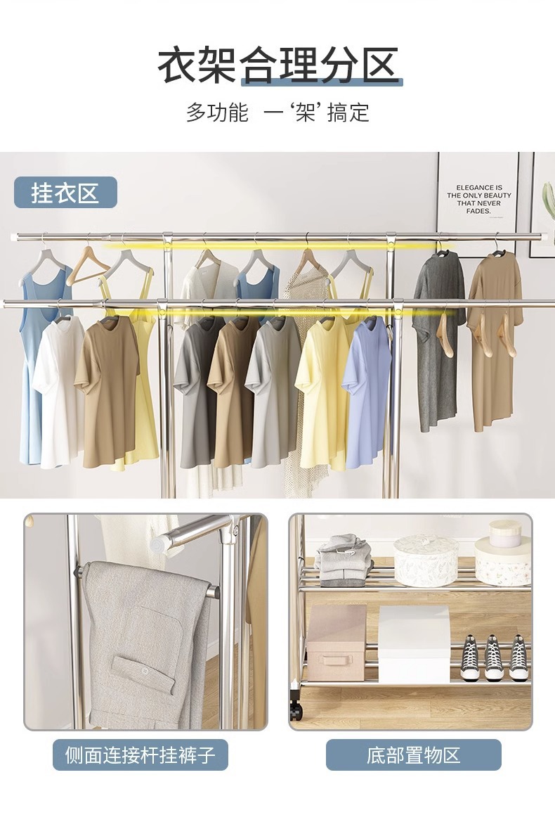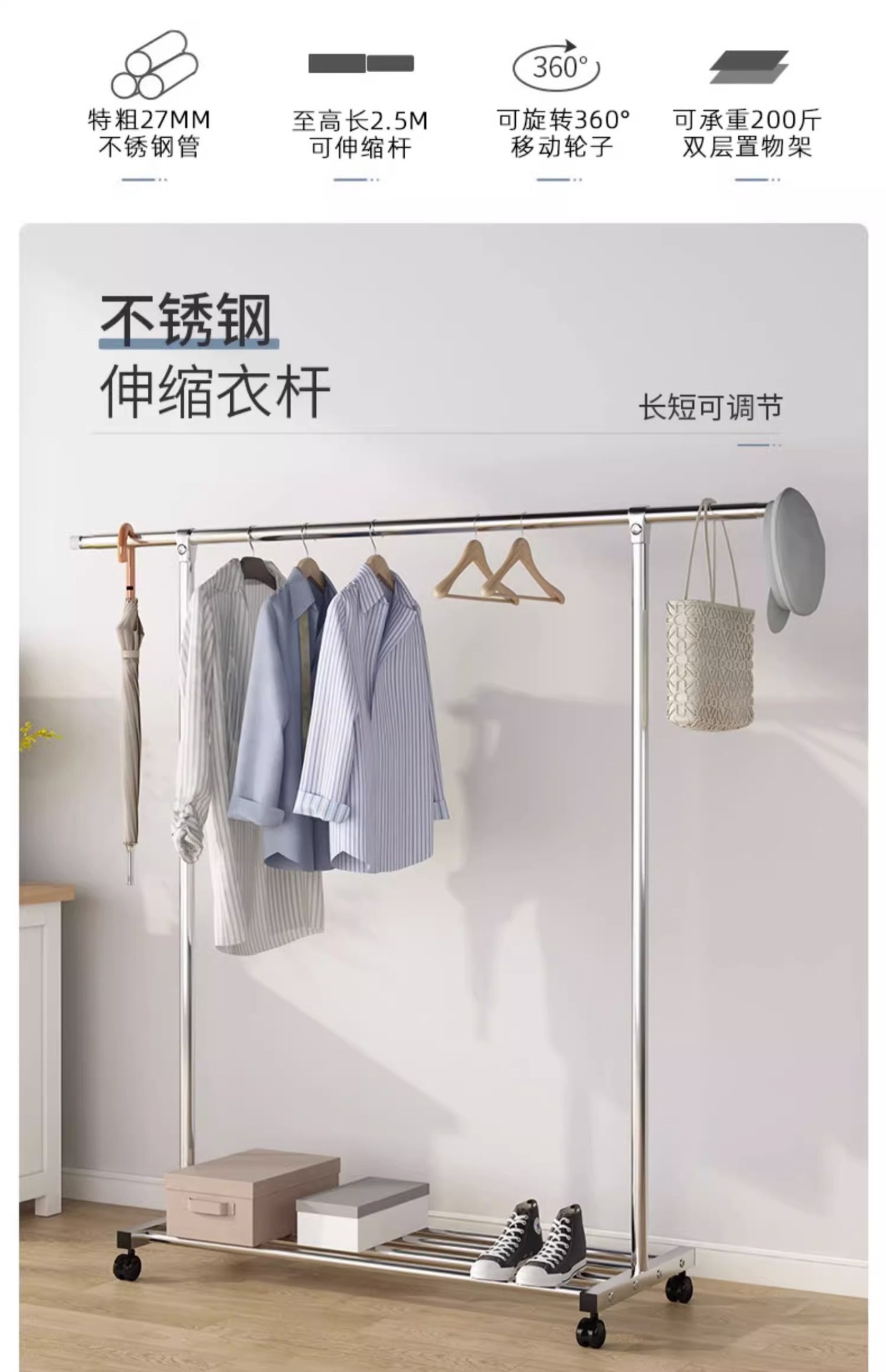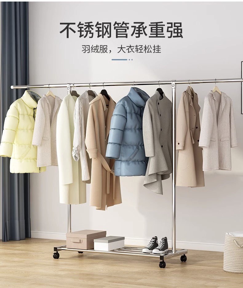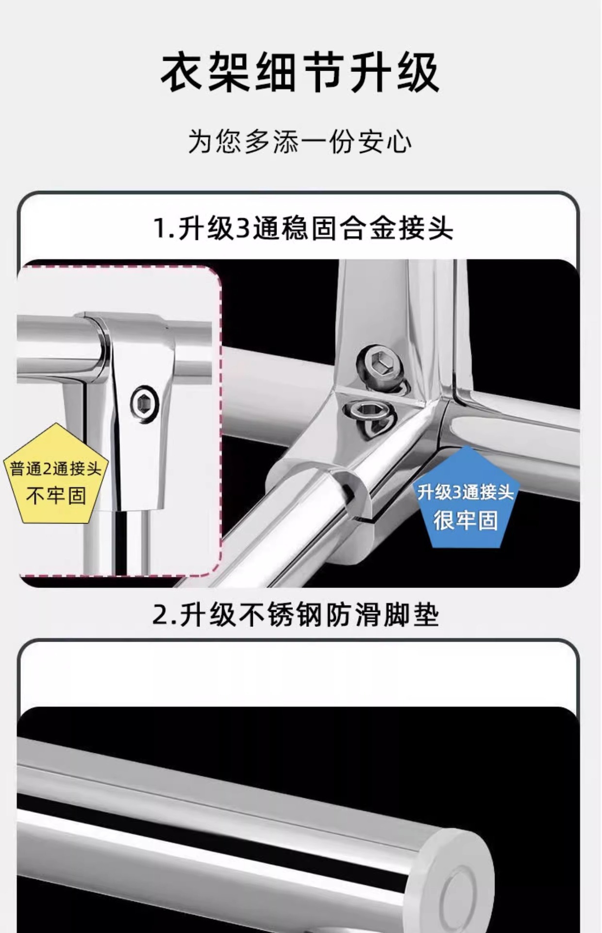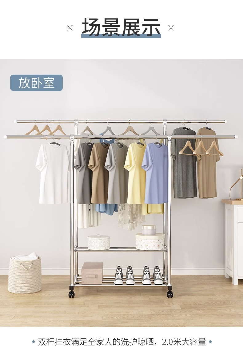 晾衣架落地家用卧室挂衣服不锈钢简易室内宿舍阳台晾衣架挂衣杆子