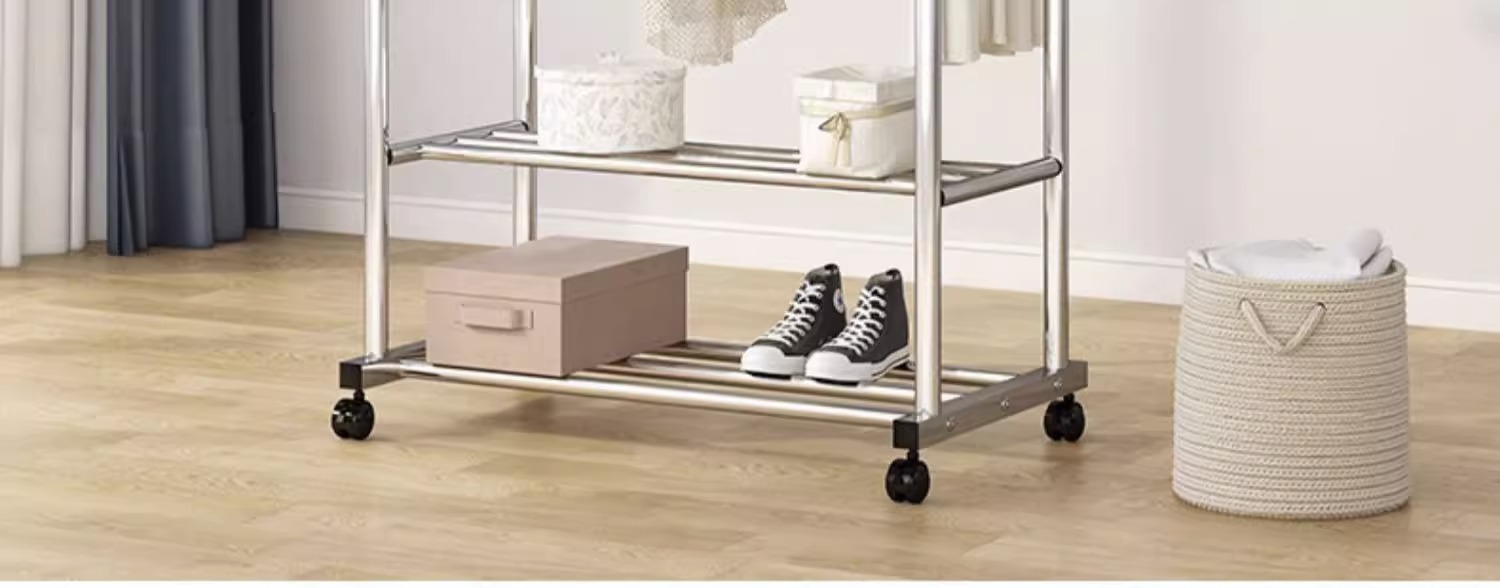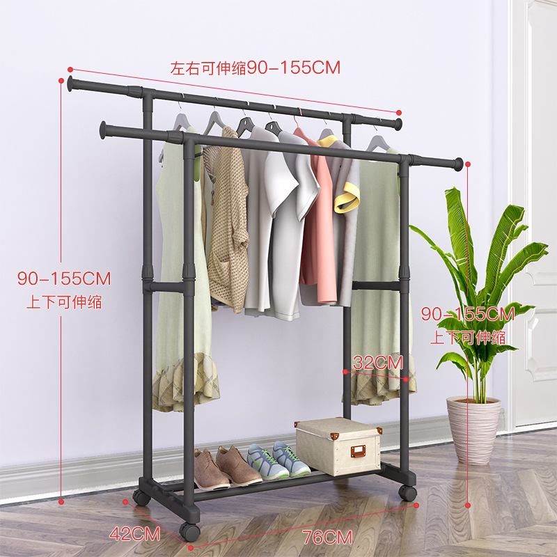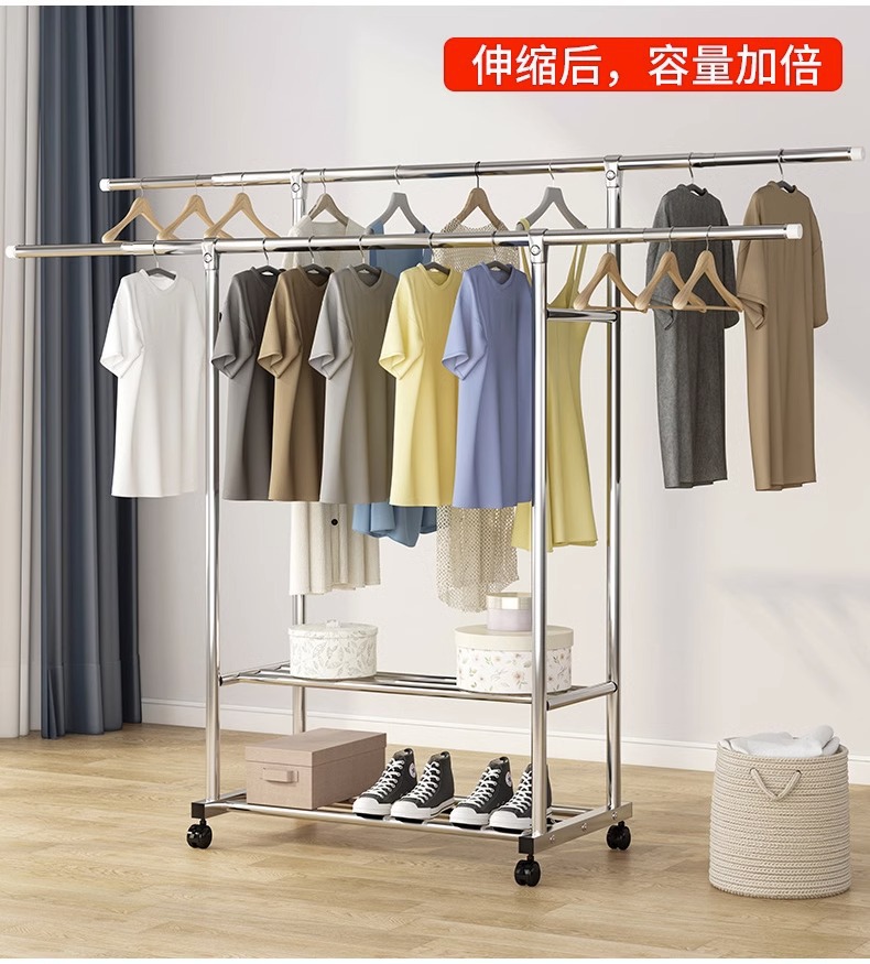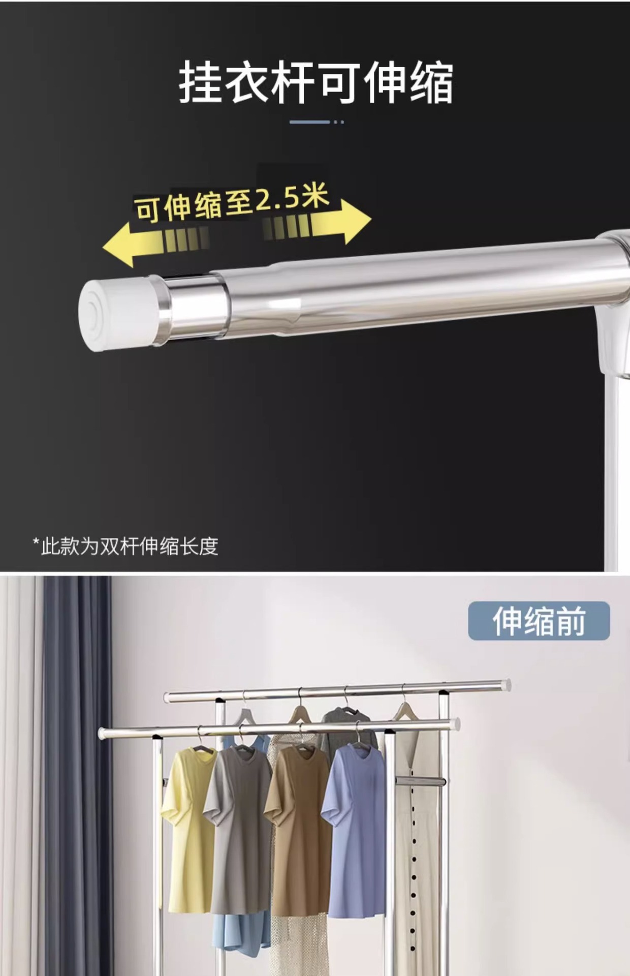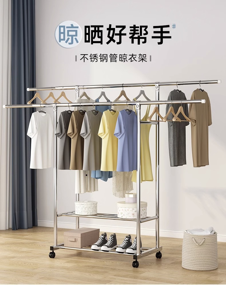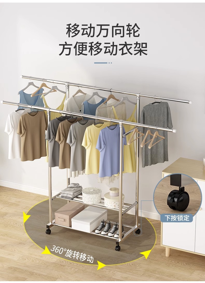 晾衣架落地家用卧室挂衣服不锈钢简易室内宿舍阳台晾衣架挂衣杆子